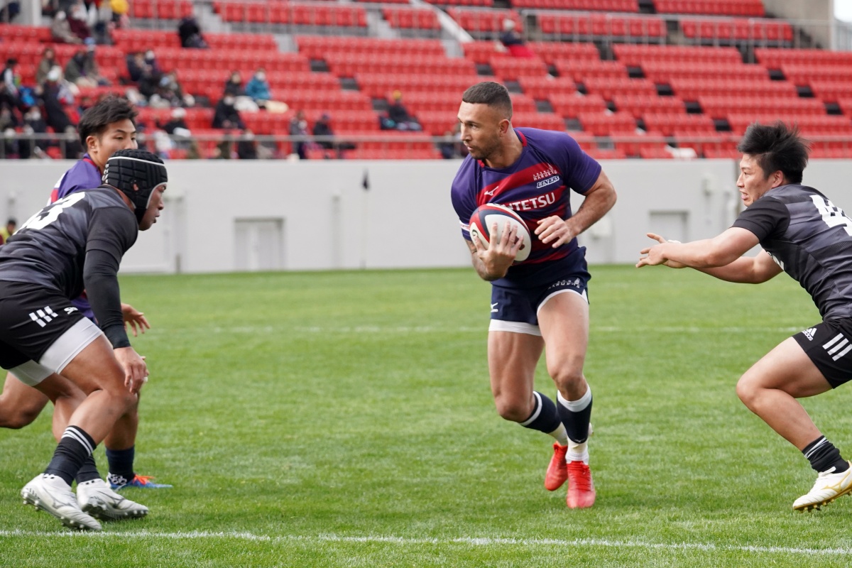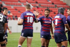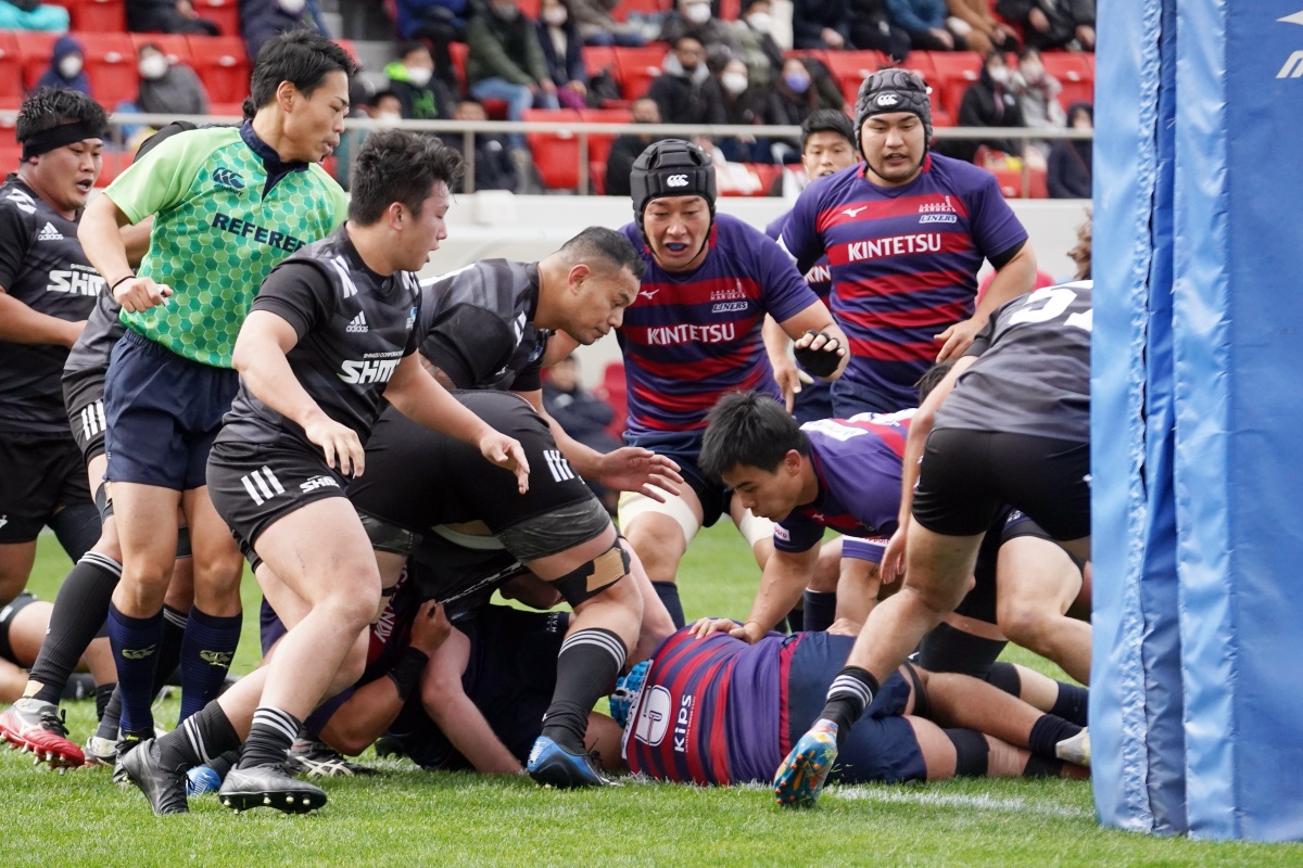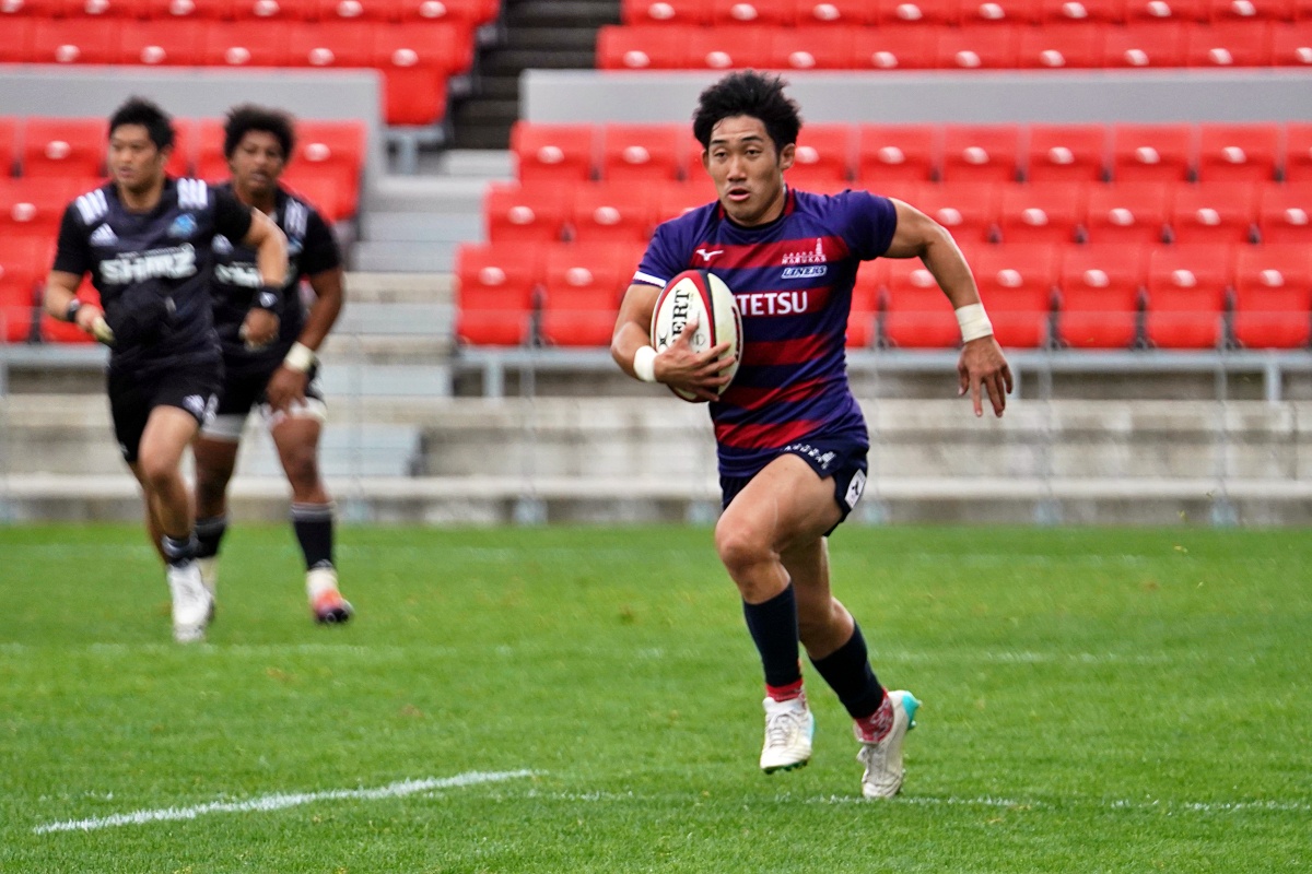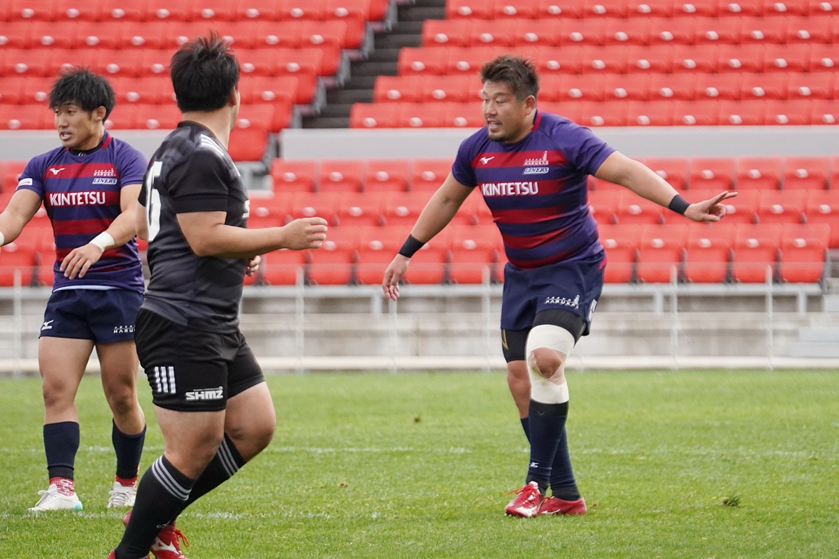 地力で上回るライナーズは、18分にジョシュアが、27分にはWTBで入っていた21佐原がトライをあげ、点差を広げていきます。