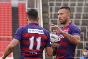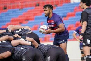 前半13分には9ゲニアのタップキックからクーパー、11ジョシュアとつないで中央にトライ。素早いパス回しで相手を翻弄します。