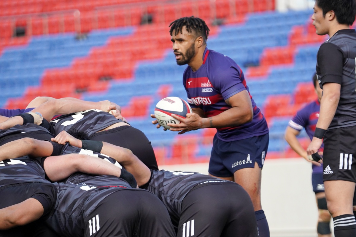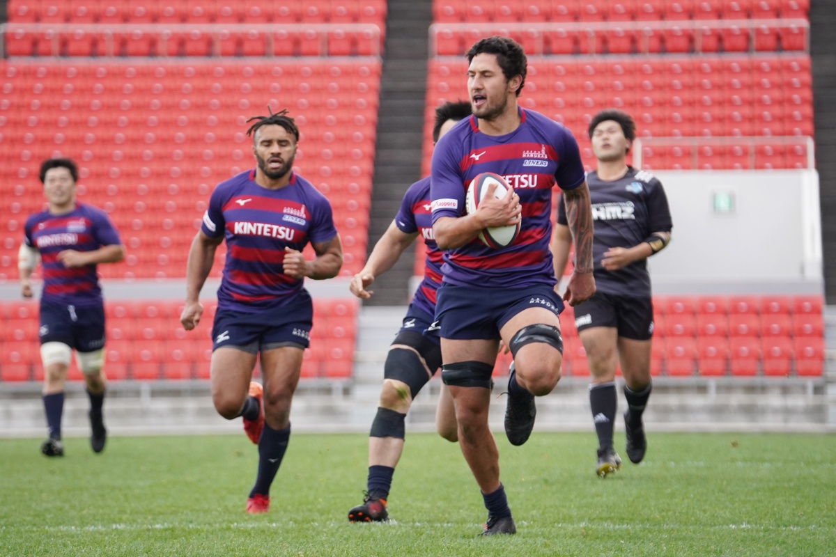 先制トライはライナーズでした。相手ペナルティから素早くボールを展開すると、ジョシュアが大きくゲイン。後ろから追ってきた19カパが飛び込みトライをあげます。新メンバーの活躍にスタンドからは大きな拍手が。