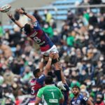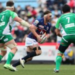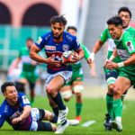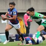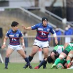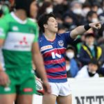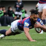 前半36分、相手ゴール前でのマイボールラインアウトからゲニアが出し、6ツポウ、南藤と短くパスをつないで中央にトライ。クーパーのGも成功し、6点差に迫ります。