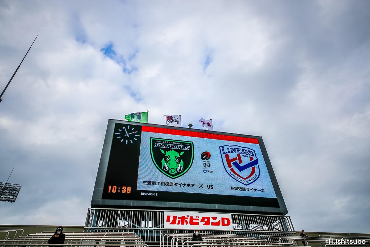 ライナーズの初戦は、秩父宮ラグビー場にて。三菱重工相模原ダイナボアーズとの対戦で幕が開けました。
