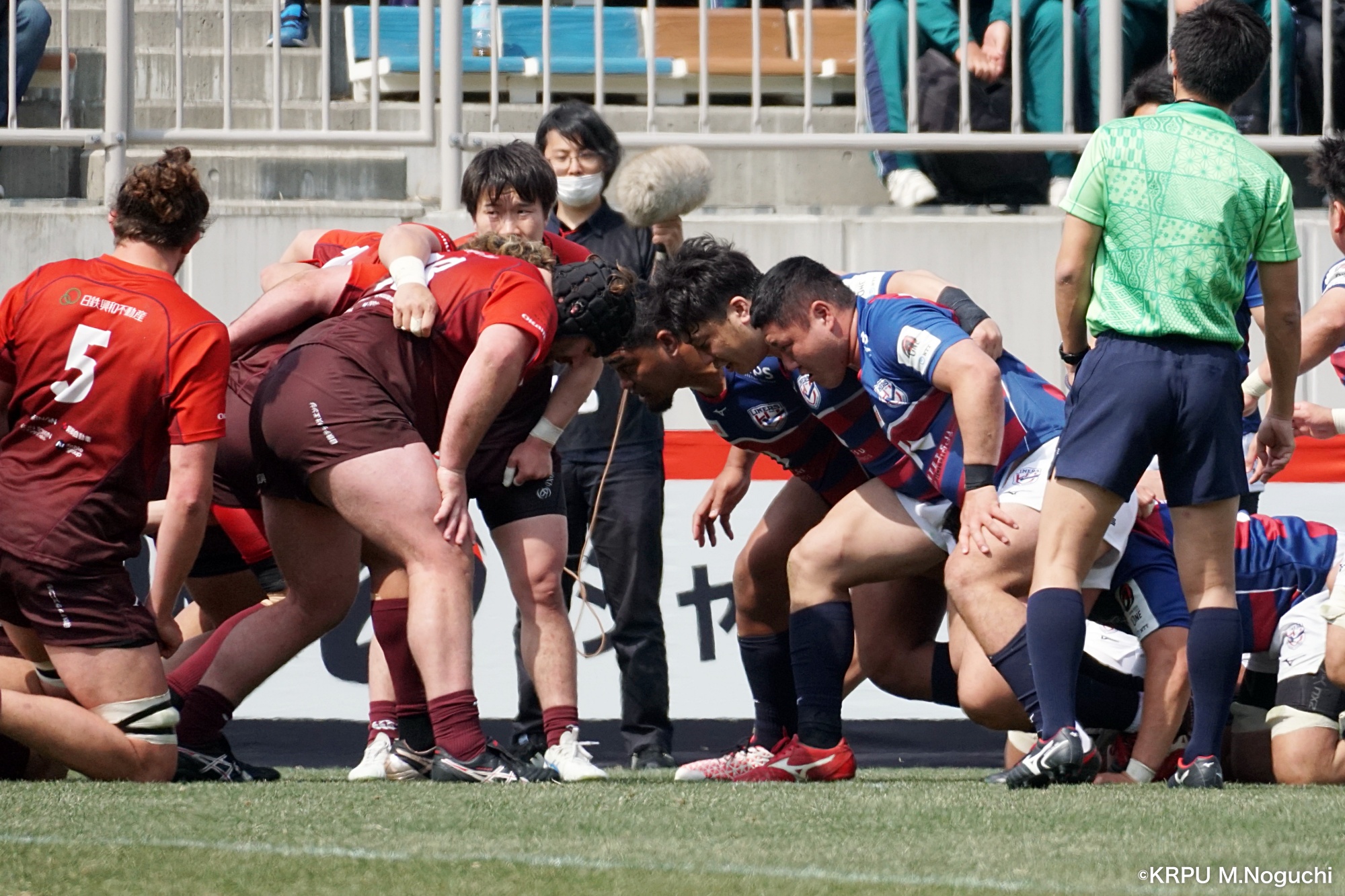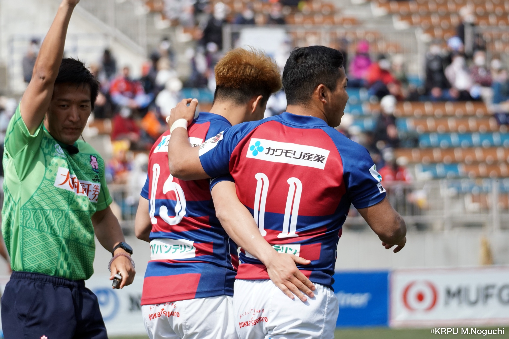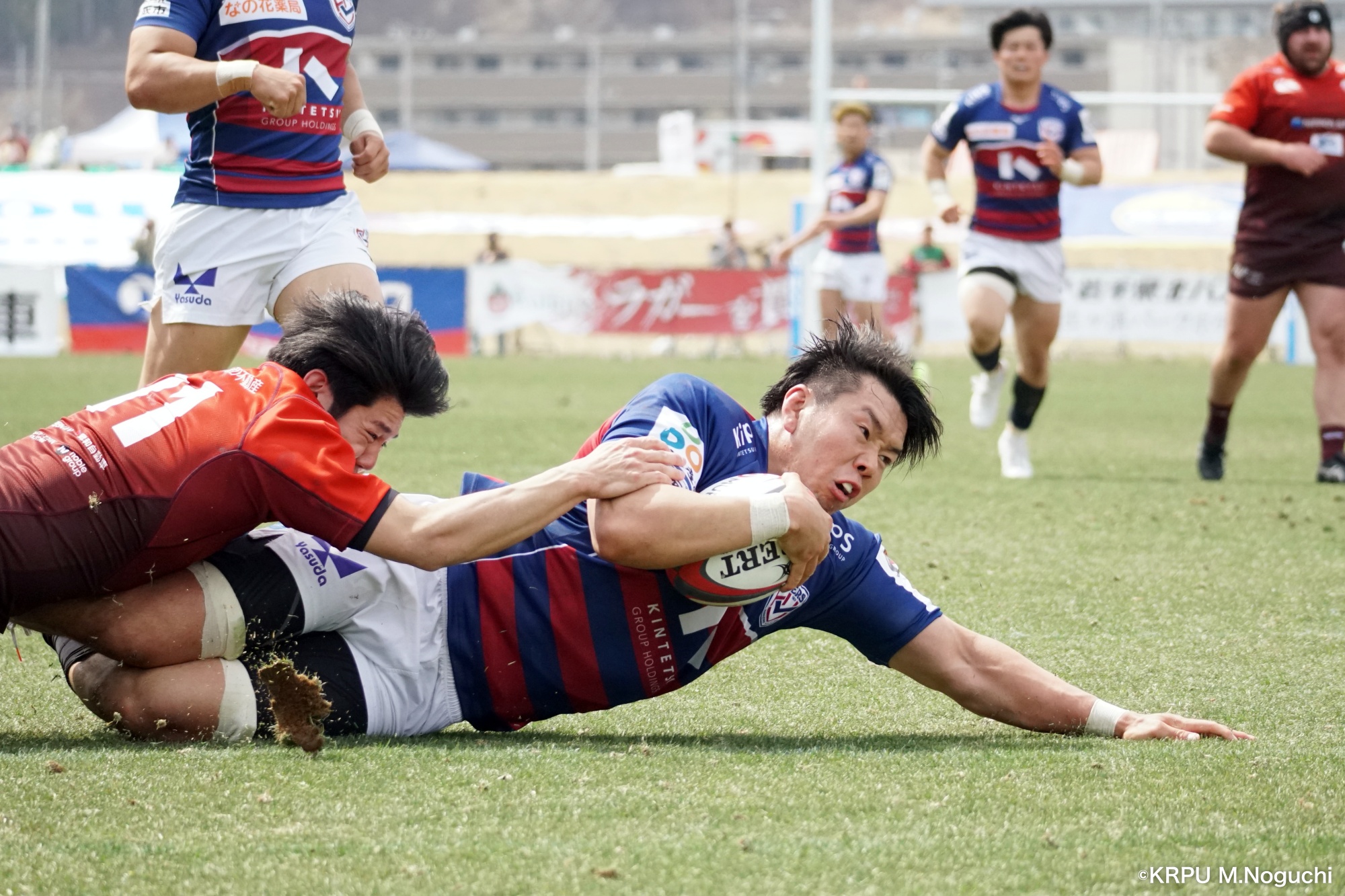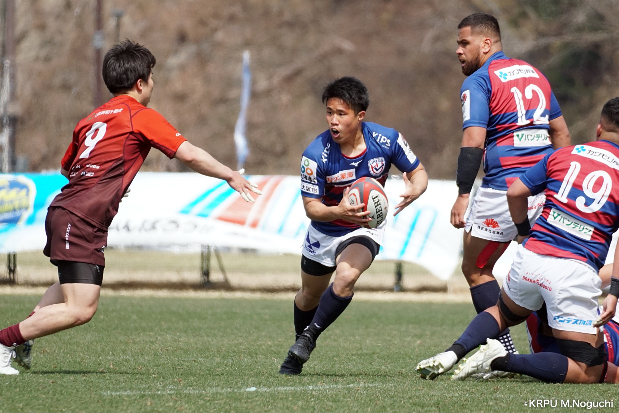 前半23分に8ジョセ、33分に11片岡、35分に4菅原、37分に6横井と次々トライを決め39-0に。