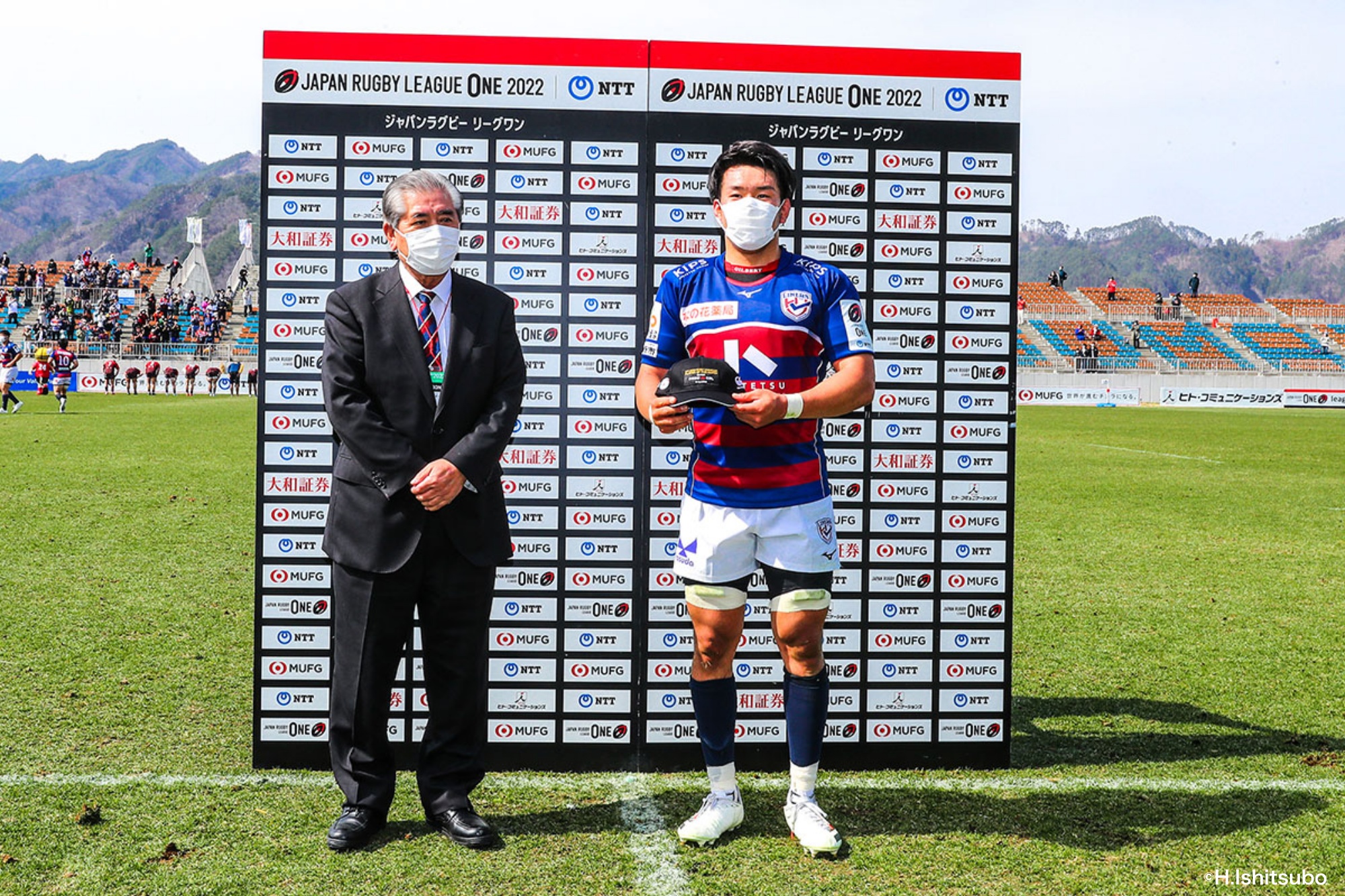 この日プレイヤーオブザマッチに選ばれた菅原は、後半20分にもリスタートから縦に攻めるともう1トライあげます。