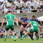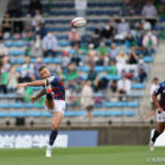 前半5分、ファーストスクラムから陣地を進めると、相手陣ゴール前でのマイボールラインアウト。サインプレーで5ワクァがジャンプせずにスローイングを受けとると、そのまま雪崩込みトライをあげます。クーパーのゴールも成功し7-0に。