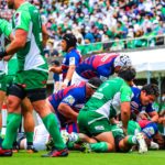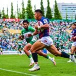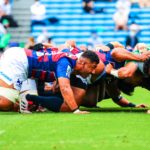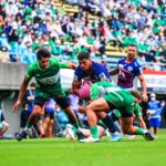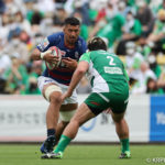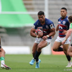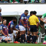 リスタート後の前半22分、自陣密集からゲニアのキックをチャージされると、そのままトライを奪われます。19-12の7点差。