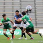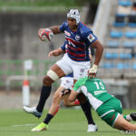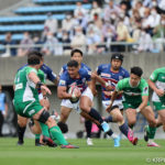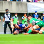オフロードパスを駆使しながら真っ直ぐ突っ込んでくるダイナボアーズ。ディフェンスで応戦しますが間に合わず、前半18分にトライを許します。