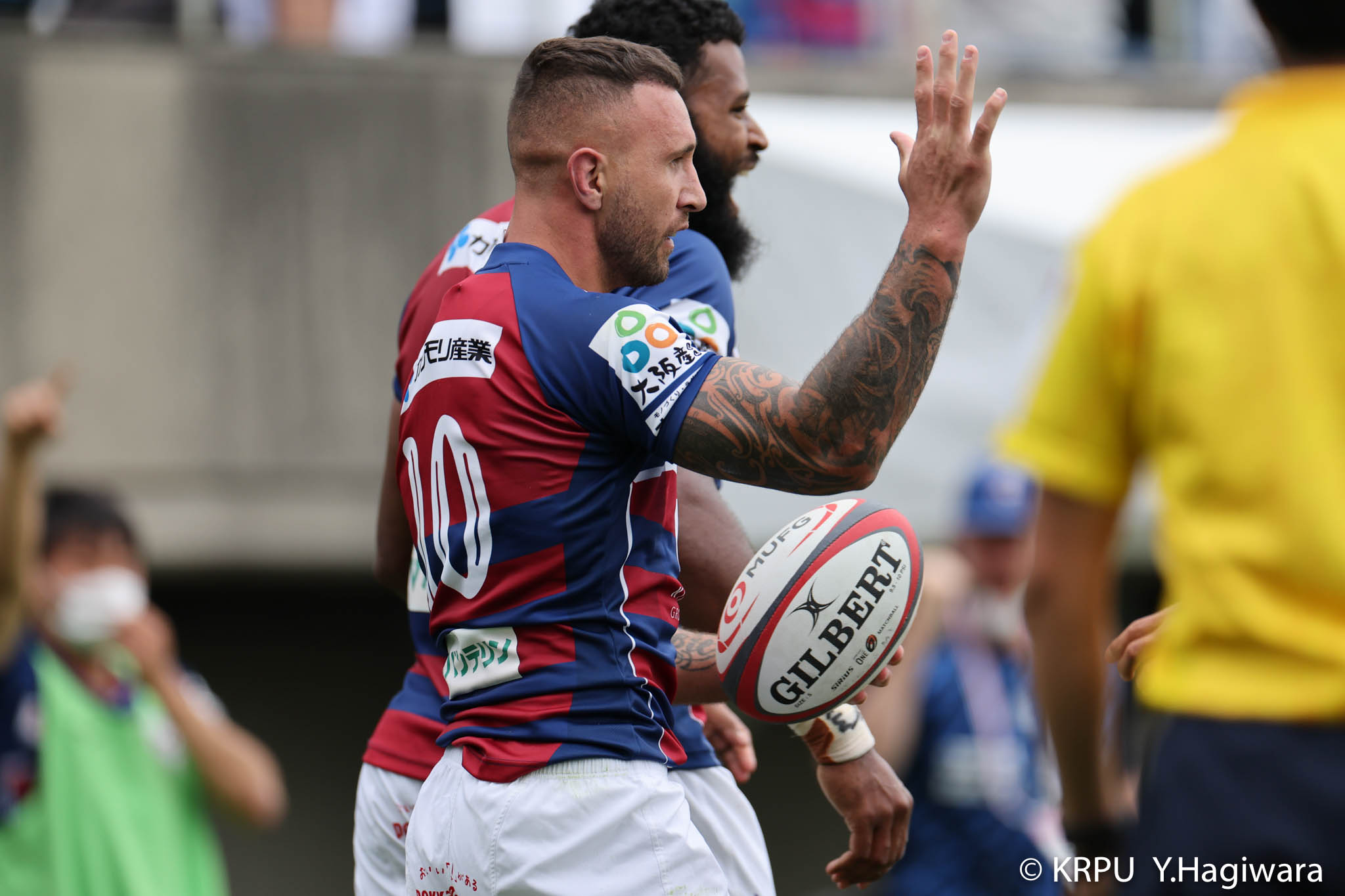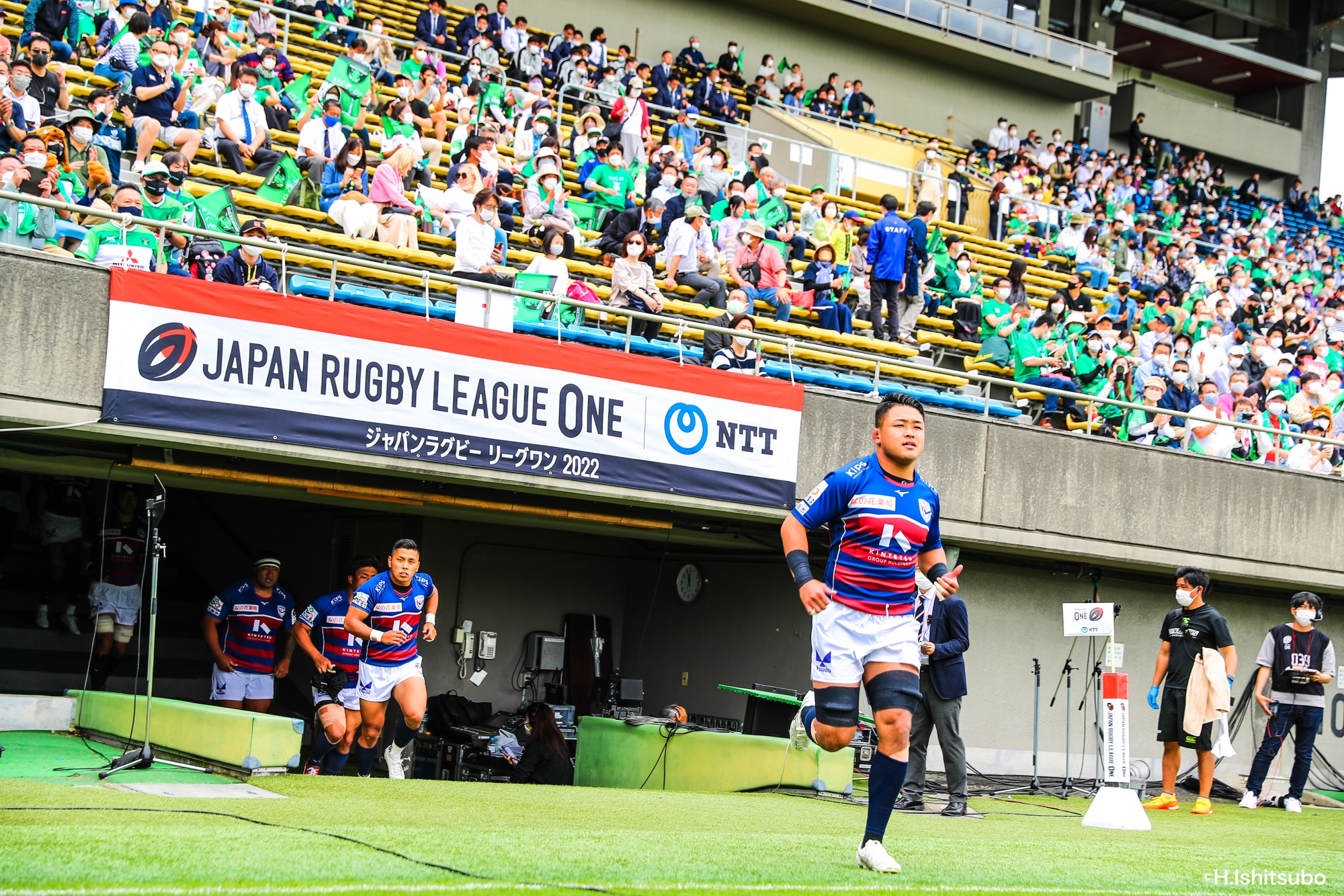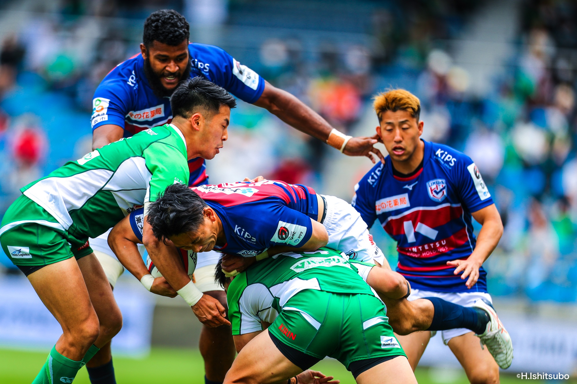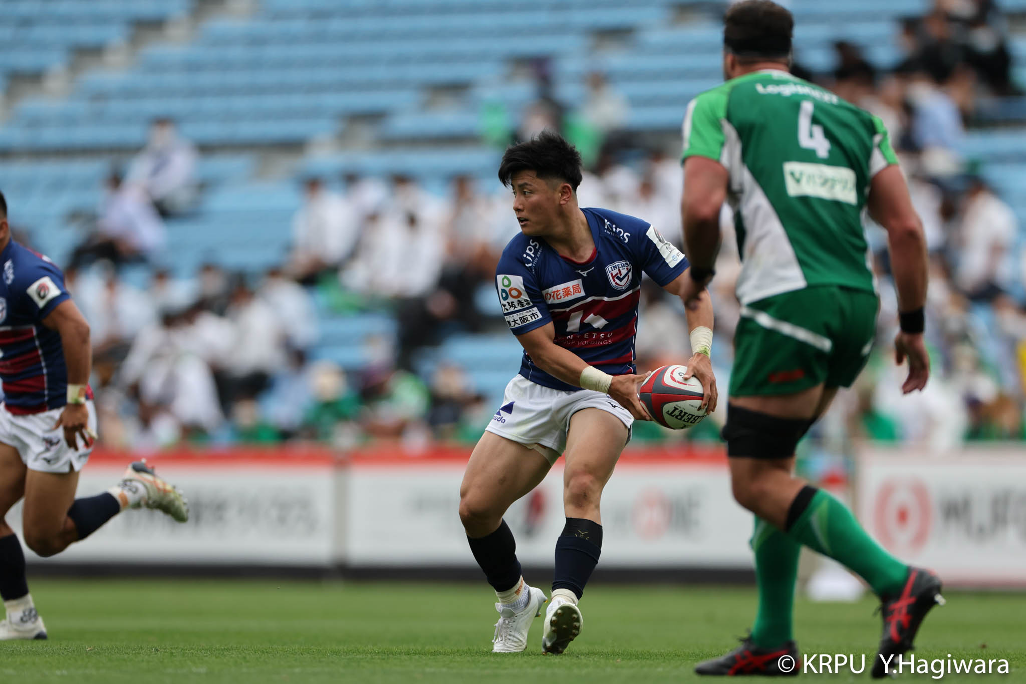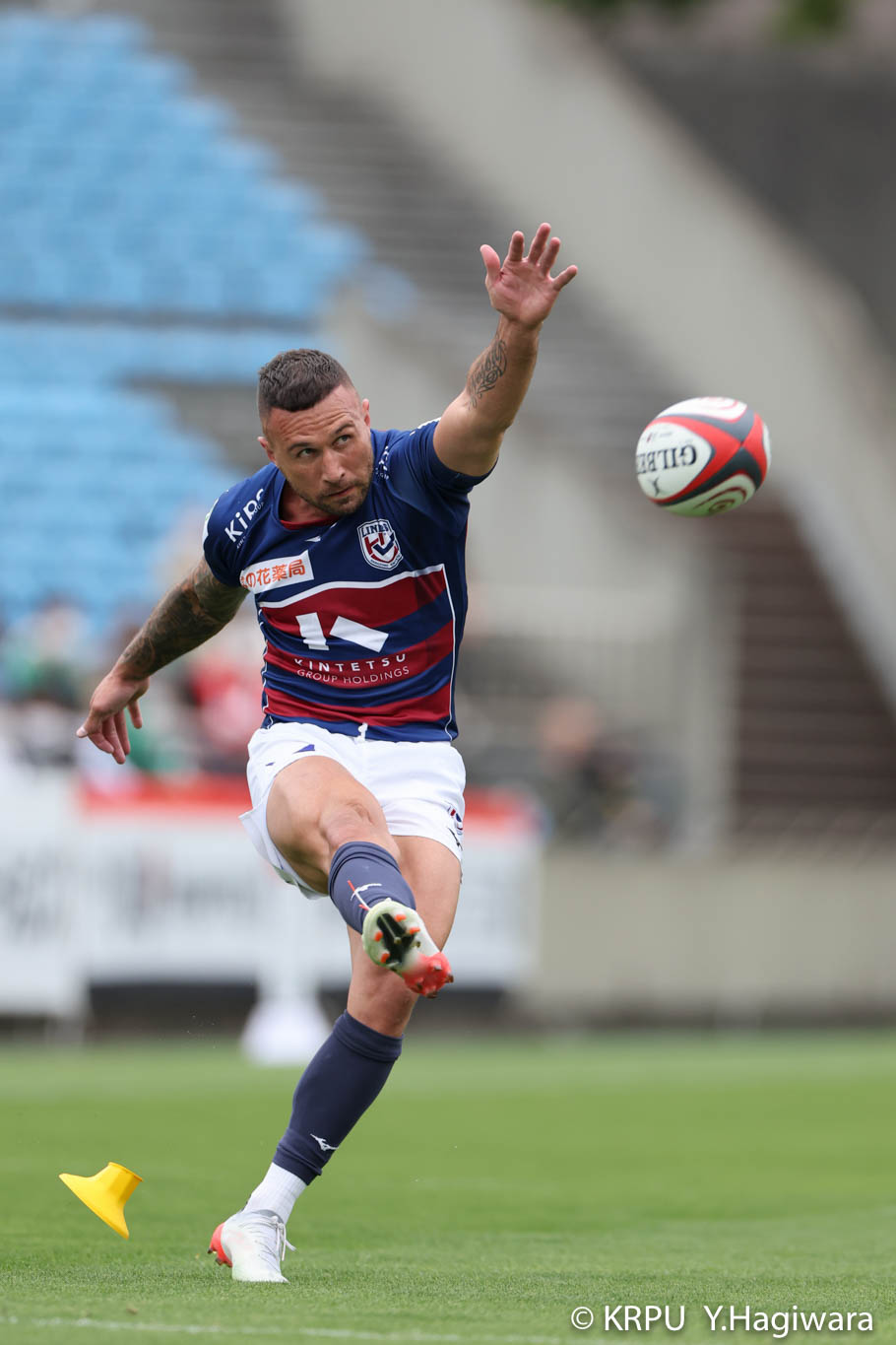 ライナーズボールのラインアウトから回し14木村がダミーで抜けると、右へ。クーパーからアウトサイドのキックパスが右外のワクァに渡ってトライを決めます。27-15のライナーズリードで前半が終了。