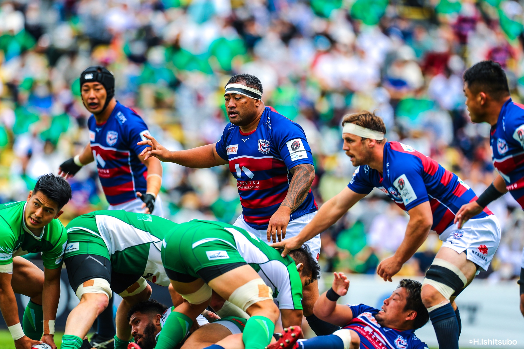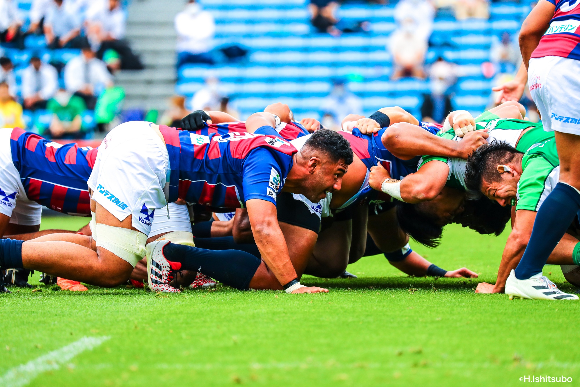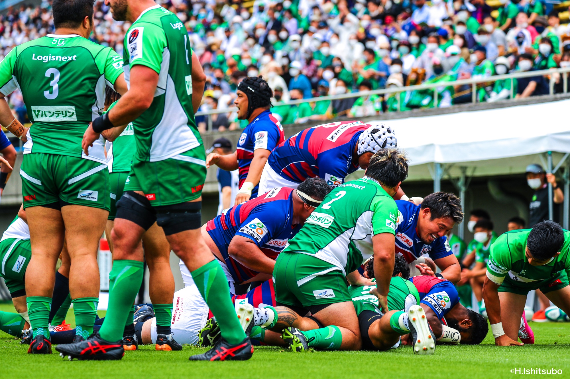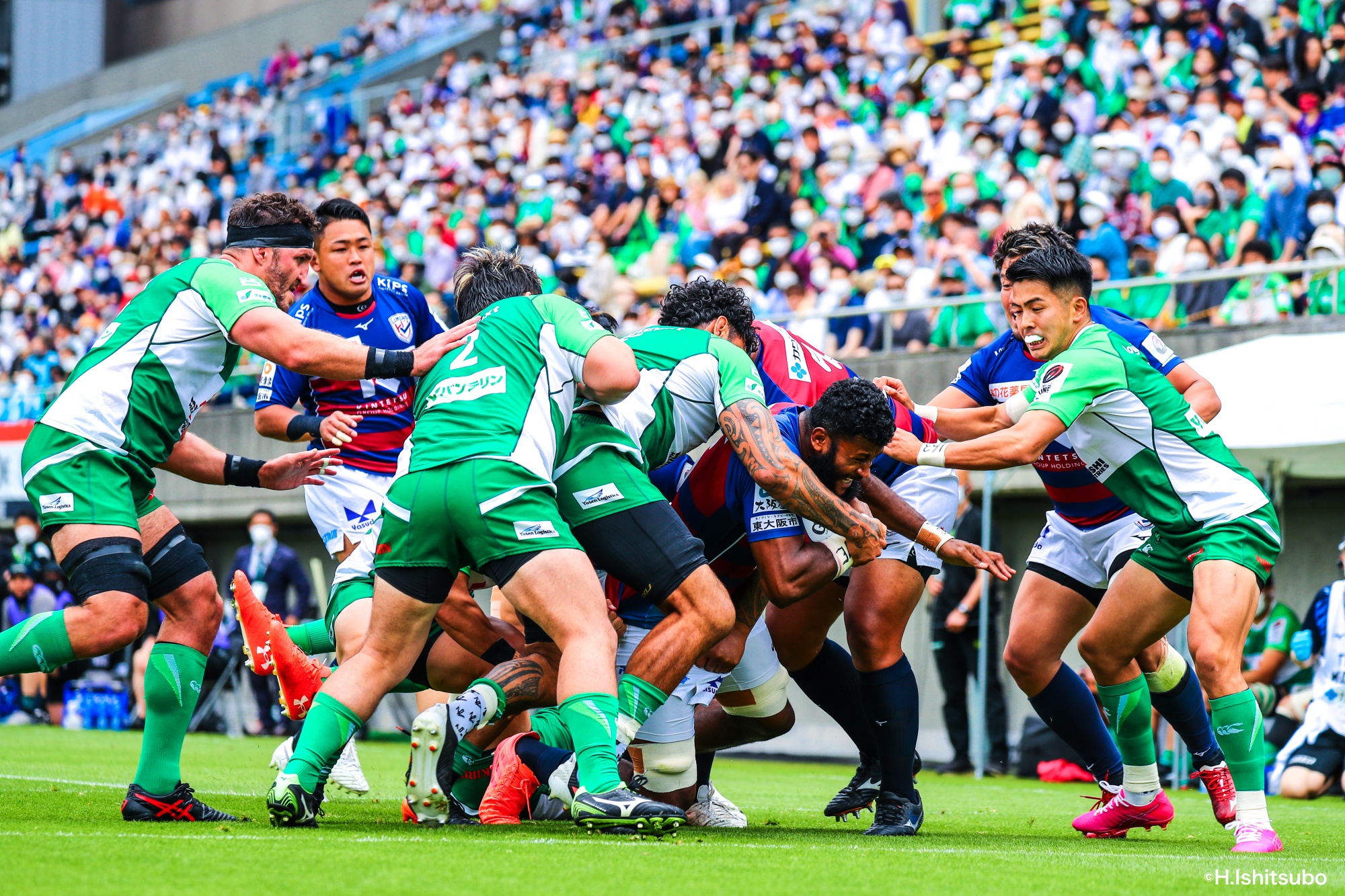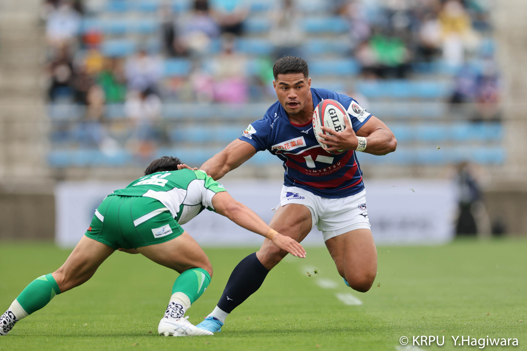 オフロードパスを駆使しながら真っ直ぐ突っ込んでくるダイナボアーズ。ディフェンスで応戦しますが間に合わず、前半18分にトライを許します。