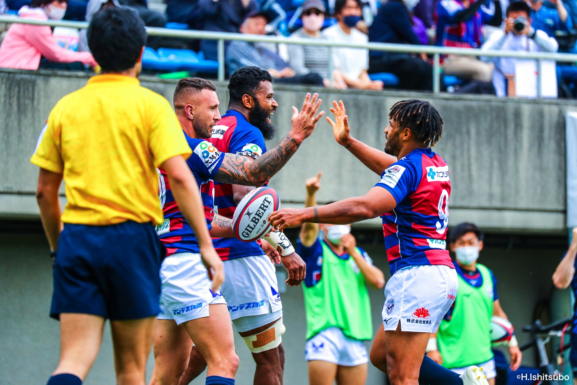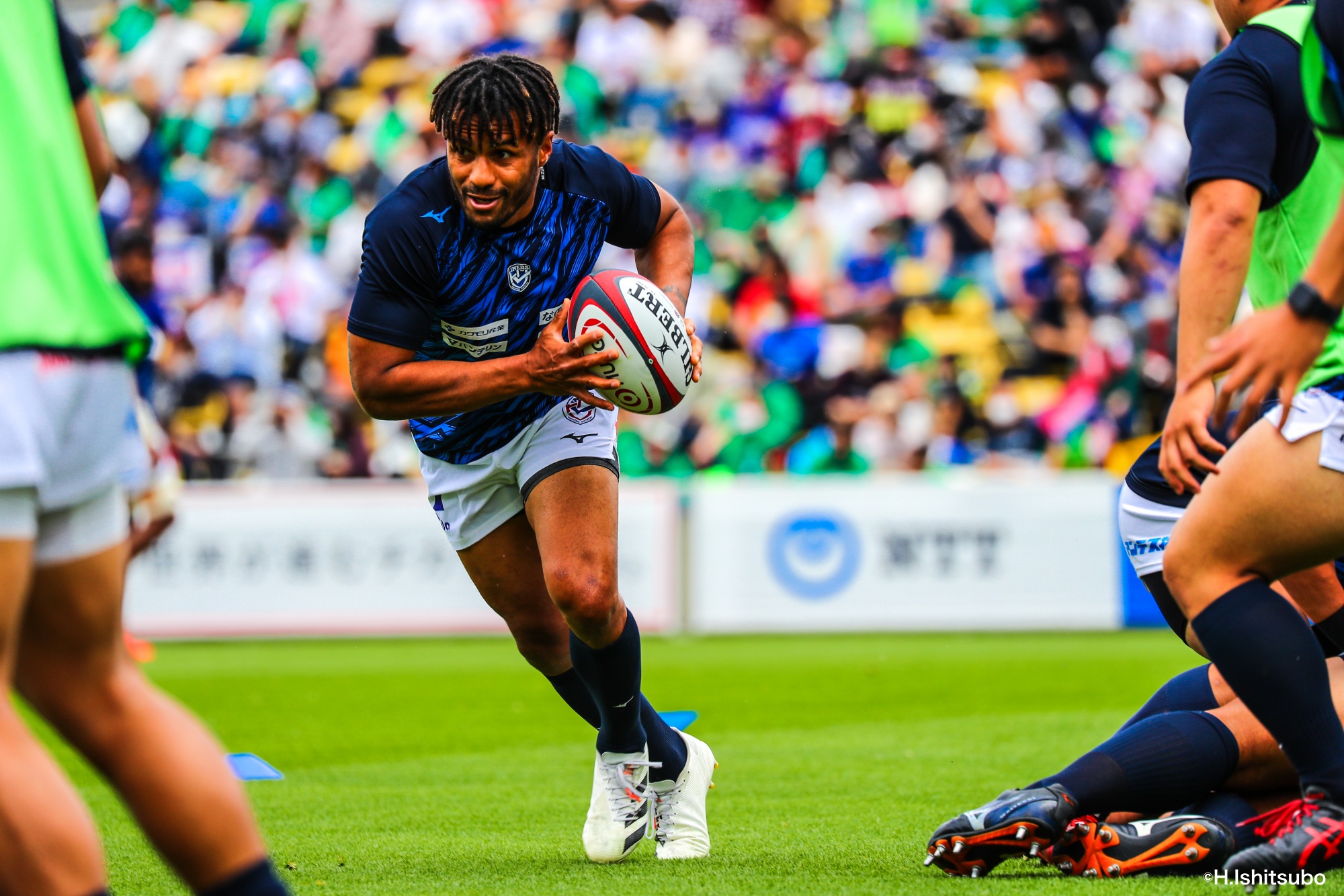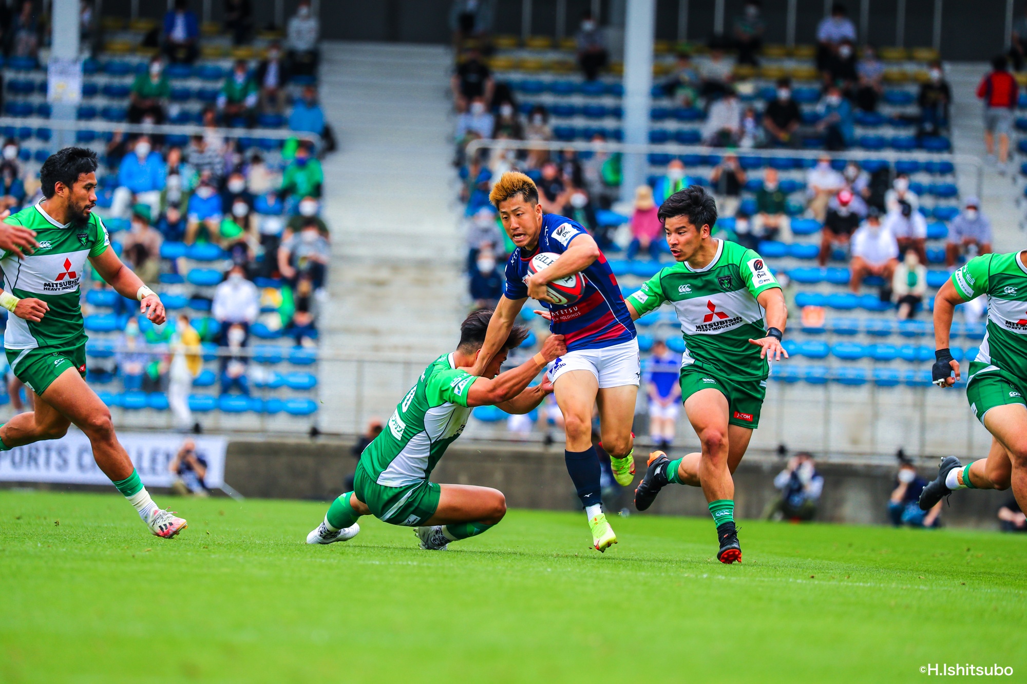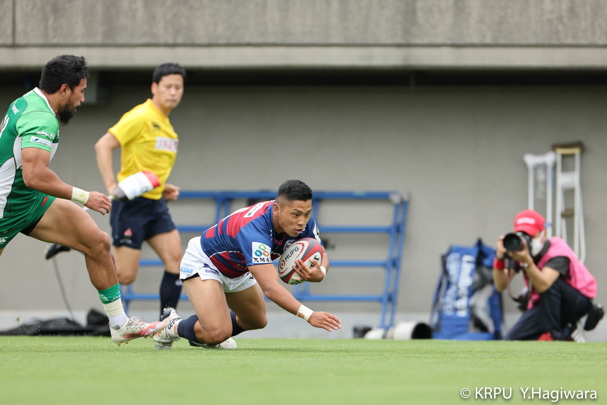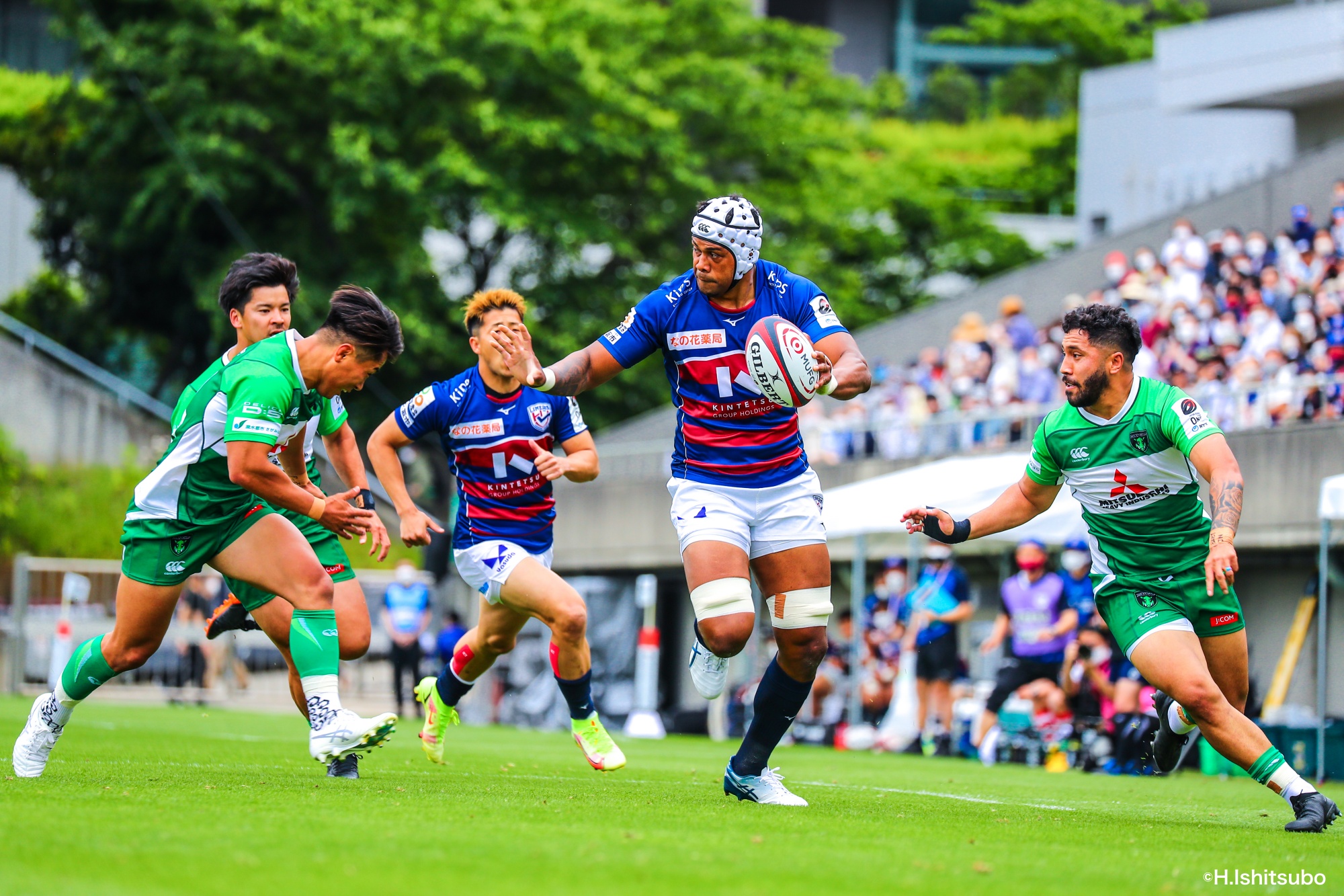 オフロードパスを駆使しながら真っ直ぐ突っ込んでくるダイナボアーズ。ディフェンスで応戦しますが間に合わず、前半18分にトライを許します。