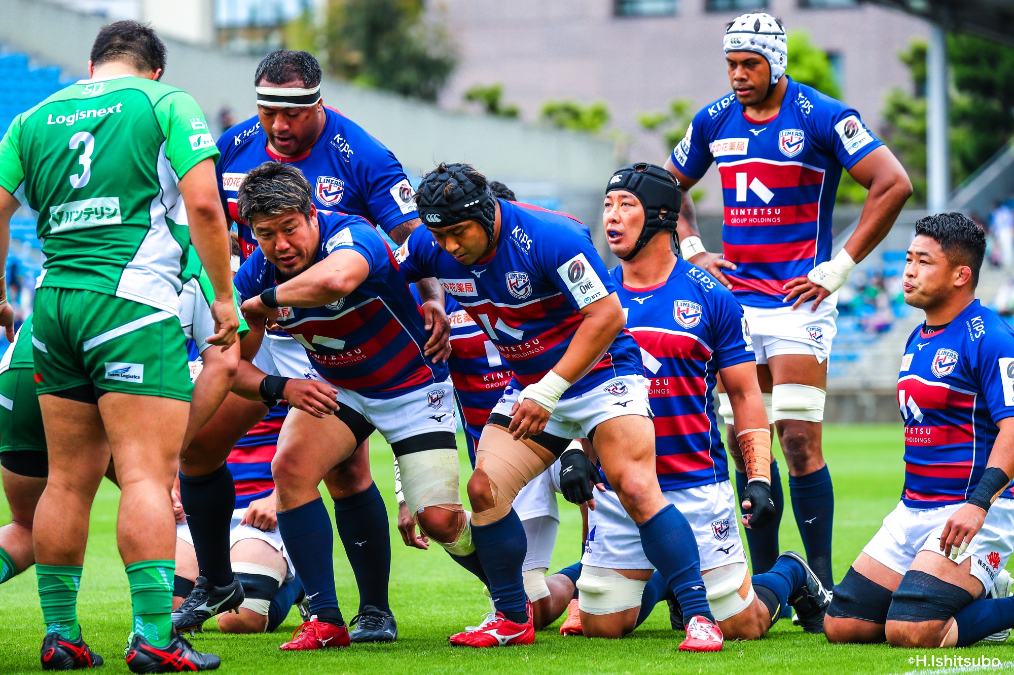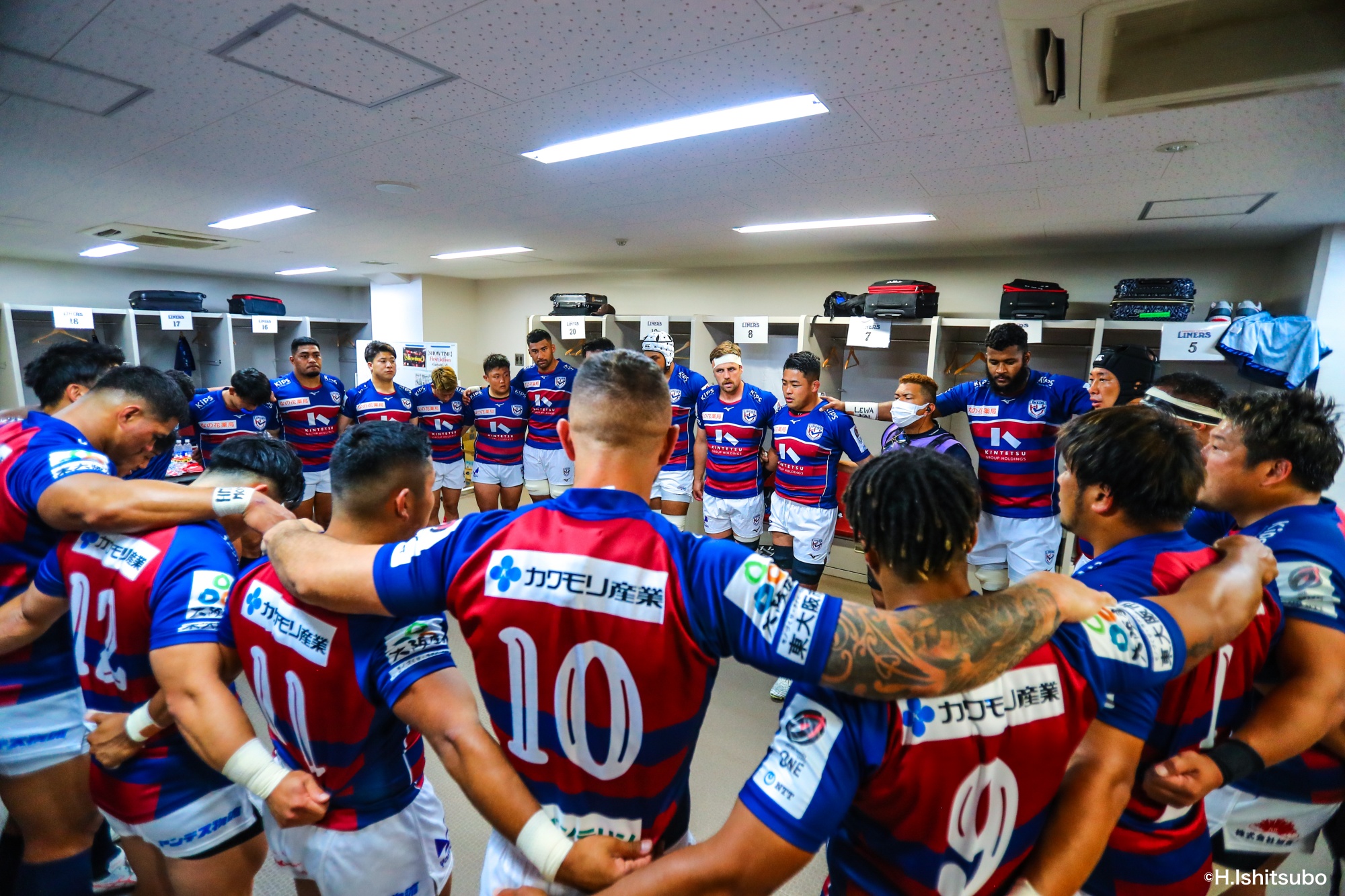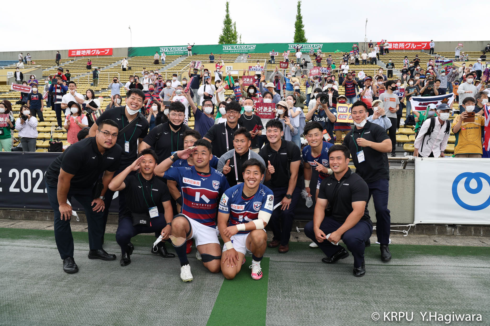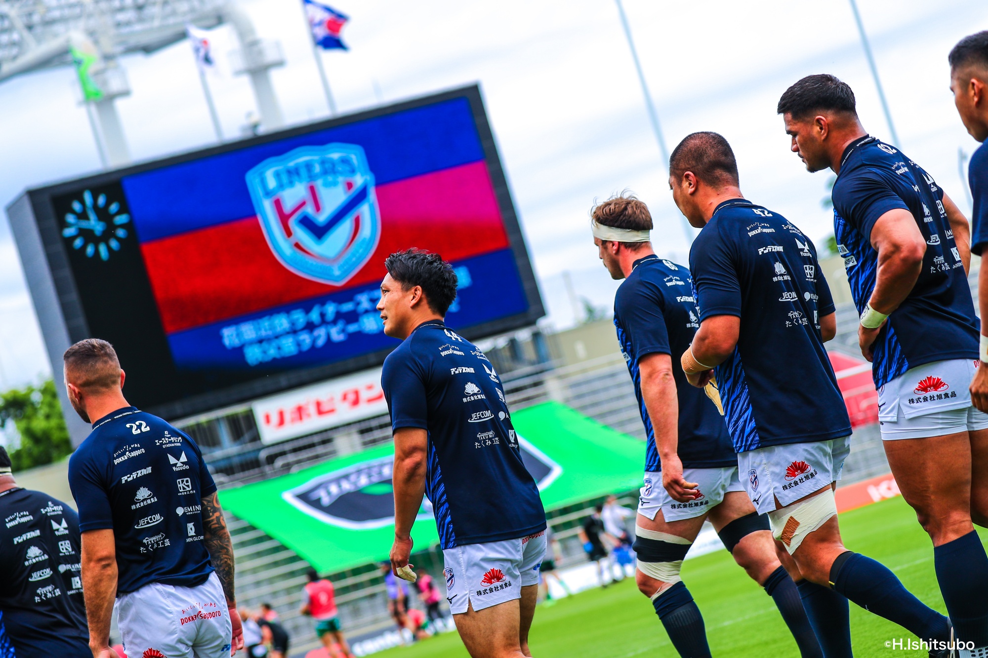 ビジターとなるライナーズは、前節から復帰したゲニアとクーパーをハーフ団に、佐々木・樫本・シラの経験豊富な第1列。さらに前節公式戦100キャップを達成したLO松岡、トライ量産を狙えるLOワクァやWTB片岡などの布陣で臨みました。