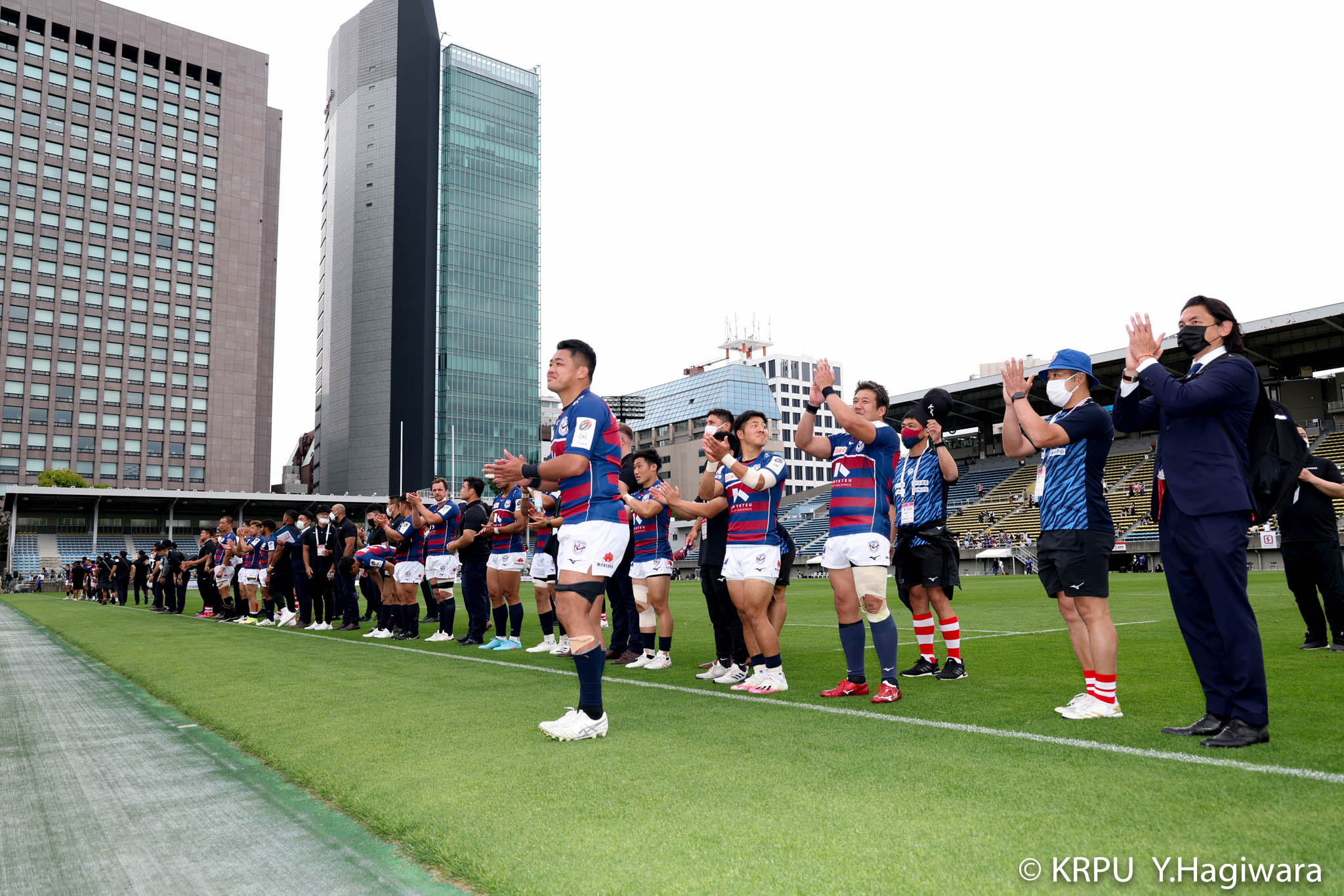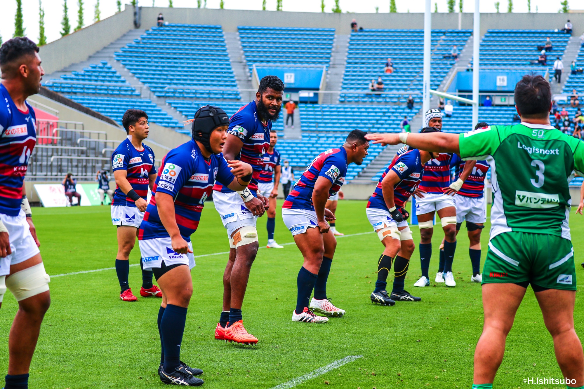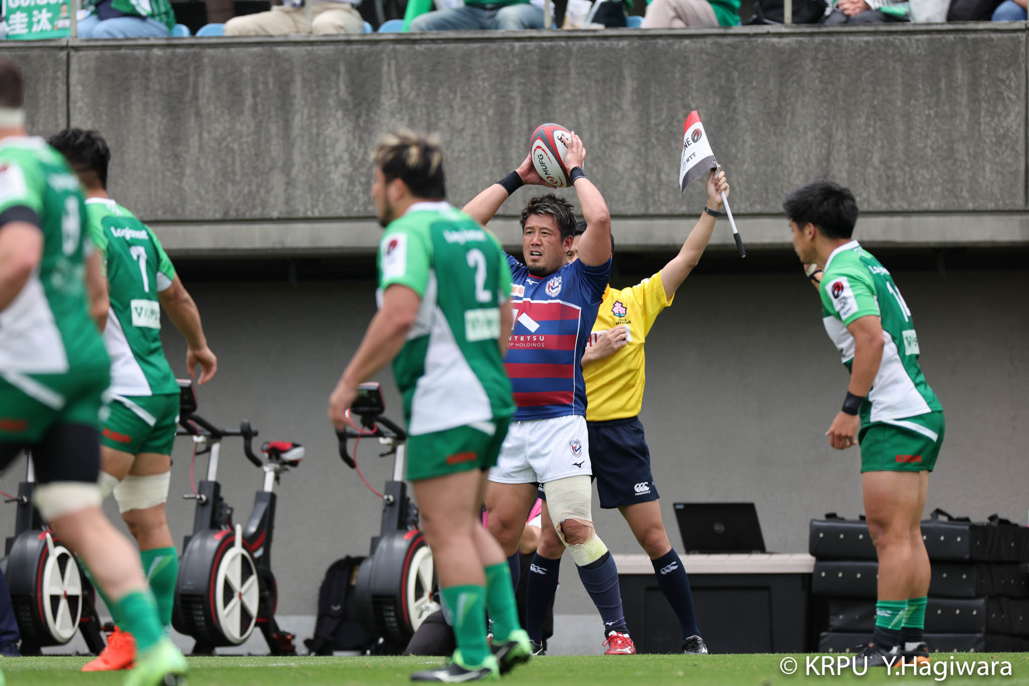 ビジターとなるライナーズは、前節から復帰したゲニアとクーパーをハーフ団に、佐々木・樫本・シラの経験豊富な第1列。さらに前節公式戦100キャップを達成したLO松岡、トライ量産を狙えるLOワクァやWTB片岡などの布陣で臨みました。