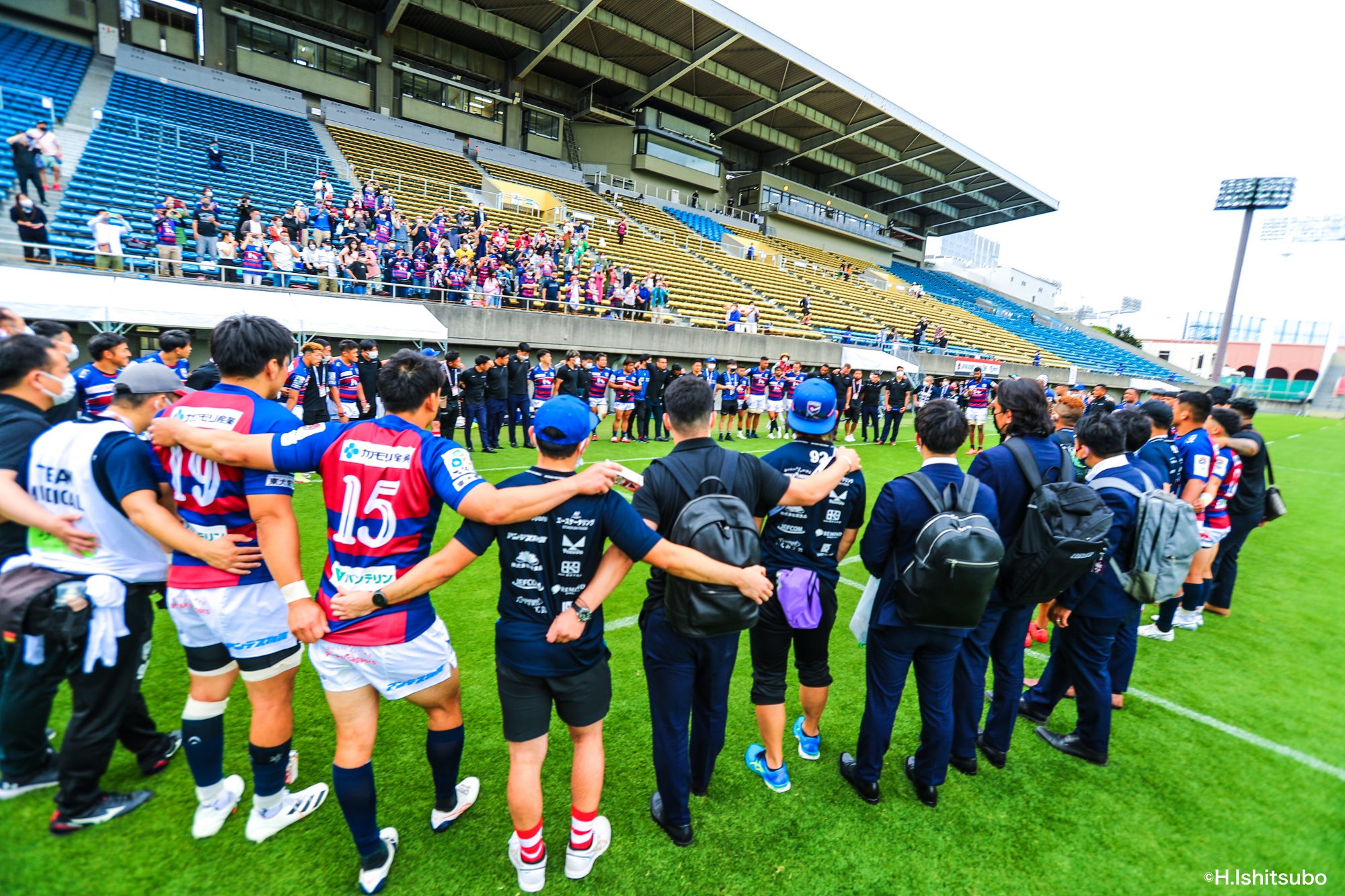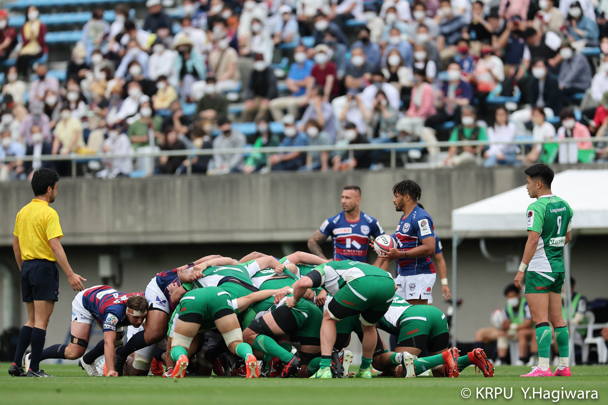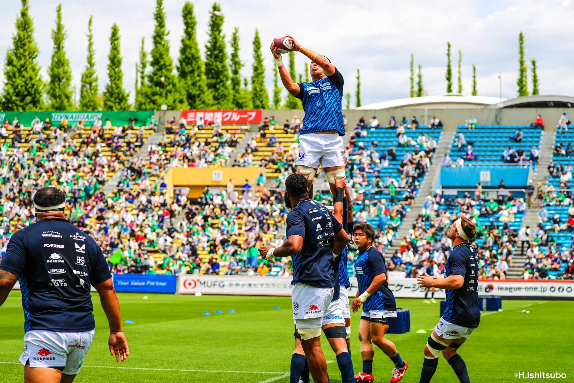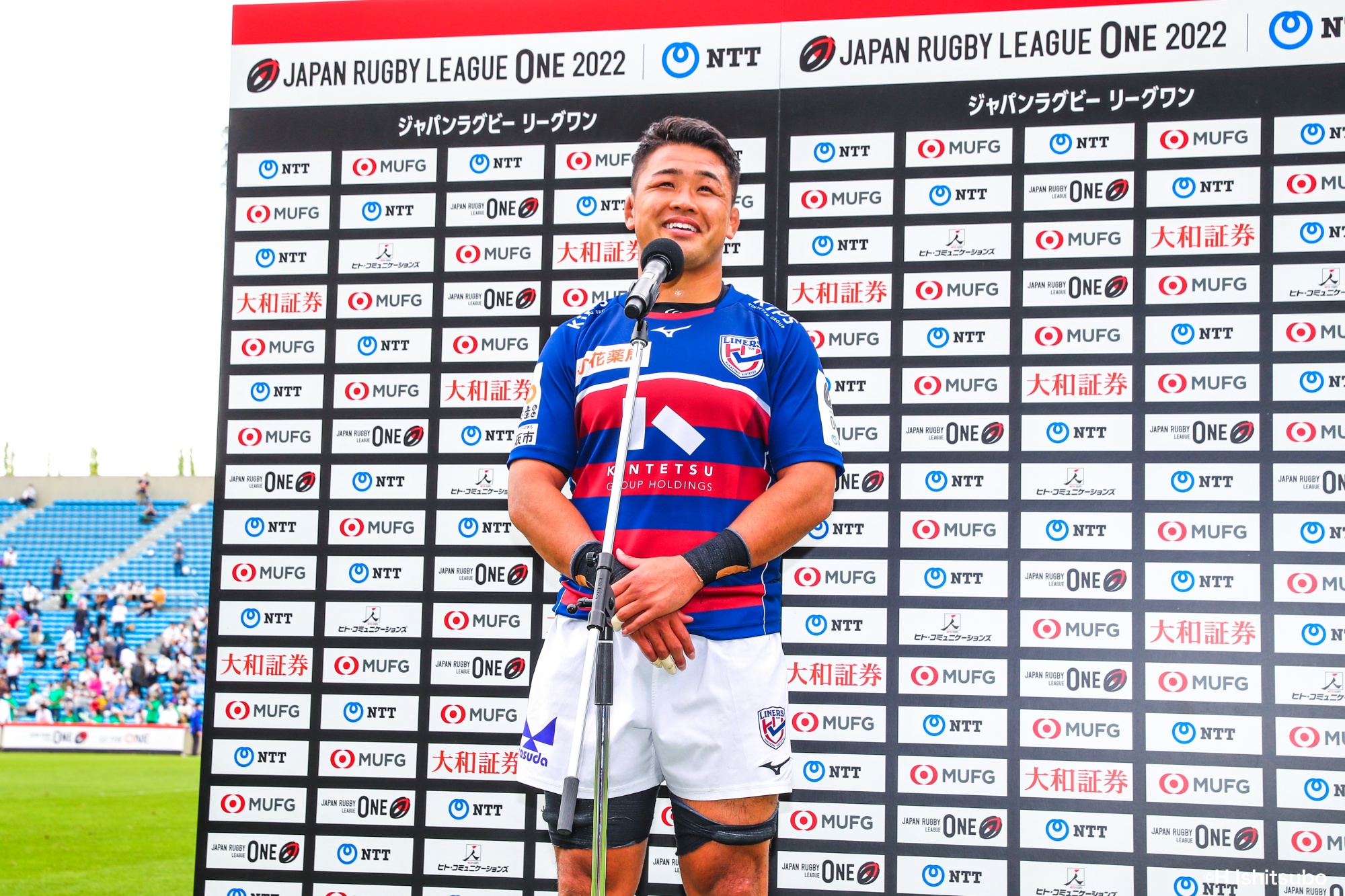 ビジターとなるライナーズは、前節から復帰したゲニアとクーパーをハーフ団に、佐々木・樫本・シラの経験豊富な第1列。さらに前節公式戦100キャップを達成したLO松岡、トライ量産を狙えるLOワクァやWTB片岡などの布陣で臨みました。