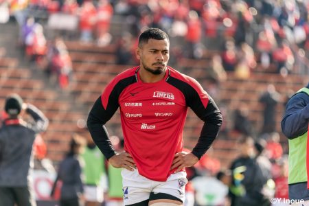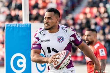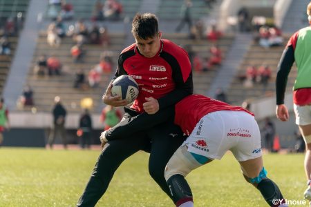 もう1本取られ、14-22で迎えた前半33分。相手のシンビンで数的有利な状況のライナーズは、パスを回して相手ディフェンスを翻弄します。
