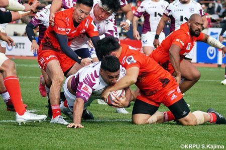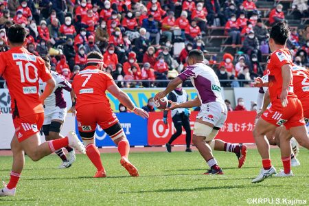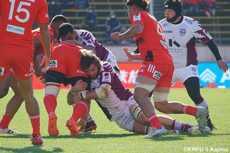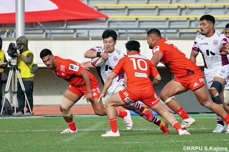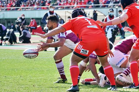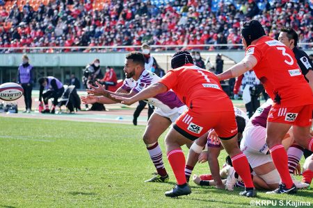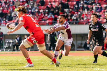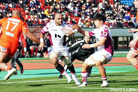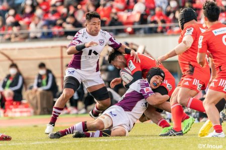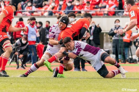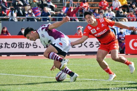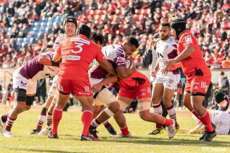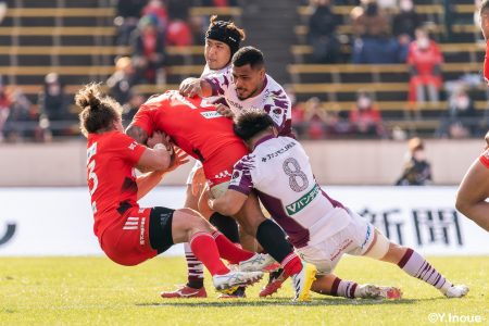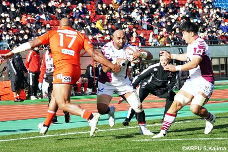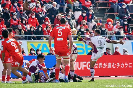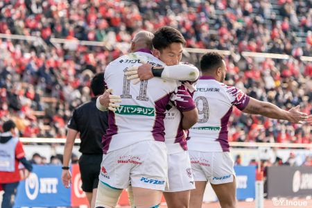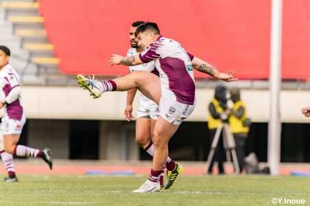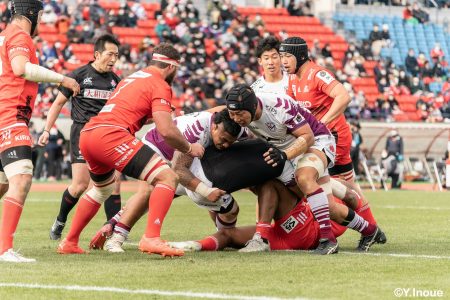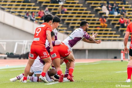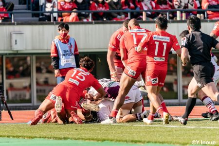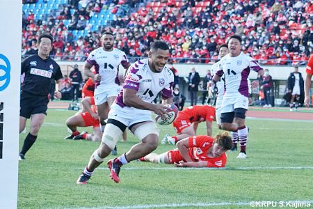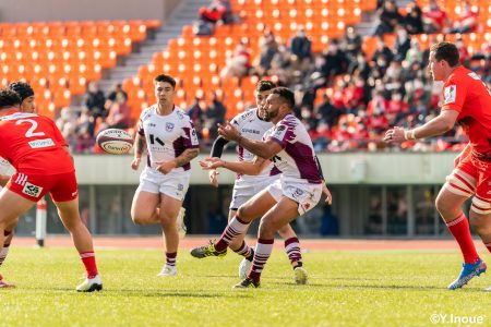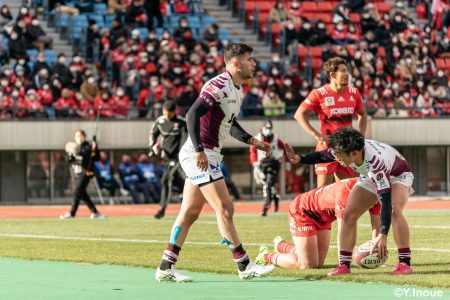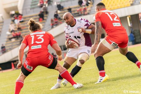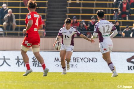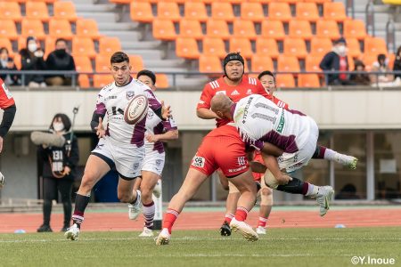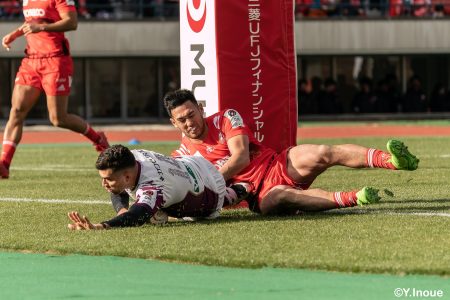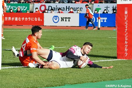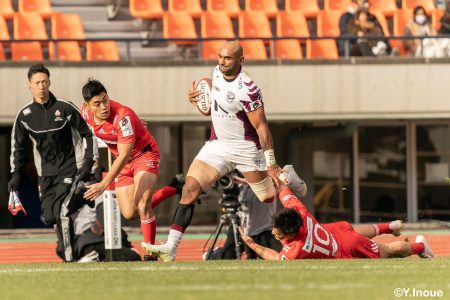 後半12分にゲニアからのロングパスを受け取ったマシレワがステップを切ってトライをあげ、なんとか食らいつきますが、この日の課題はやはりディフェンス。相手の前進を止められず、3トライを奪われます。