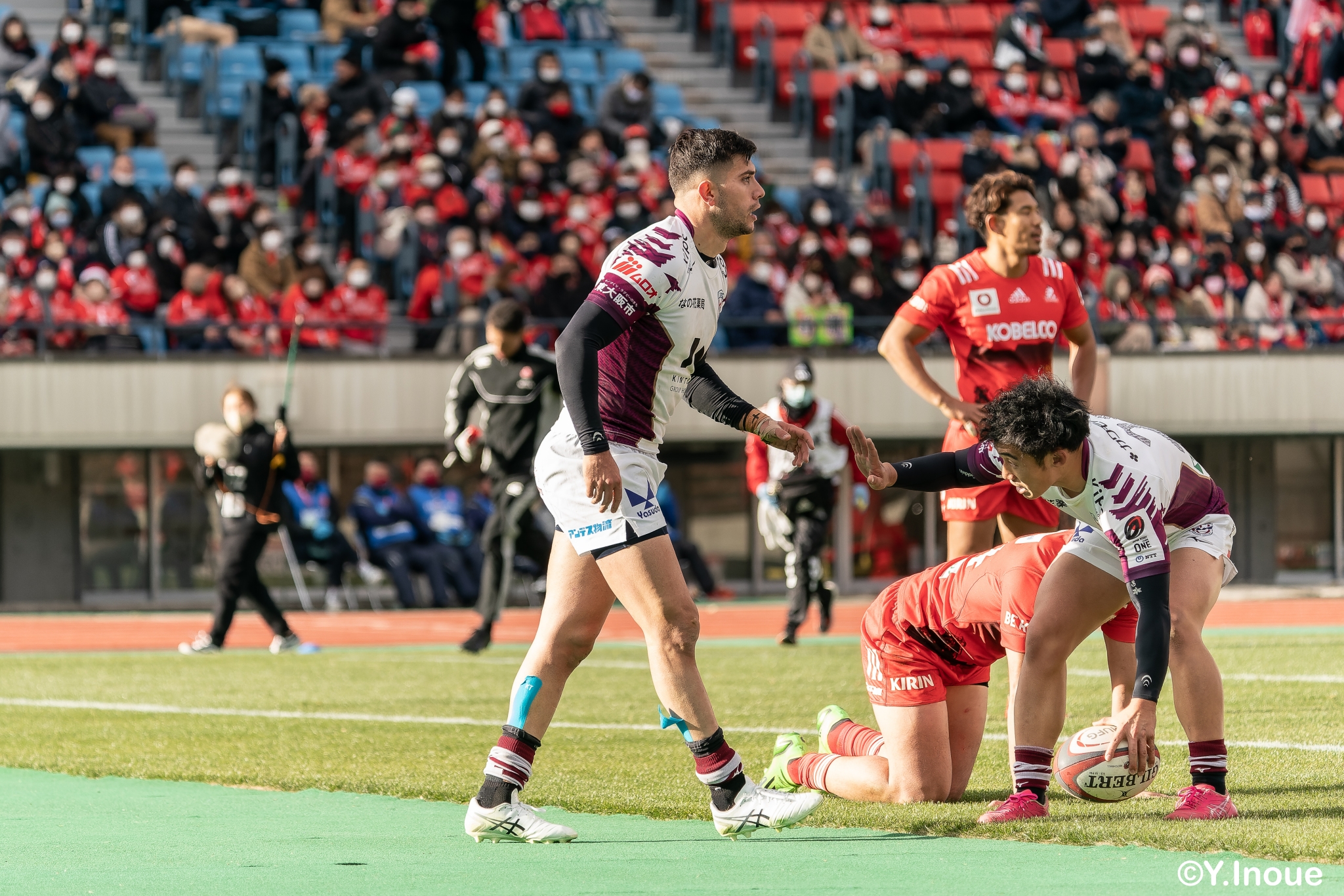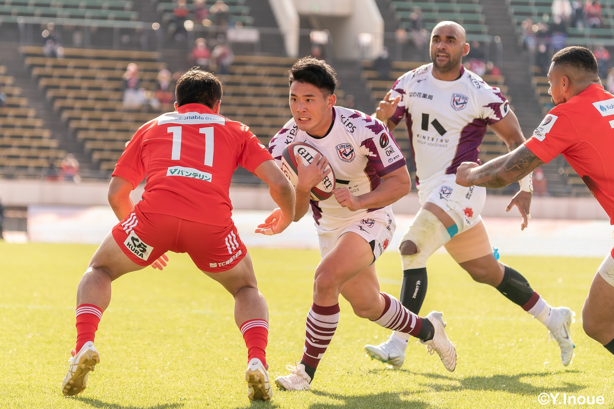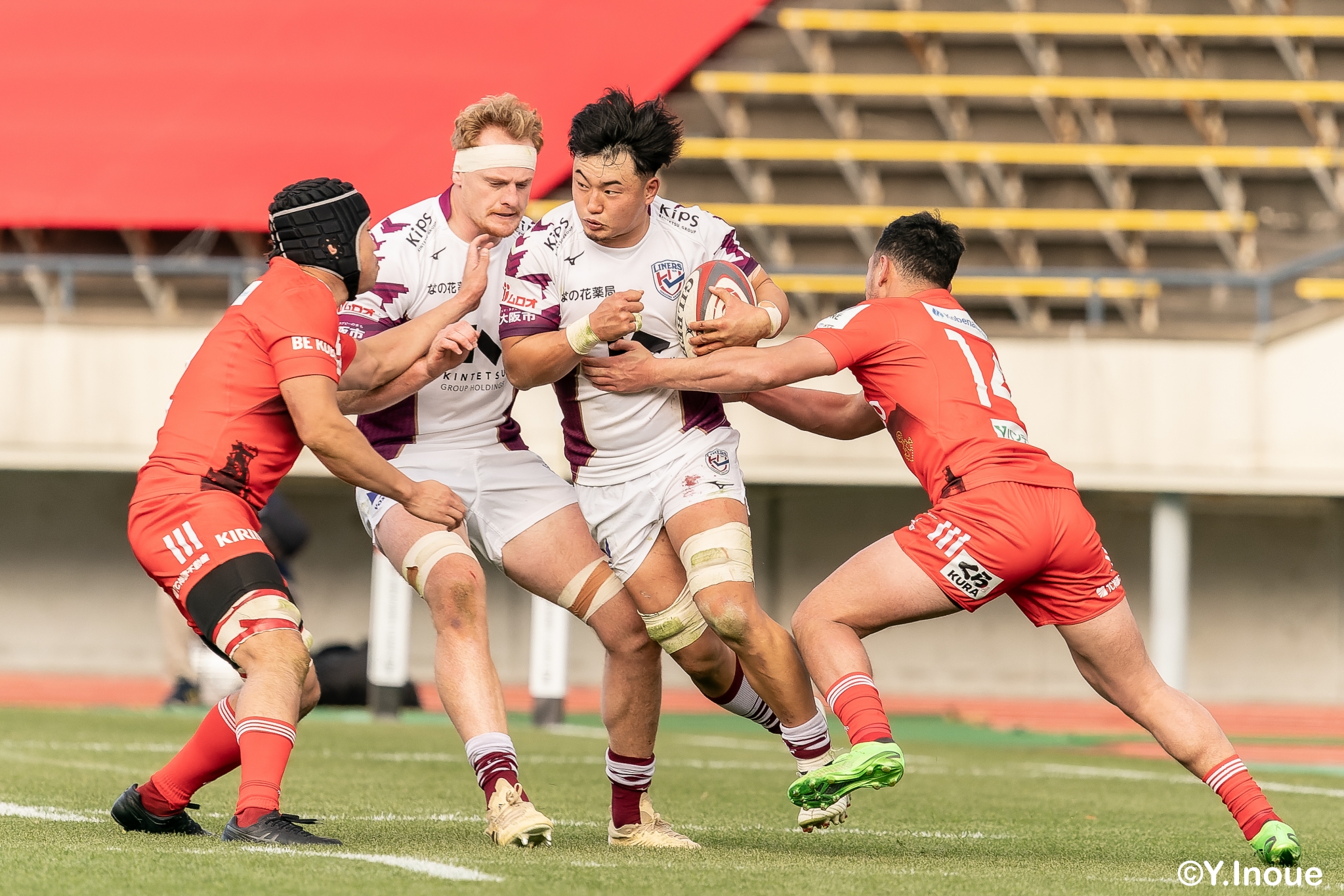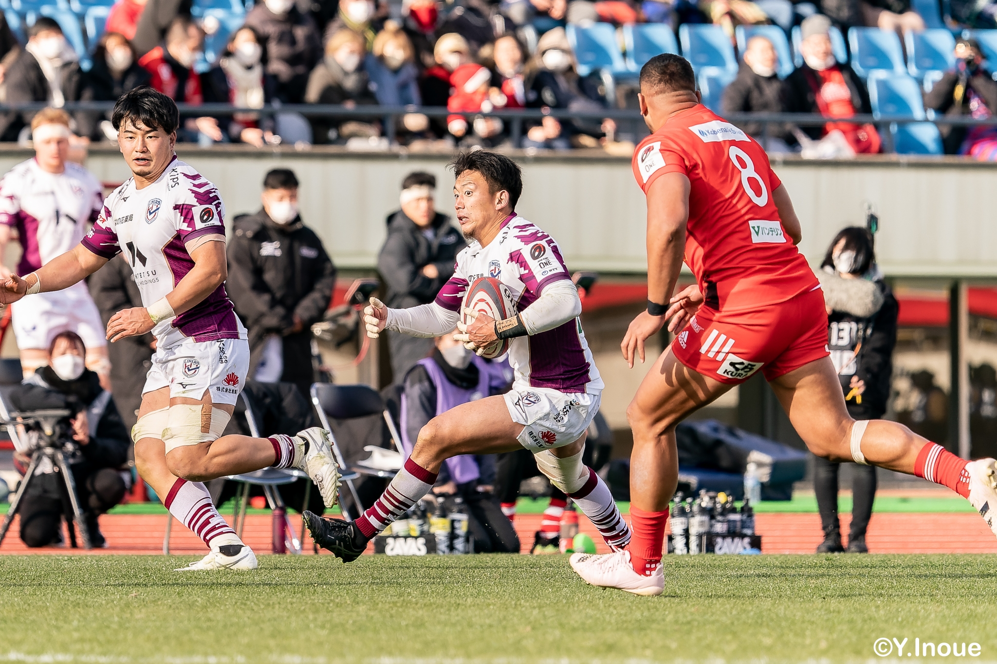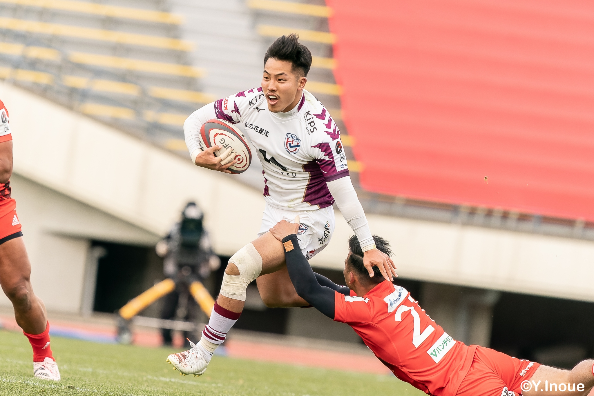 もう1本取られ、14-22で迎えた前半33分。相手のシンビンで数的有利な状況のライナーズは、パスを回して相手ディフェンスを翻弄します。