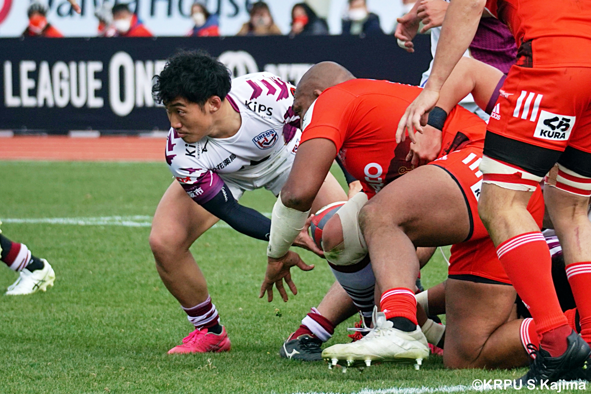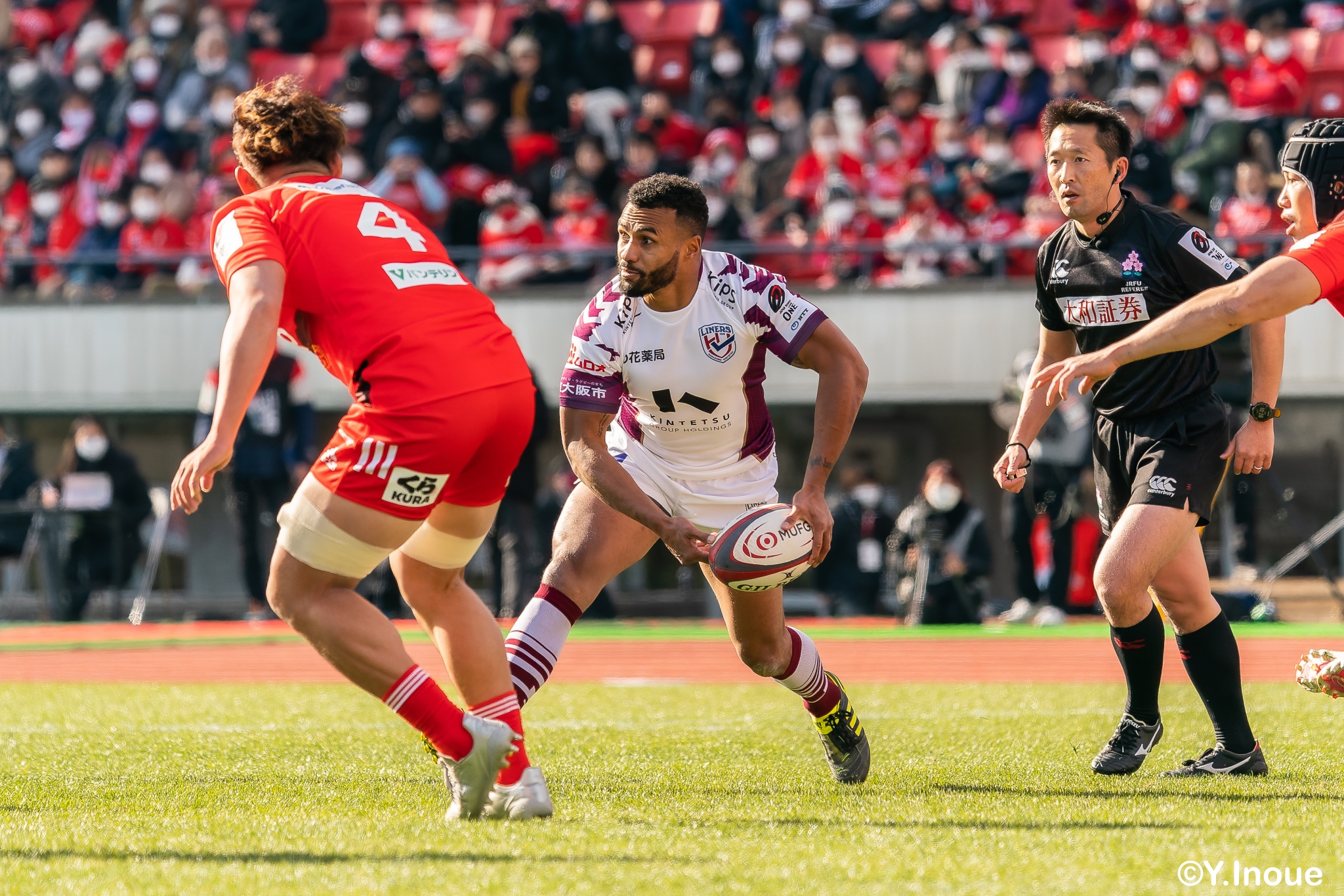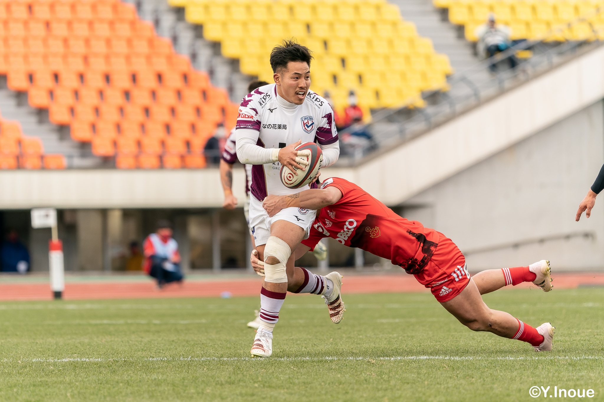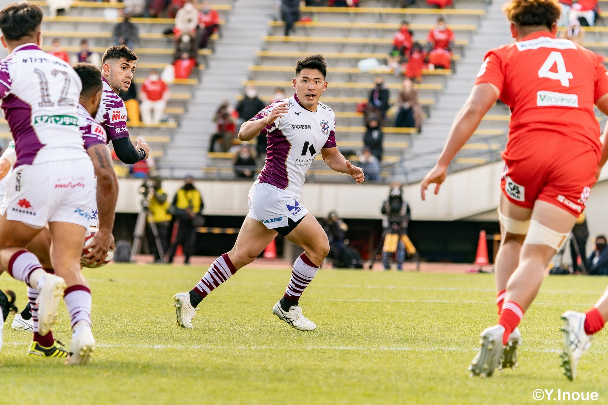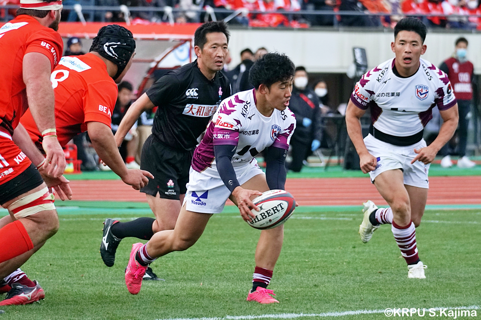 もう1本取られ、14-22で迎えた前半33分。相手のシンビンで数的有利な状況のライナーズは、パスを回して相手ディフェンスを翻弄します。