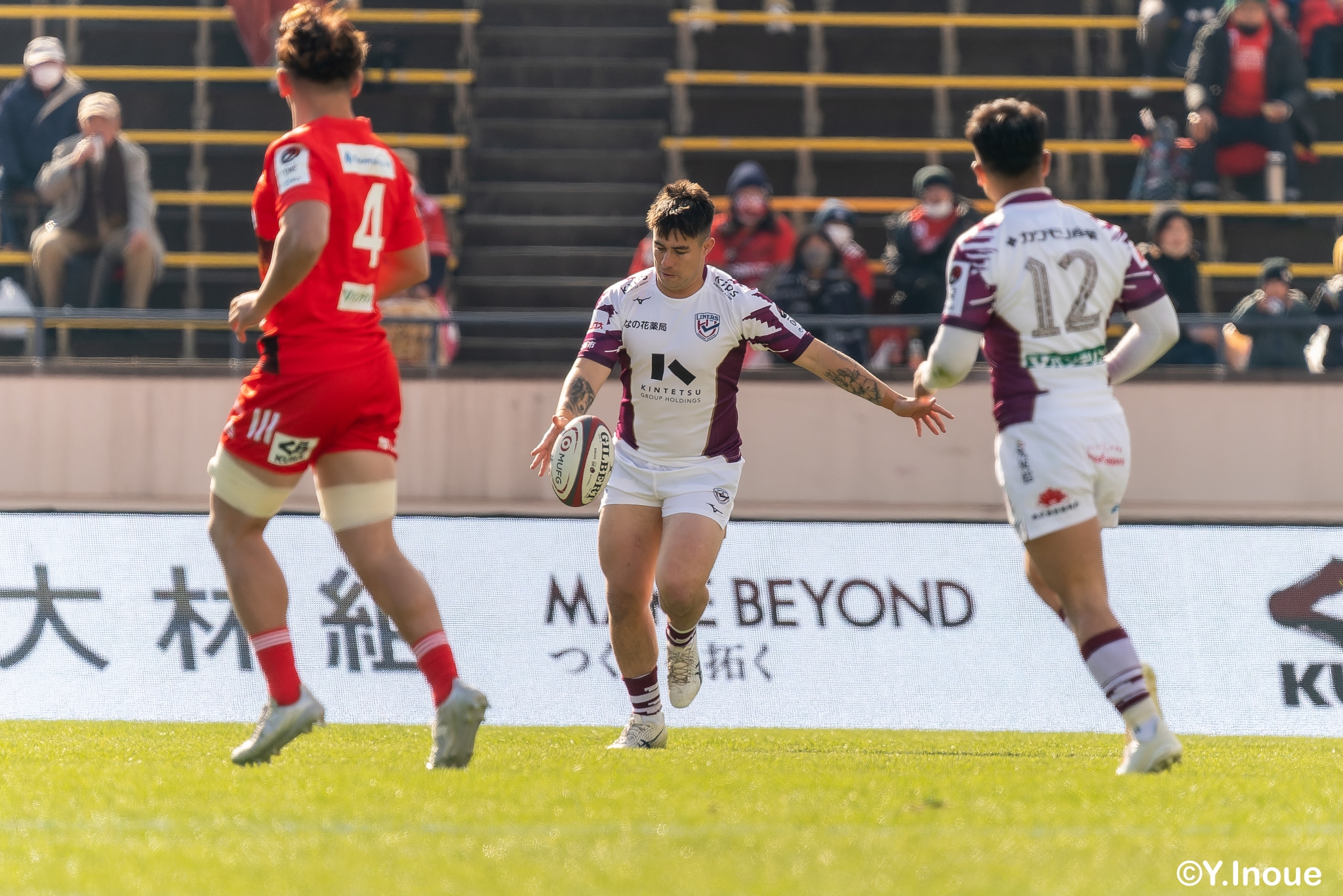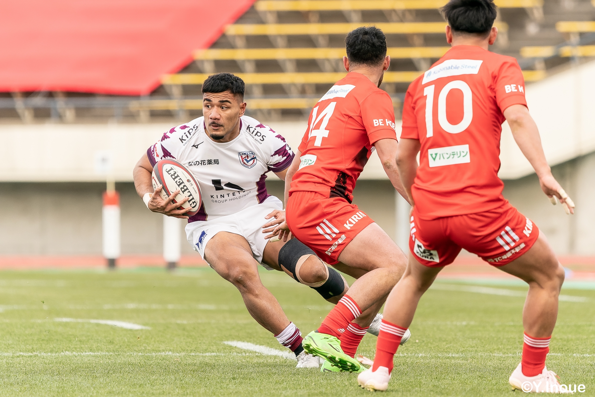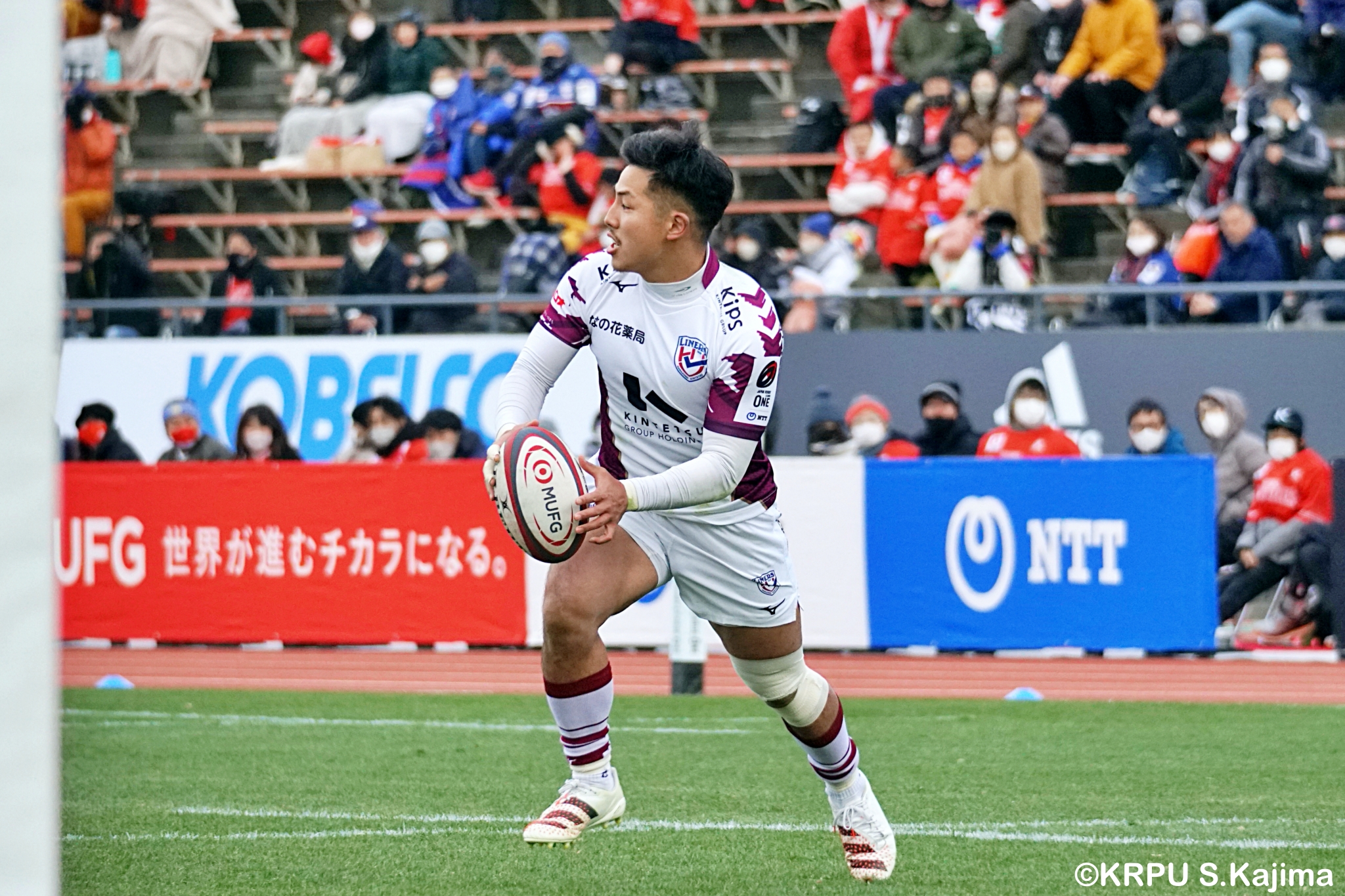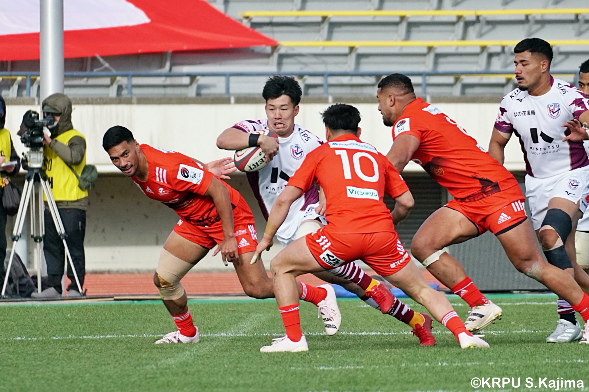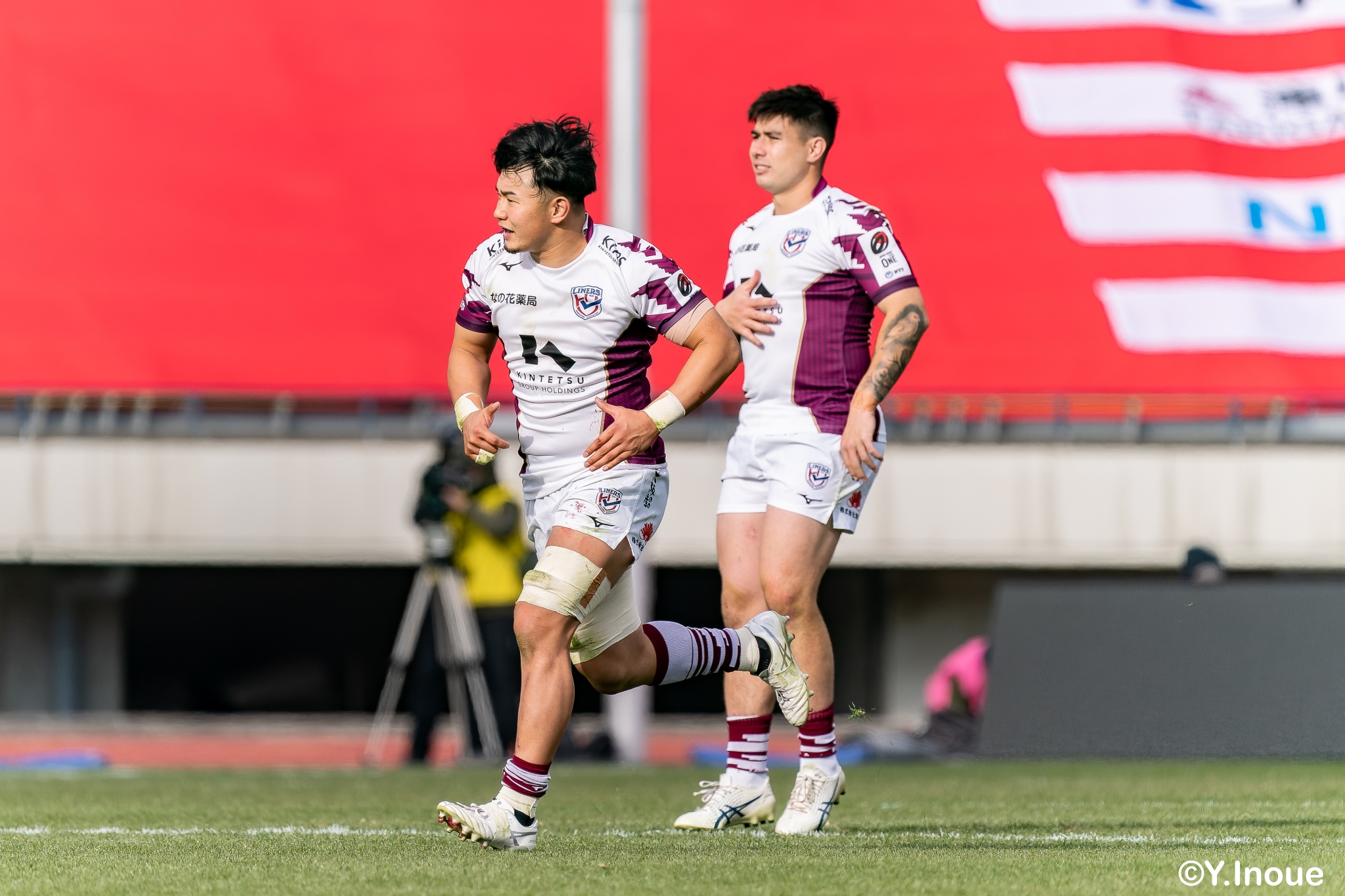 もう1本取られ、14-22で迎えた前半33分。相手のシンビンで数的有利な状況のライナーズは、パスを回して相手ディフェンスを翻弄します。