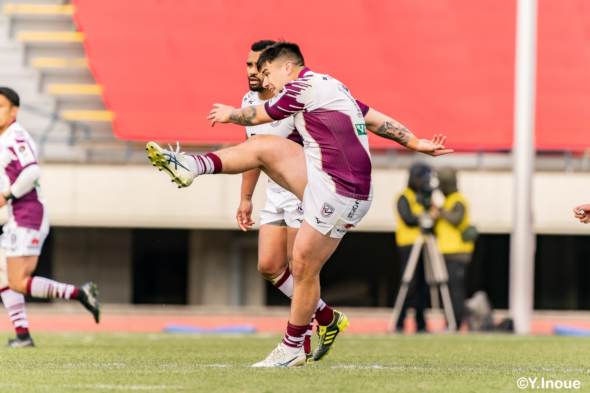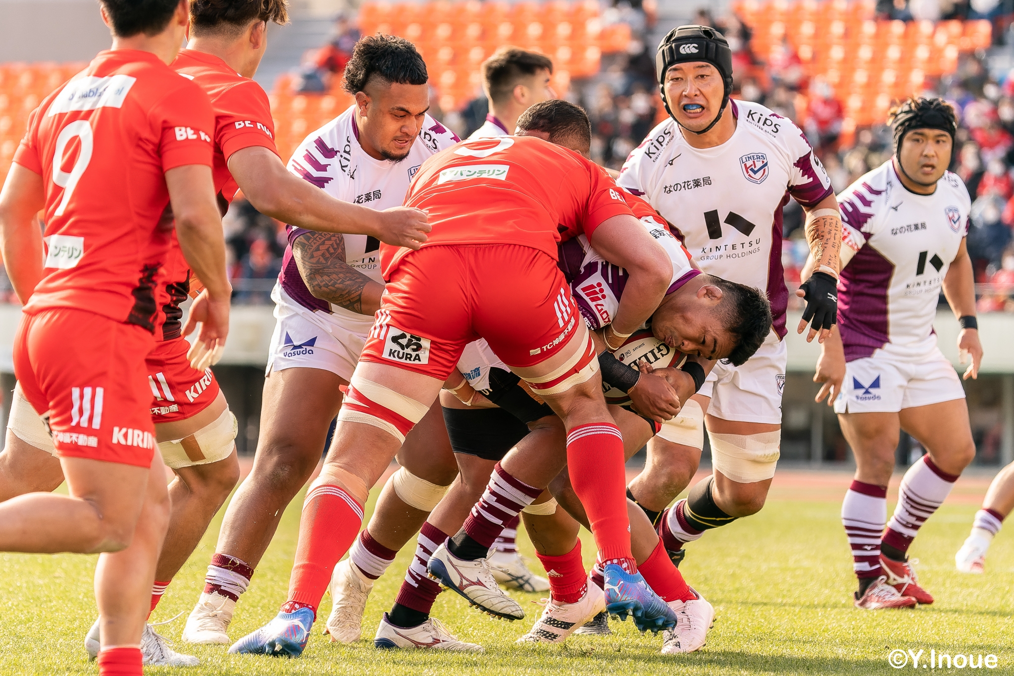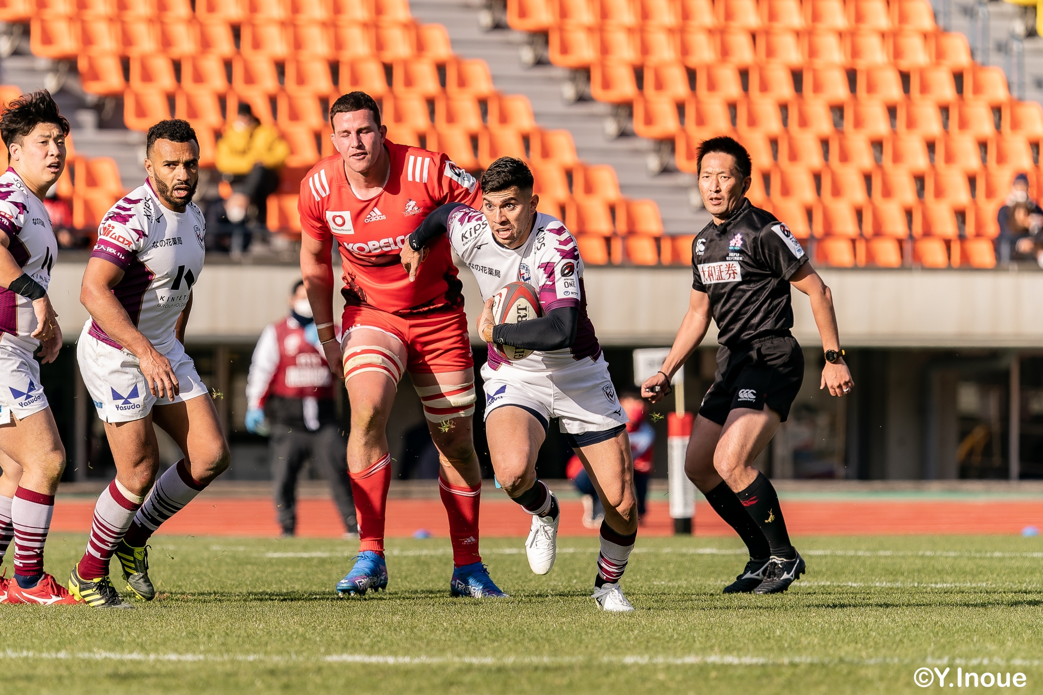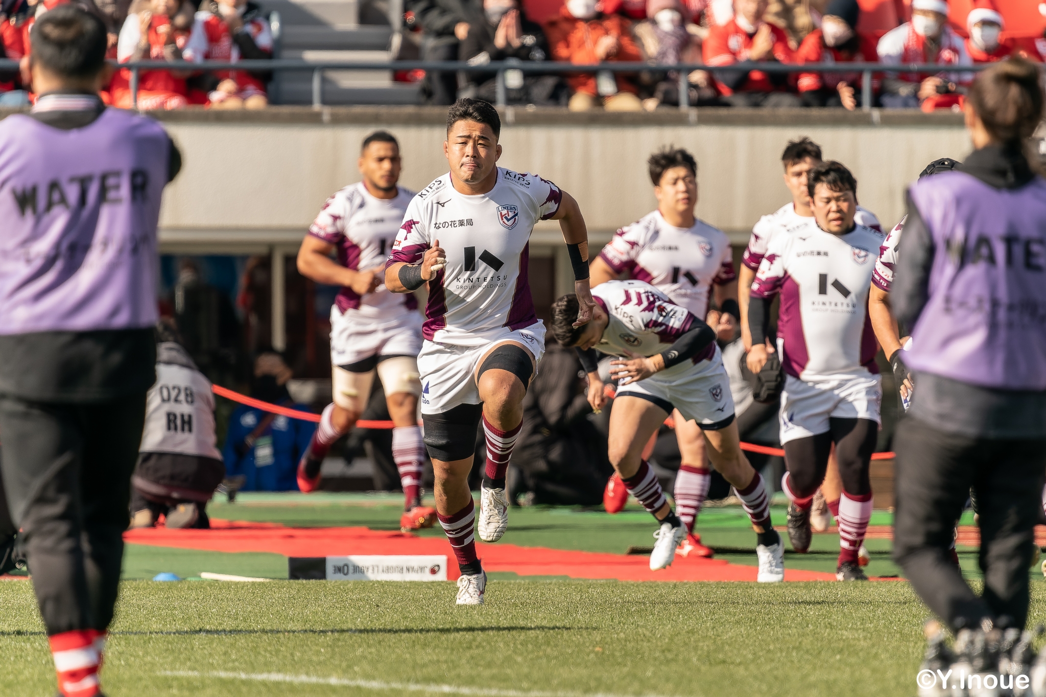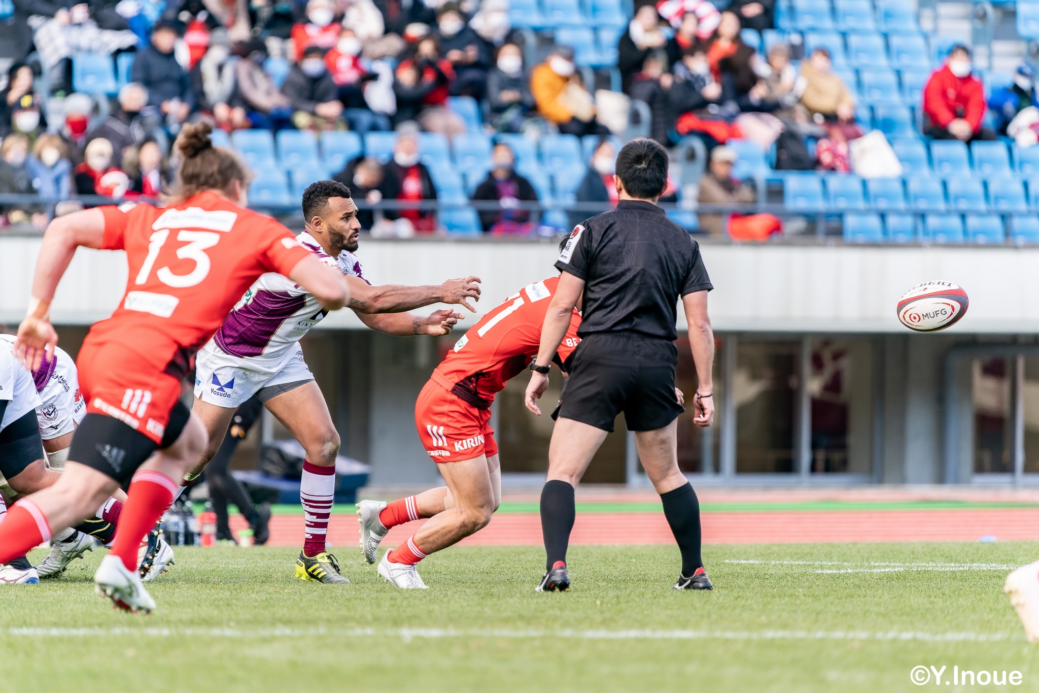 もう1本取られ、14-22で迎えた前半33分。相手のシンビンで数的有利な状況のライナーズは、パスを回して相手ディフェンスを翻弄します。