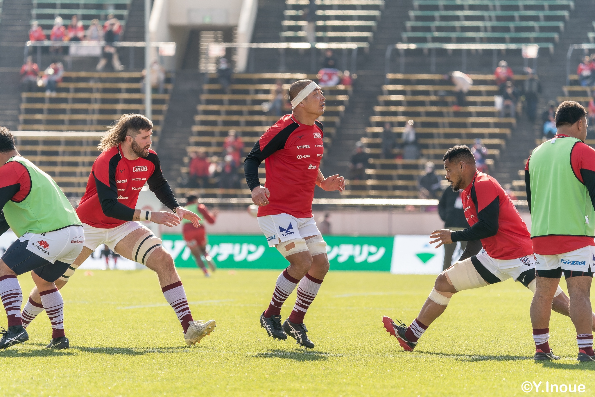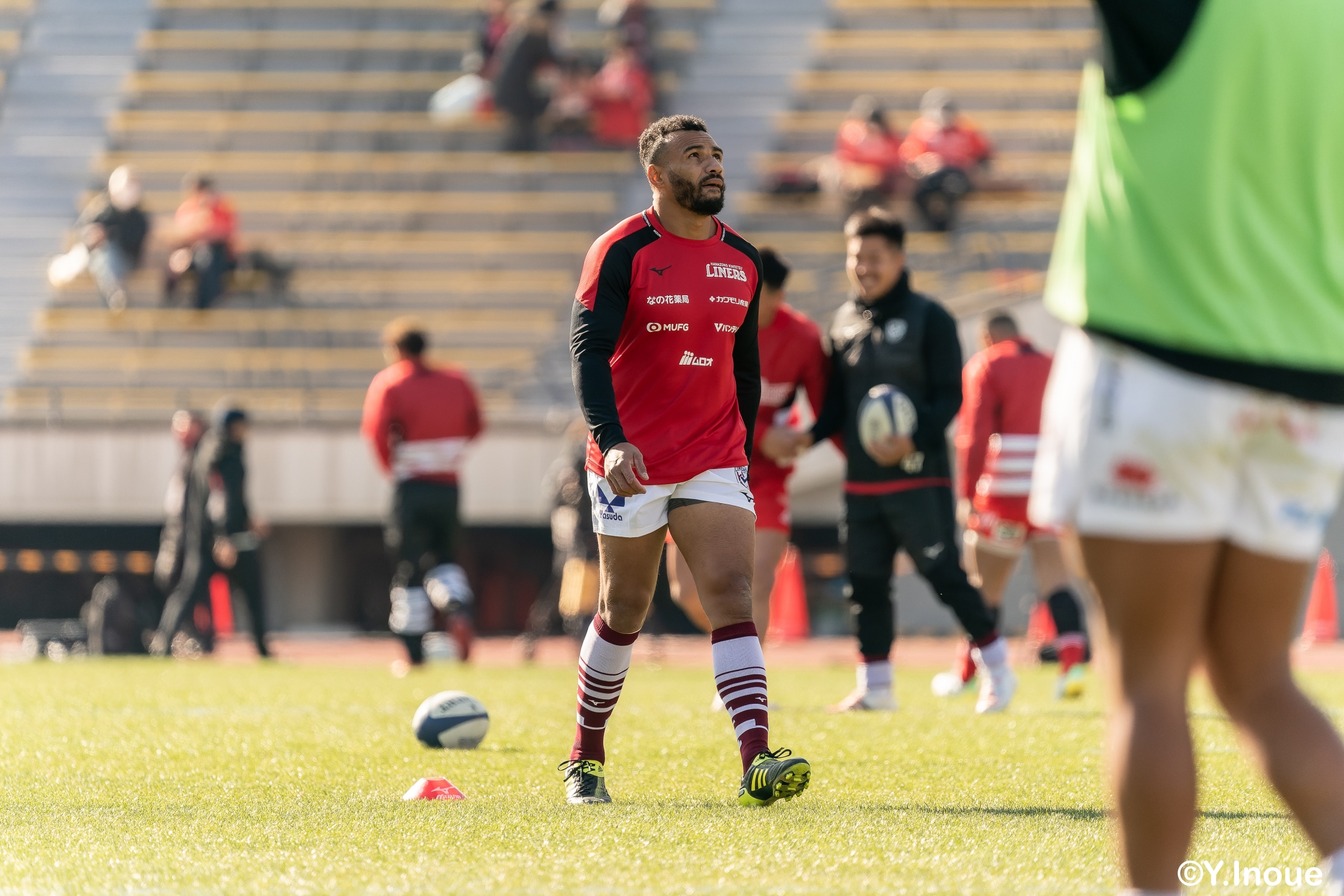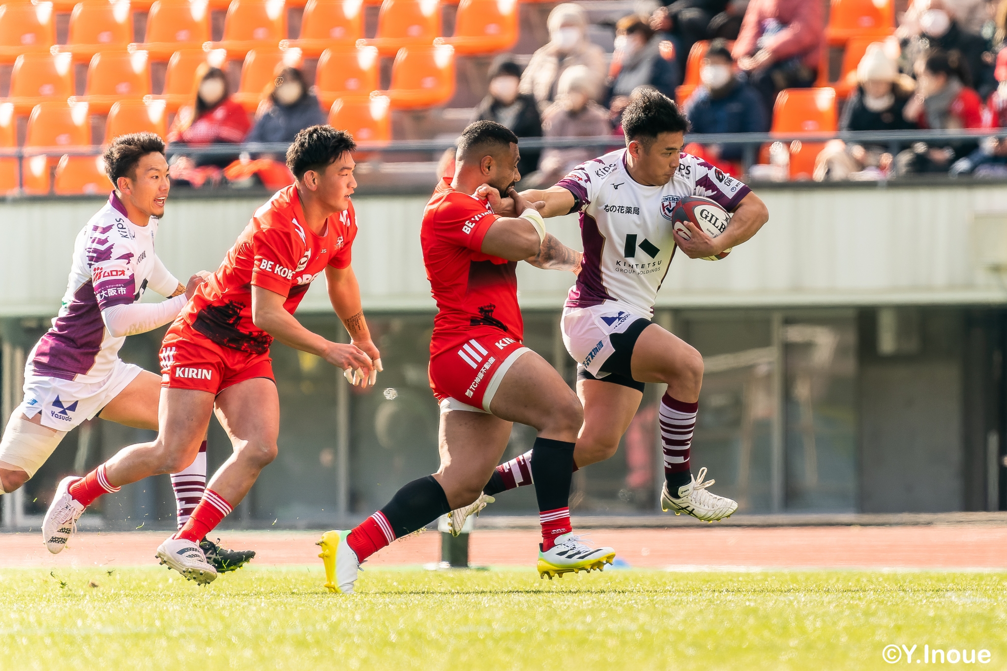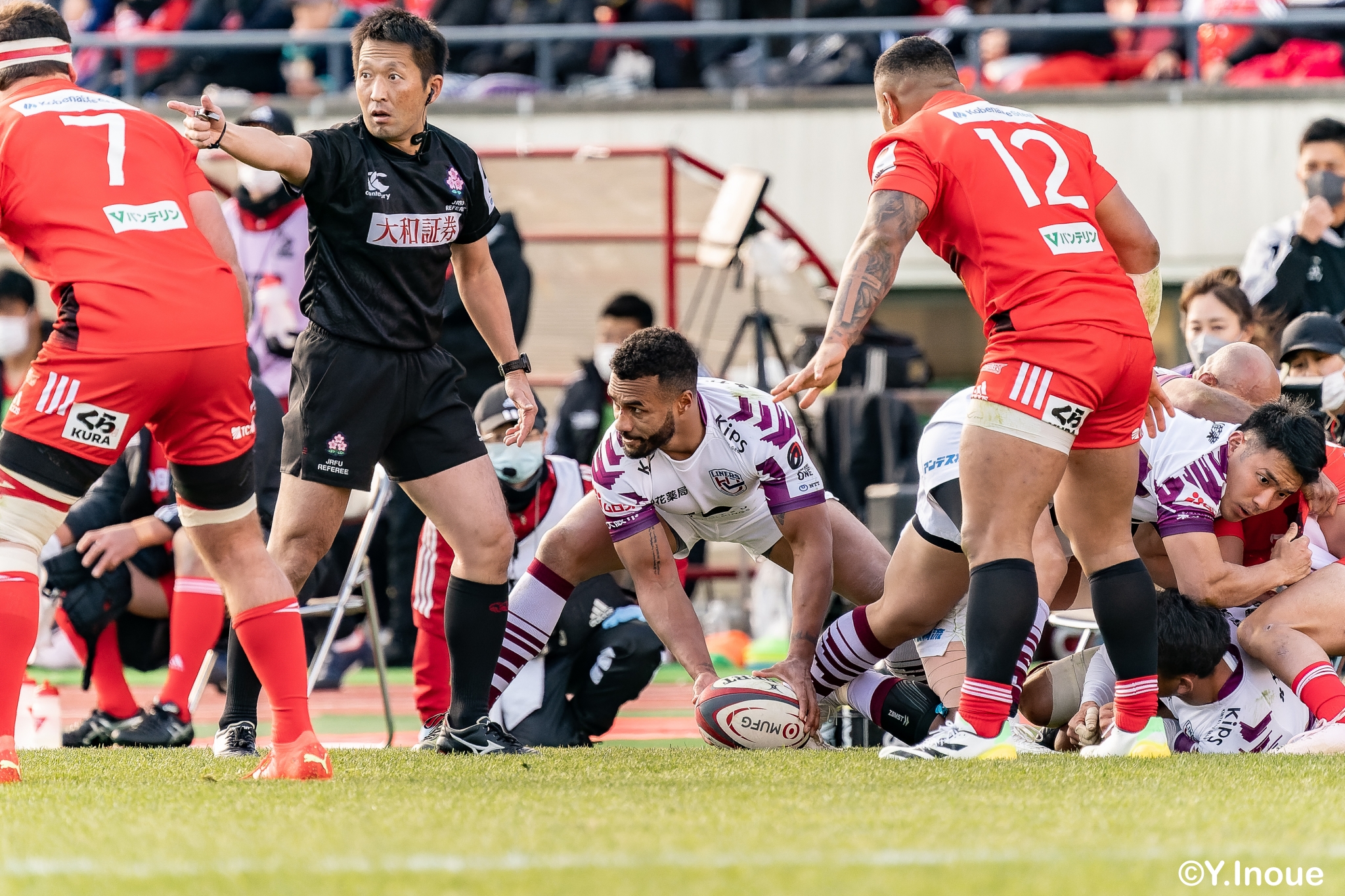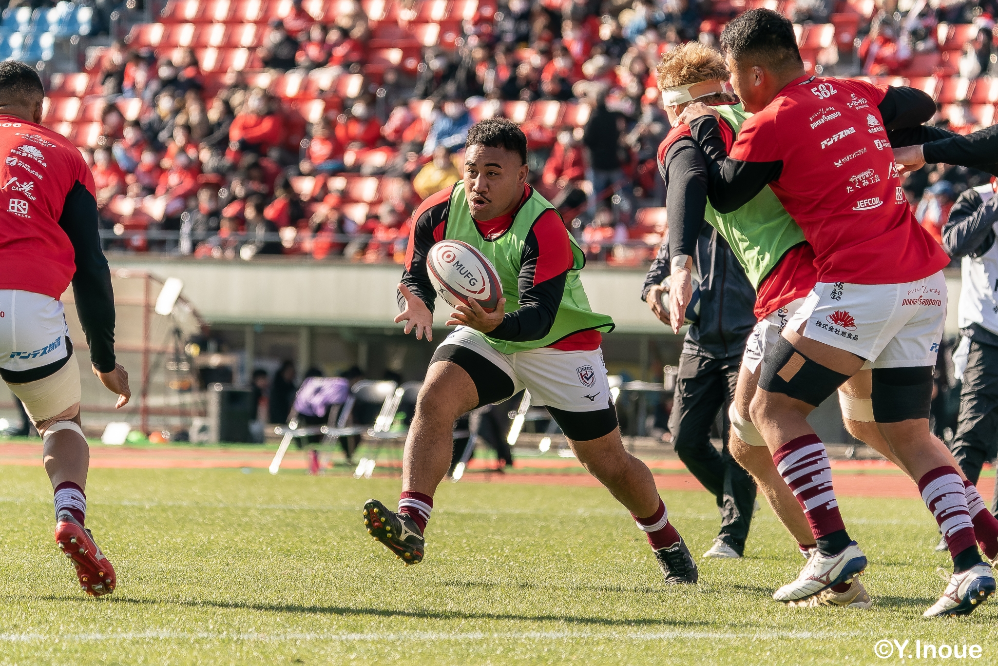 もう1本取られ、14-22で迎えた前半33分。相手のシンビンで数的有利な状況のライナーズは、パスを回して相手ディフェンスを翻弄します。