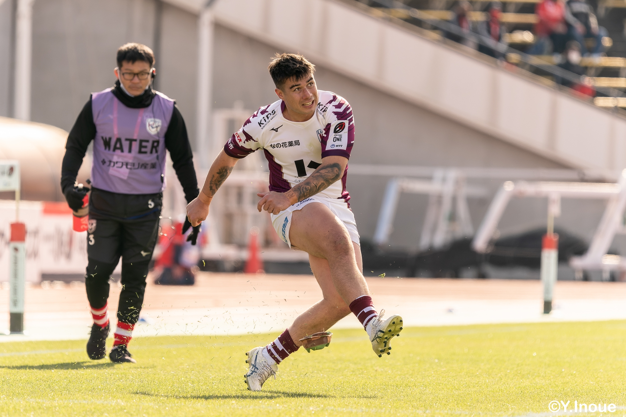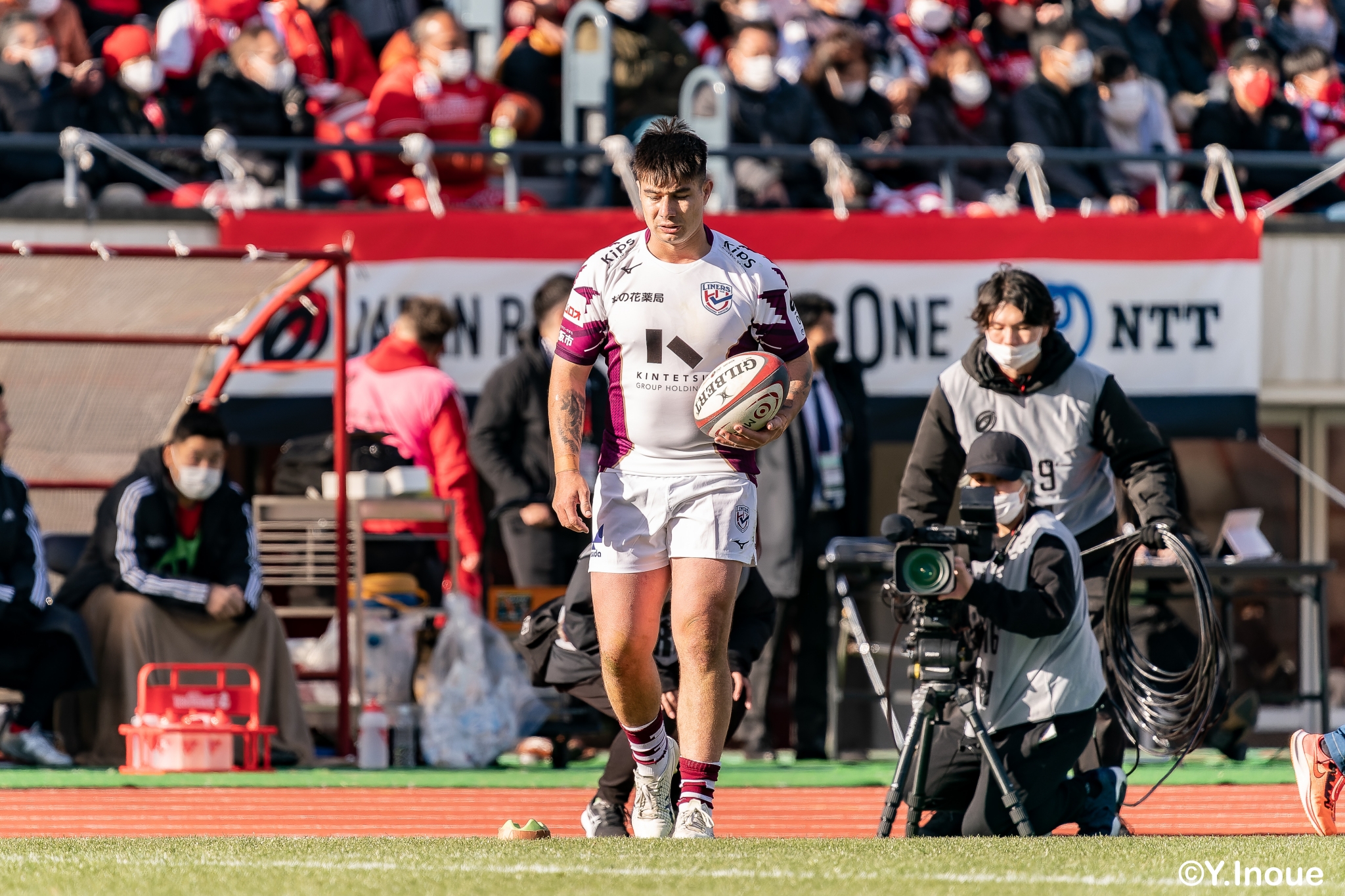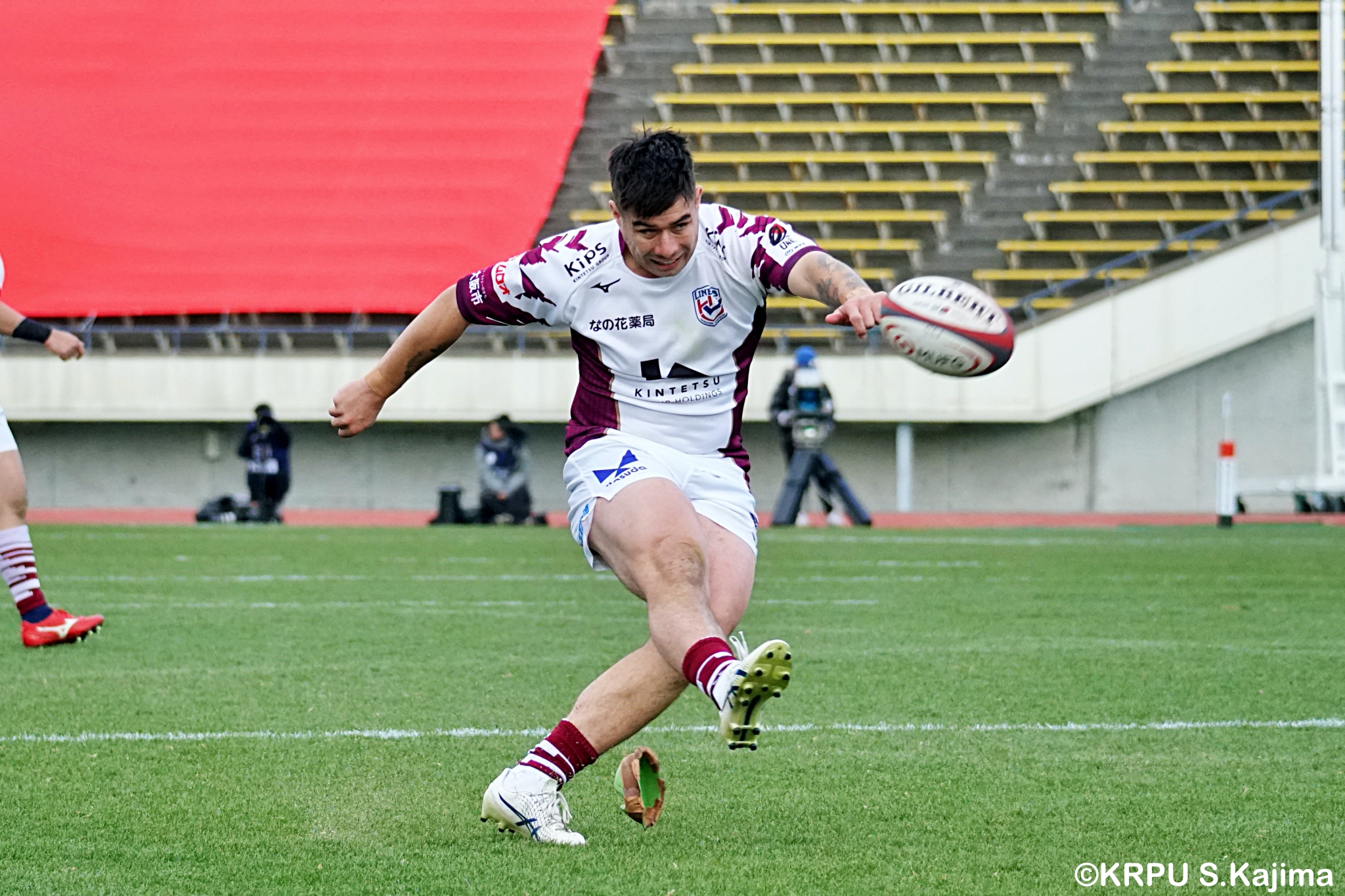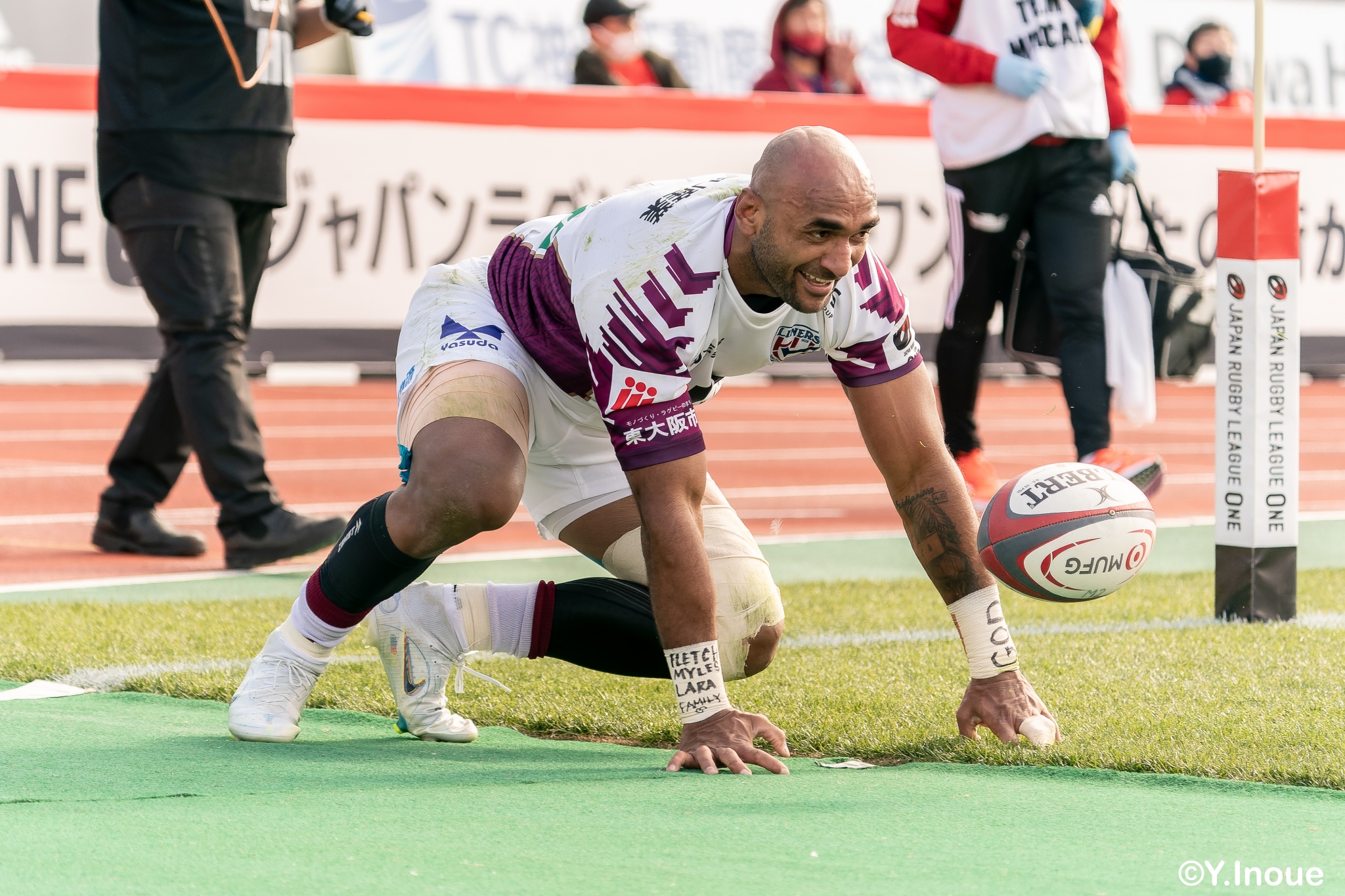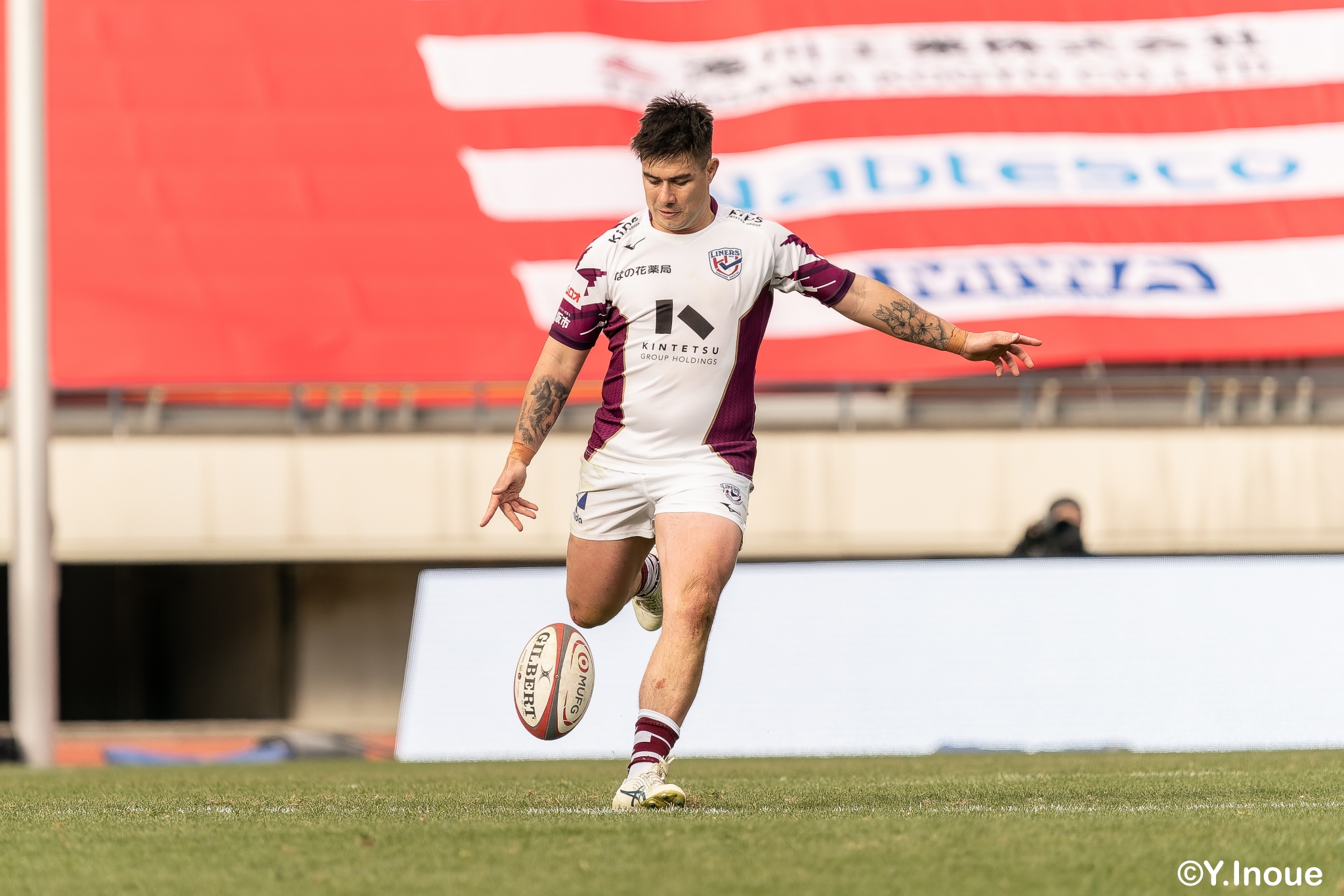 もう1本取られ、14-22で迎えた前半33分。相手のシンビンで数的有利な状況のライナーズは、パスを回して相手ディフェンスを翻弄します。