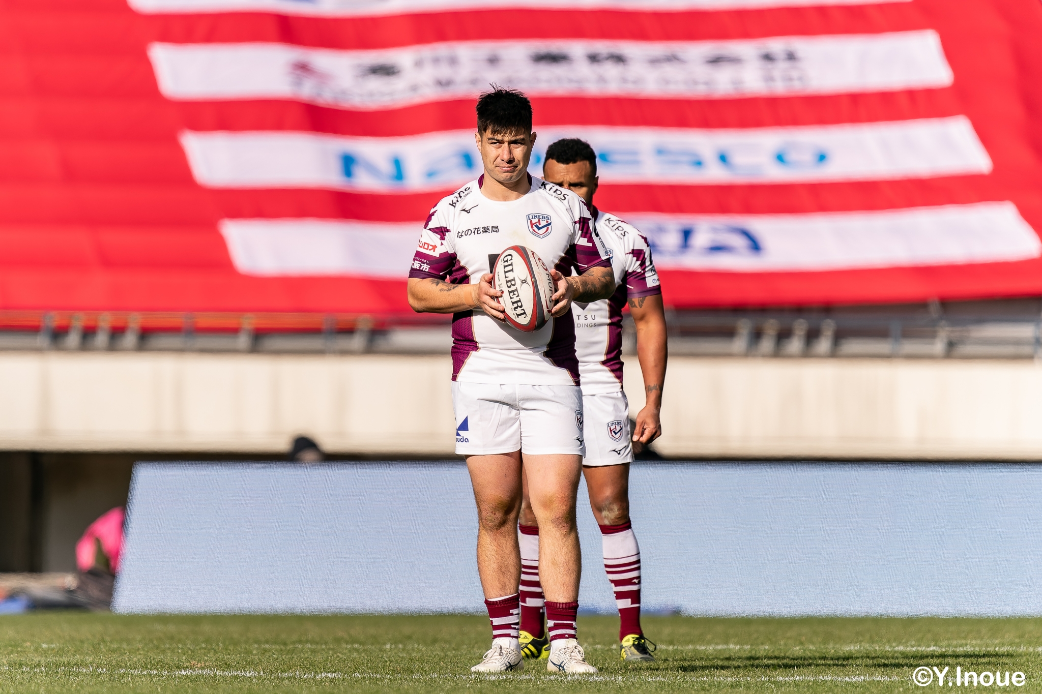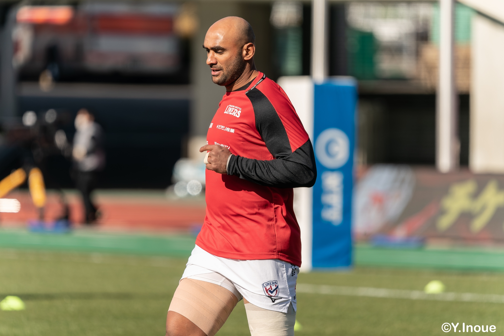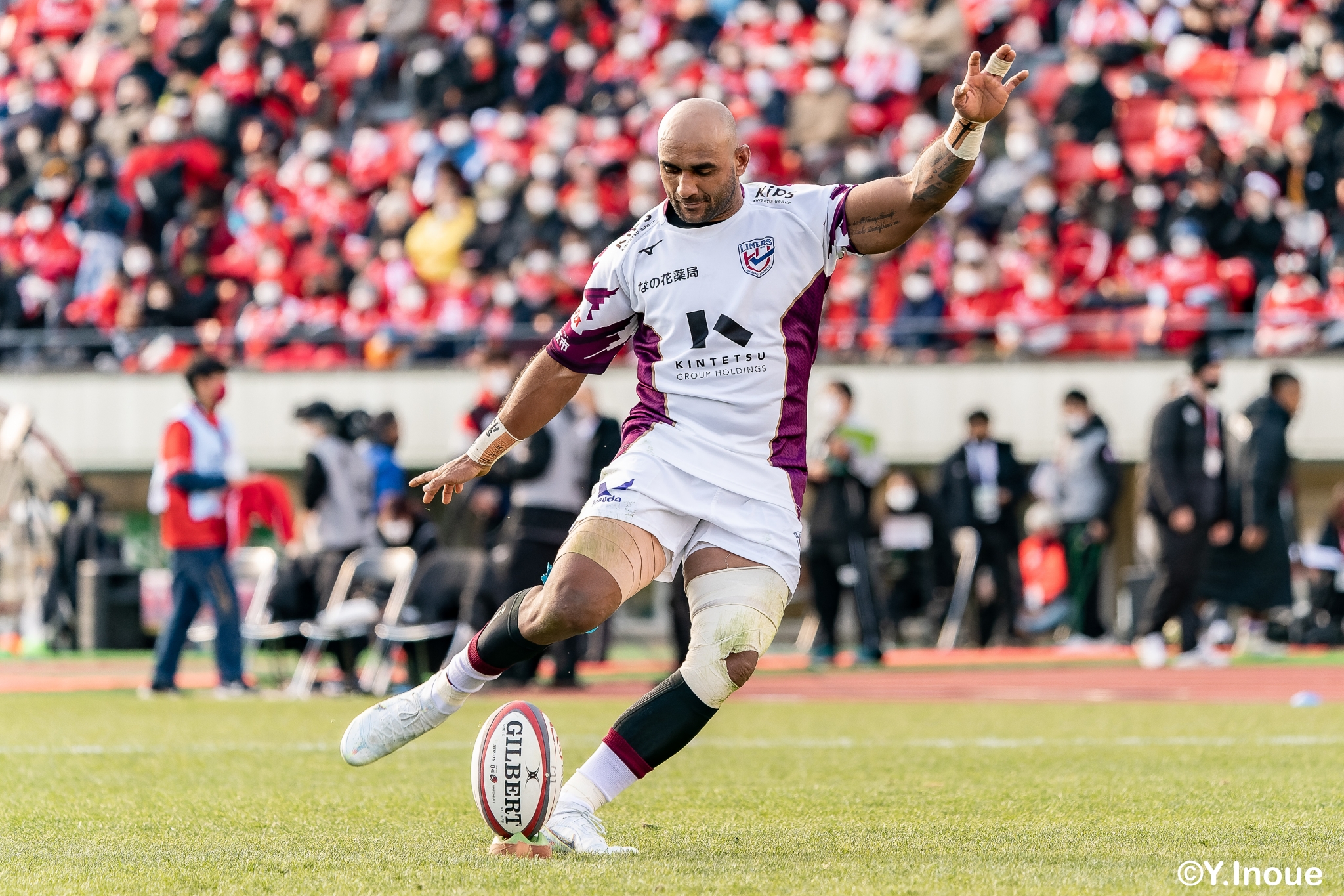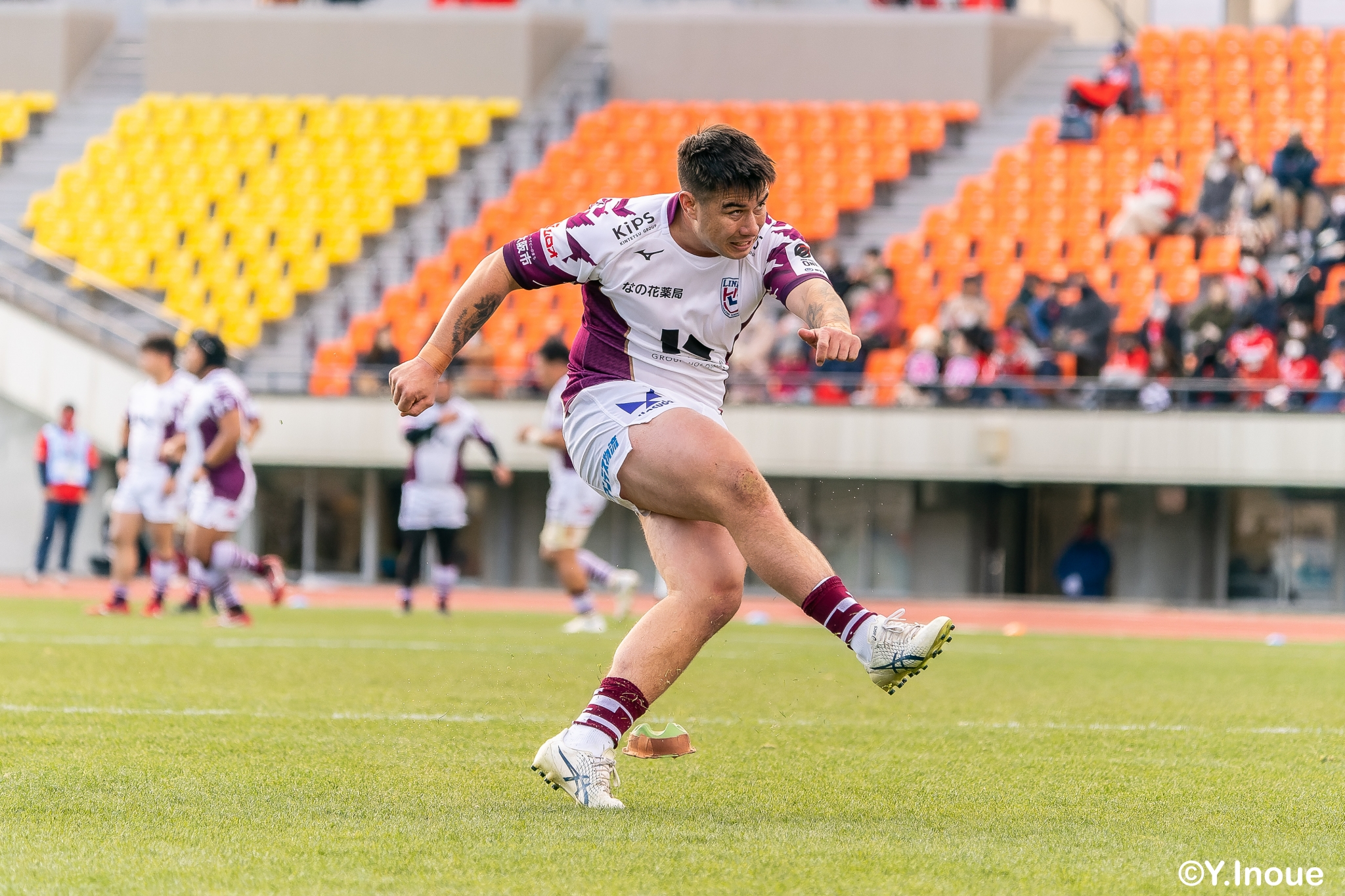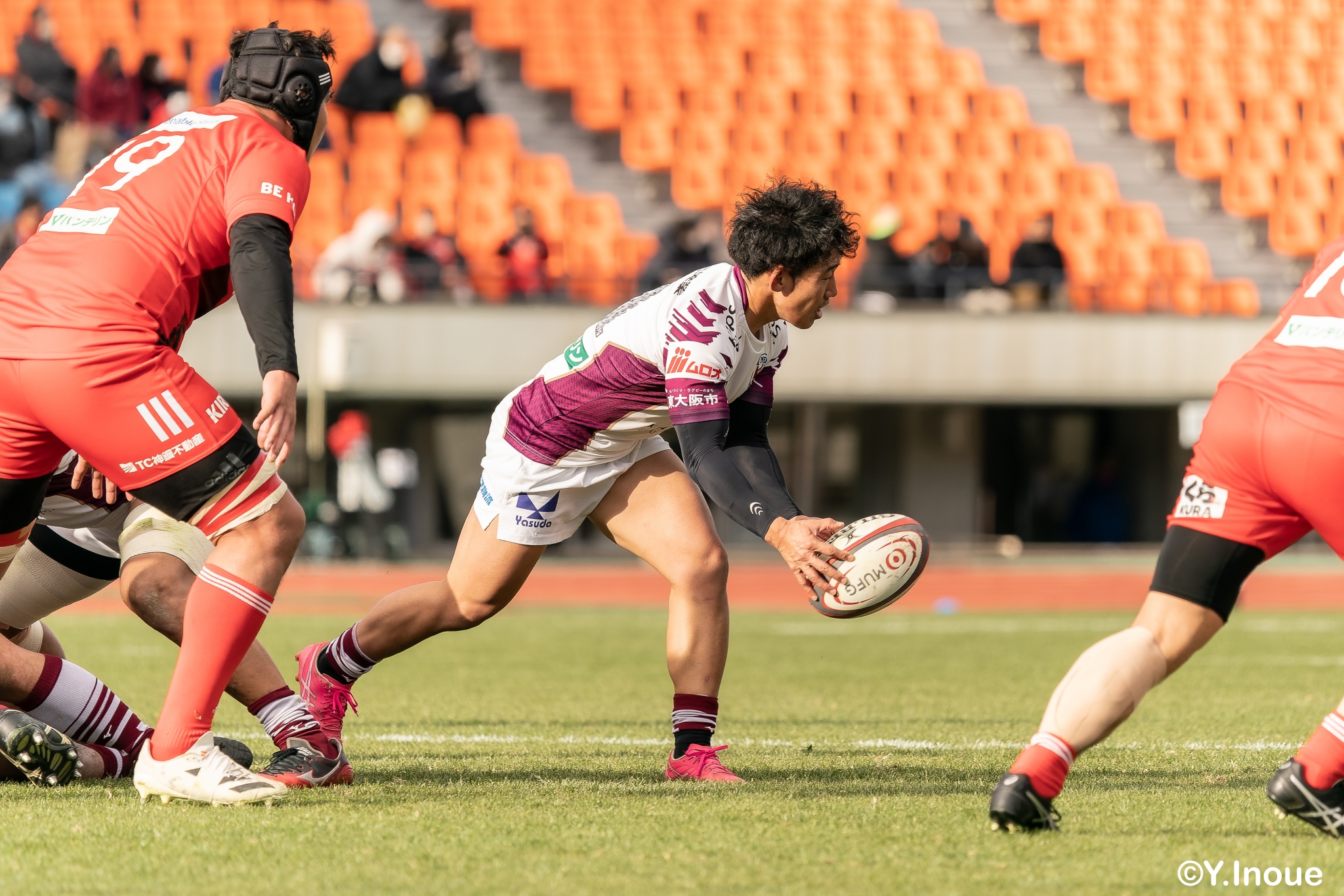 もう1本取られ、14-22で迎えた前半33分。相手のシンビンで数的有利な状況のライナーズは、パスを回して相手ディフェンスを翻弄します。