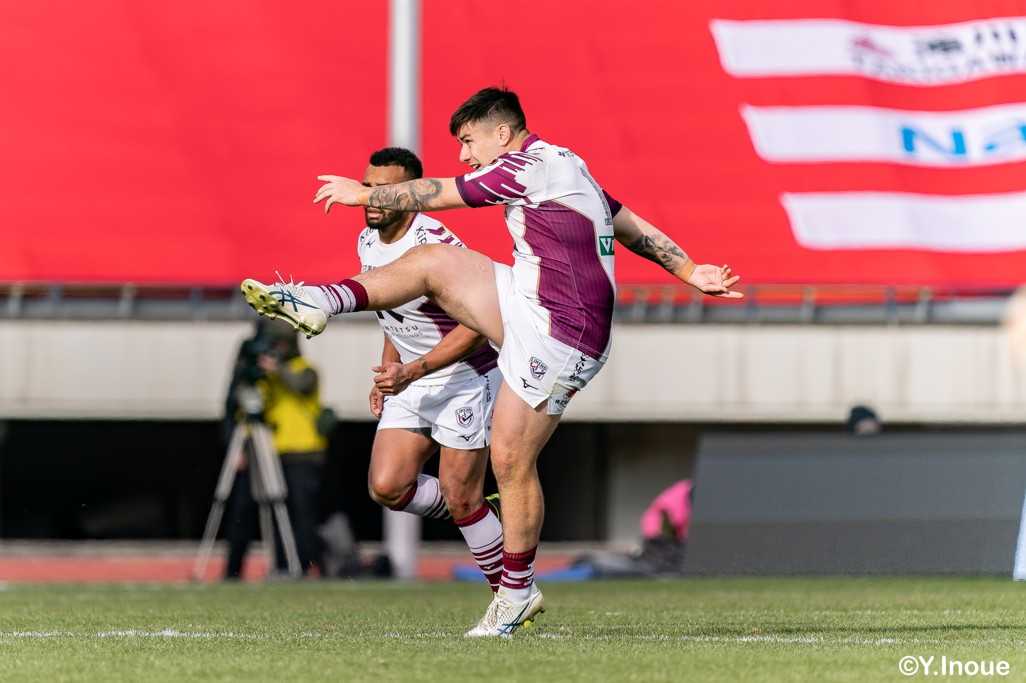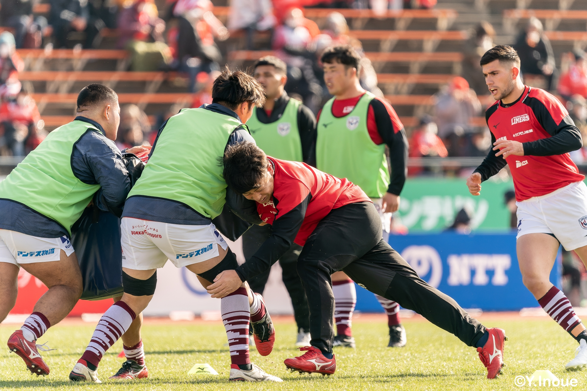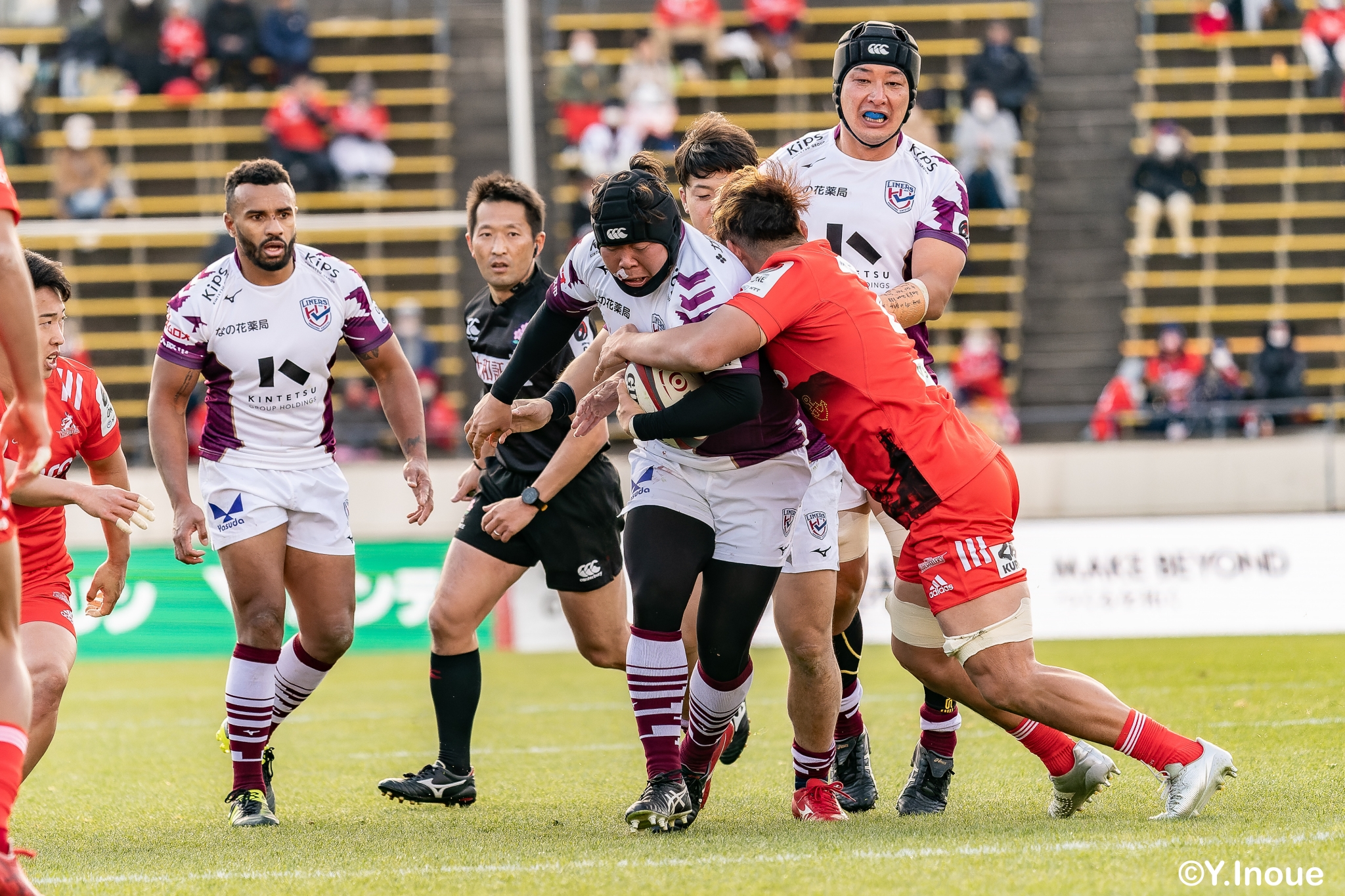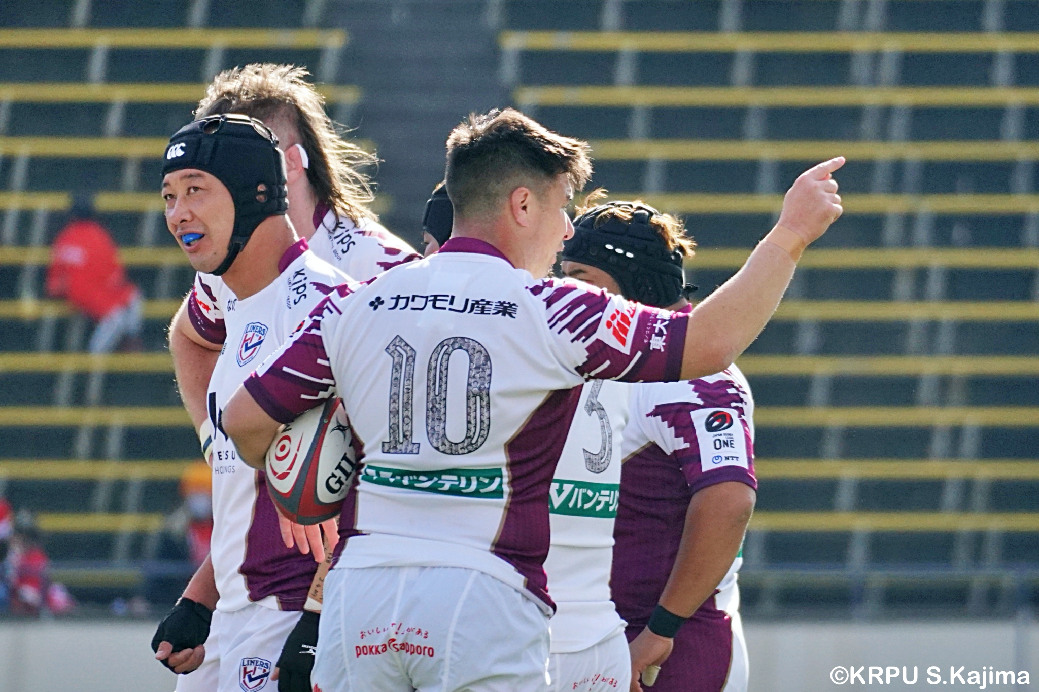 ライナーズは相手の反則を誘い前進すると、前半早々にチャンスがやってきます。