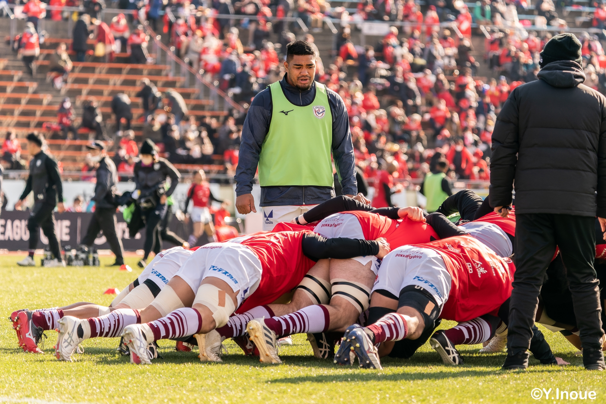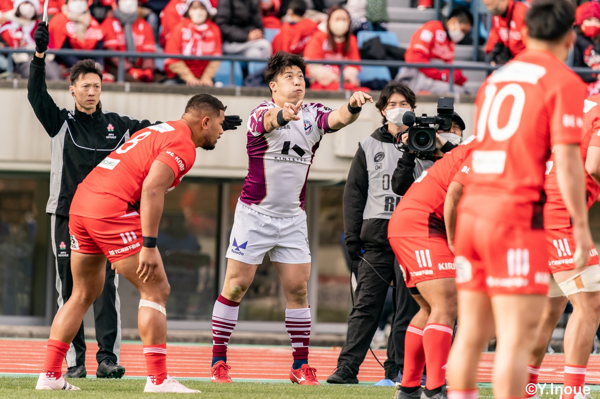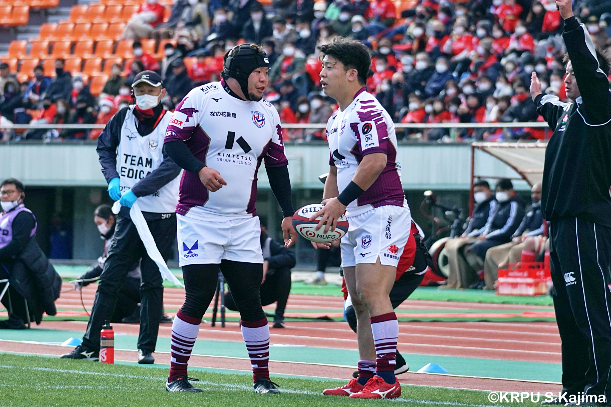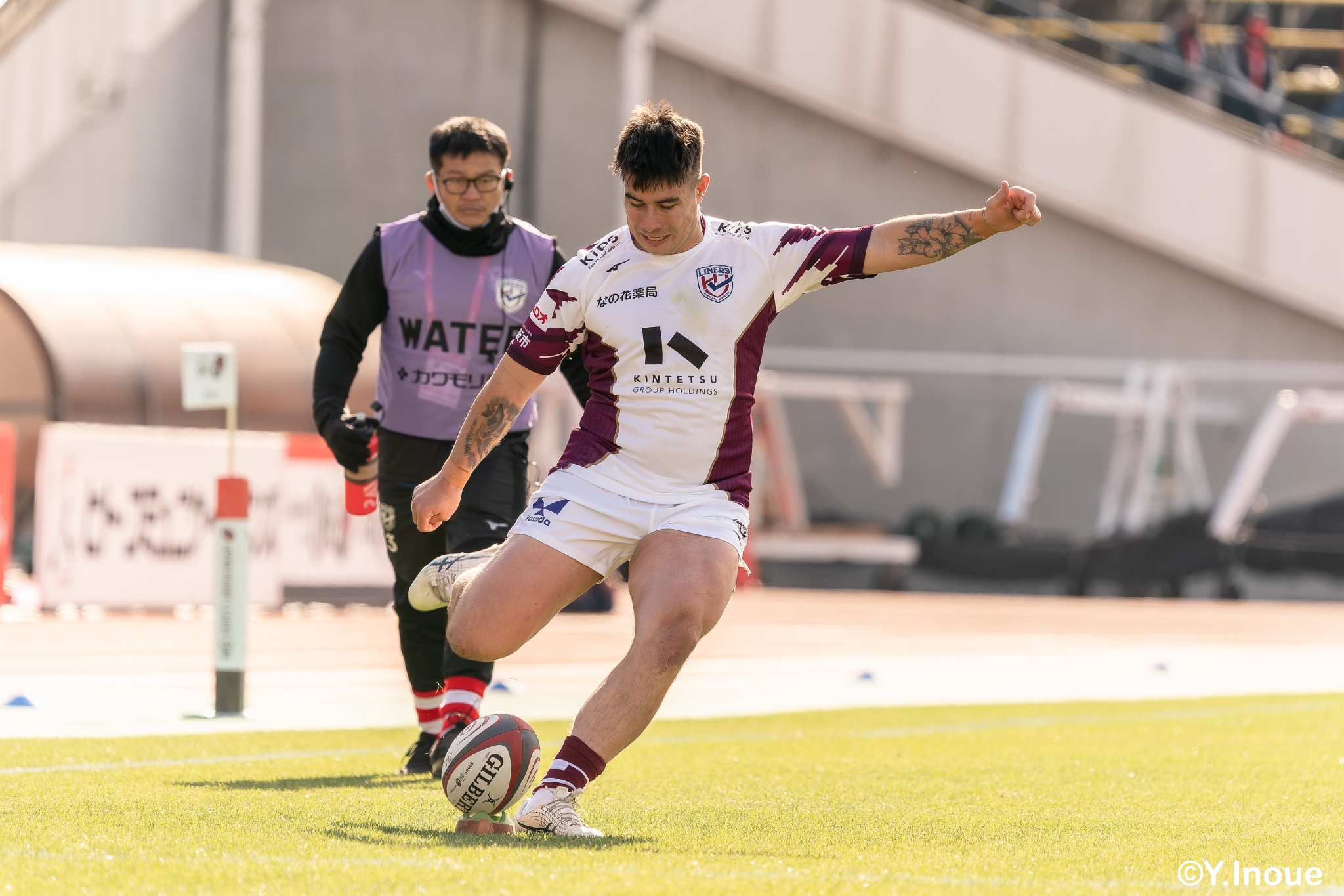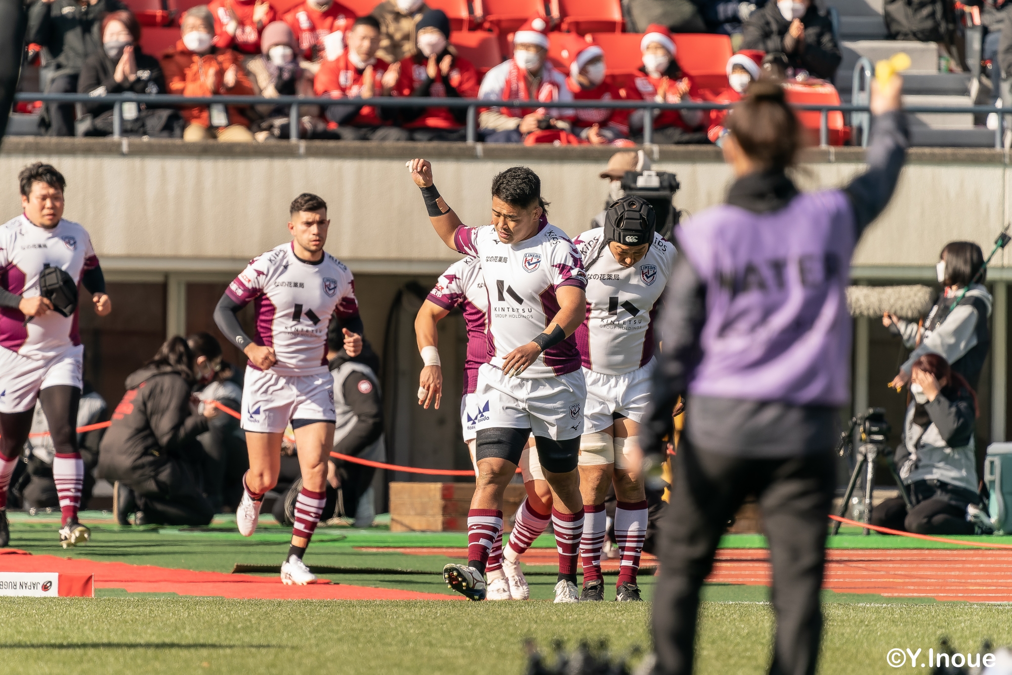 ライナーズは相手の反則を誘い前進すると、前半早々にチャンスがやってきます。