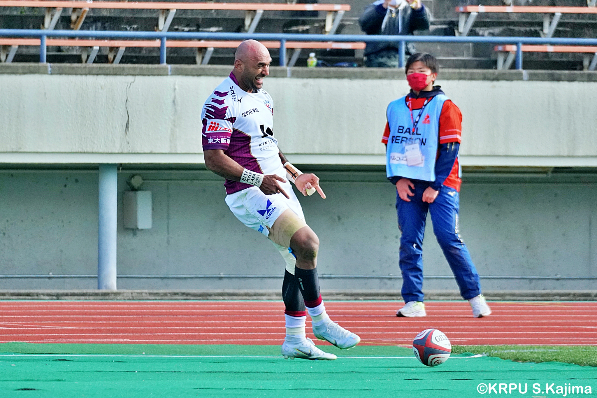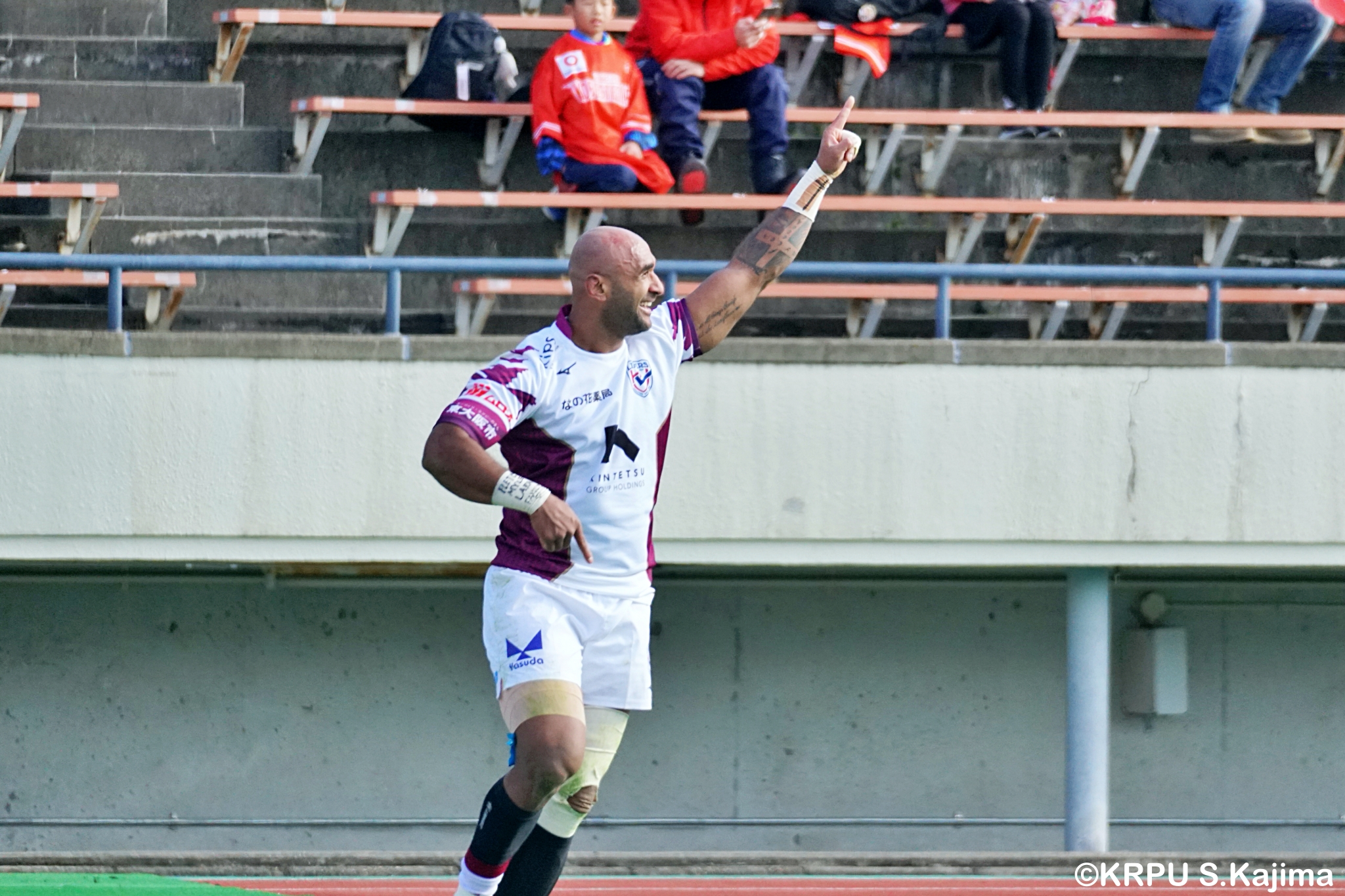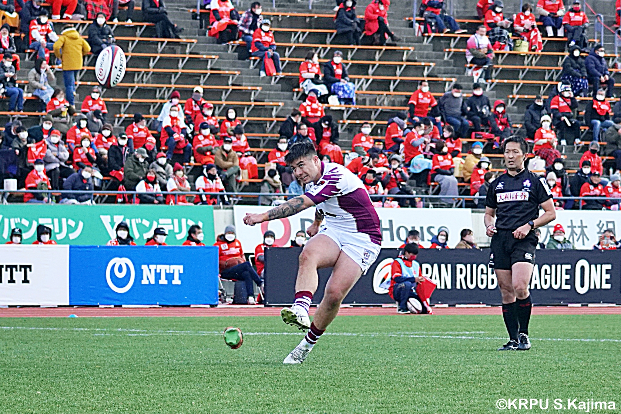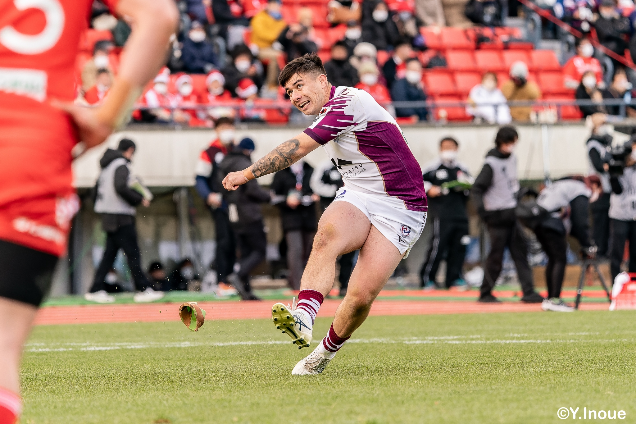 リザーブで入っていた21人羅が裏に蹴ると、追ったジョシュアが中央にトライを決めます。バショップのG成功で36-58。