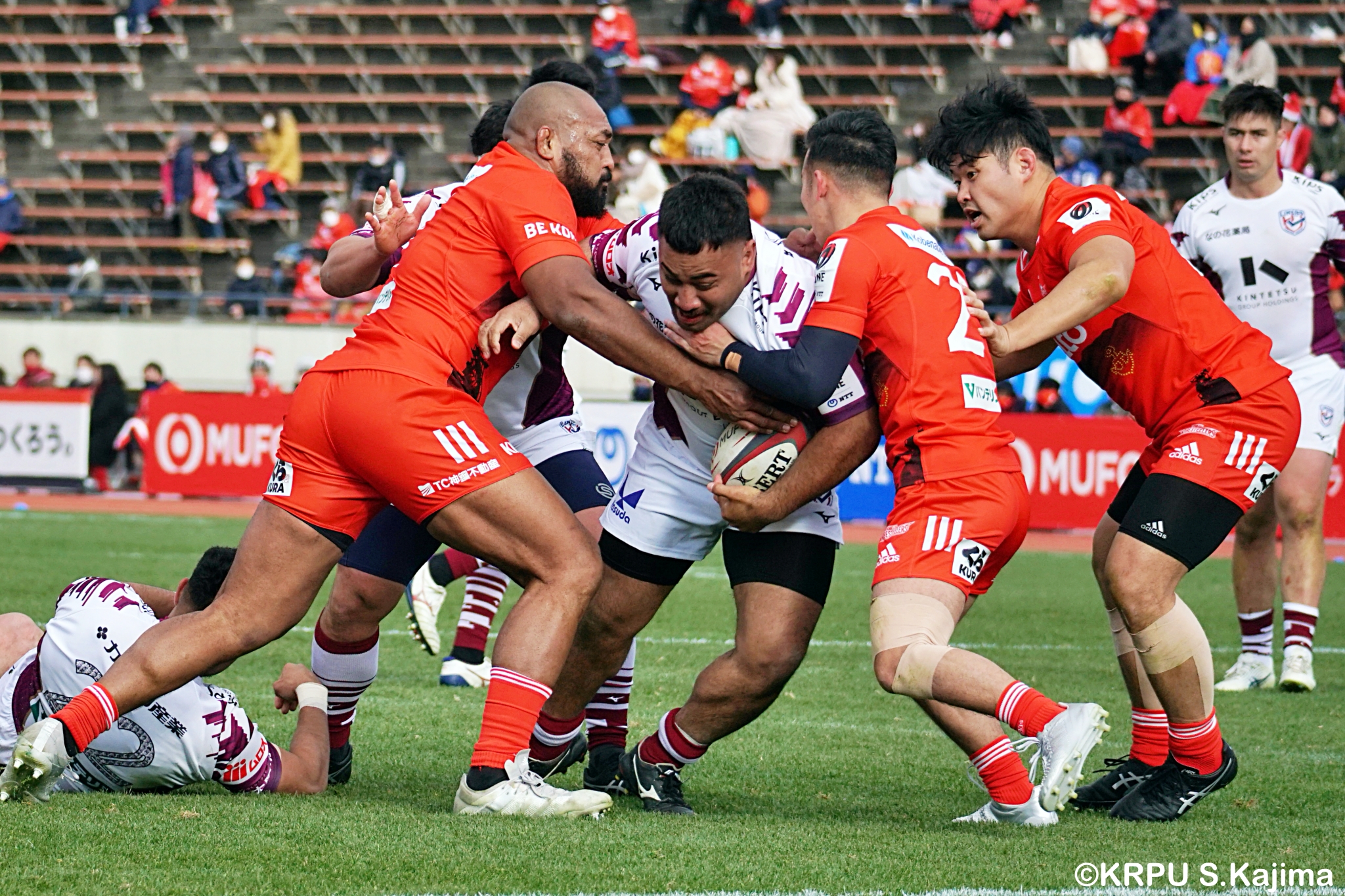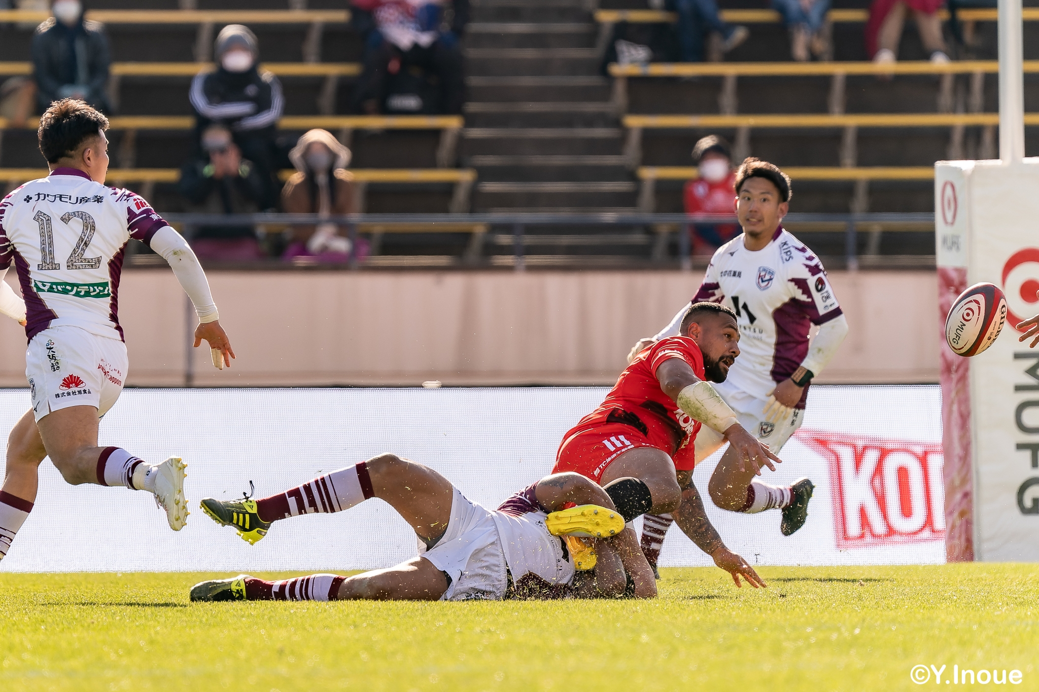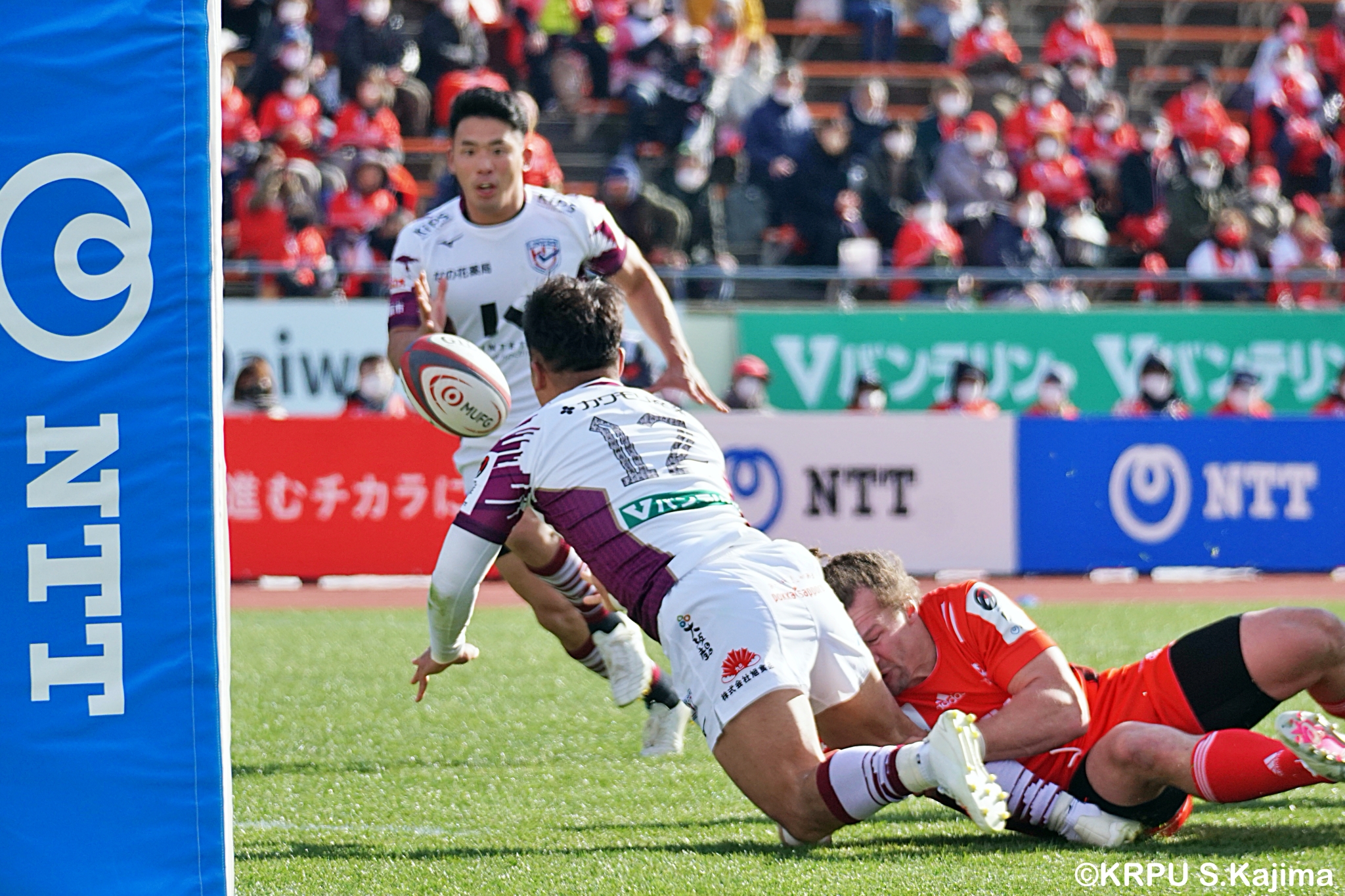 後半12分にゲニアからのロングパスを受け取ったマシレワがステップを切ってトライをあげ、なんとか食らいつきますが、この日の課題はやはりディフェンス。相手の前進を止められず、3トライを奪われます。