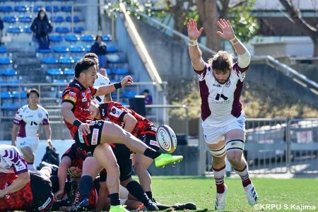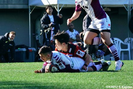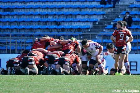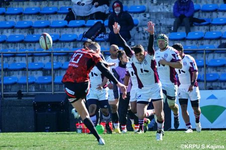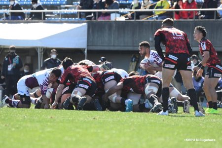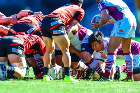 少しずつ後退した前半16分、ゴール前相手ボールのラインアウトからモールで押し込まれてトライを奪われると、さらに2トライを追加され28-0に。