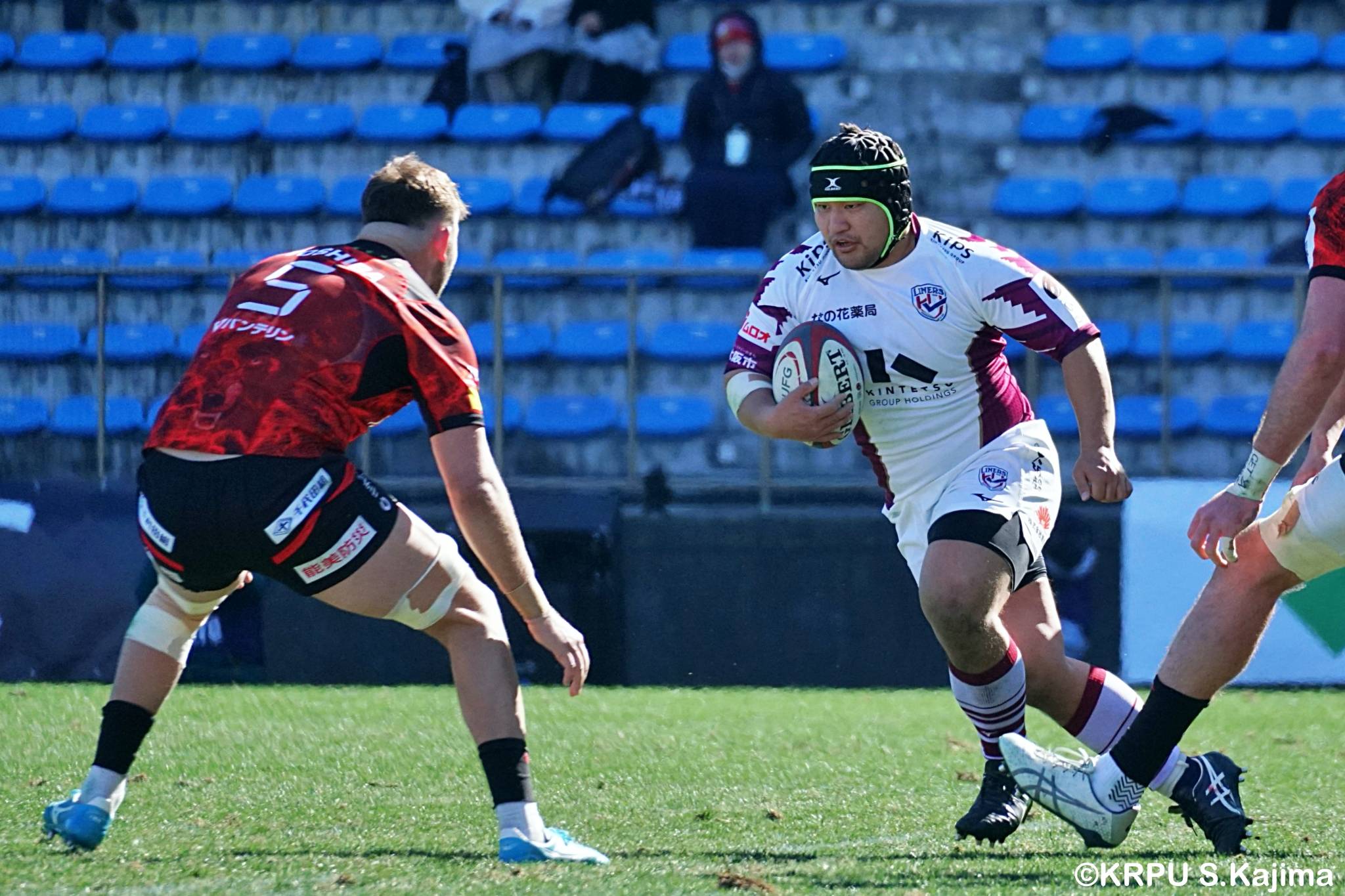 気持ちを切り替えて風下でチャンスを狙うライナーズですが、ラインアウトを取りきれず、フィジカルバトルでも劣勢。