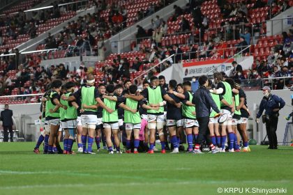 チャンスを得てもラインアウトでのミスから自分たちで崩れてしまい、得点できないまま3-26で前半終了。