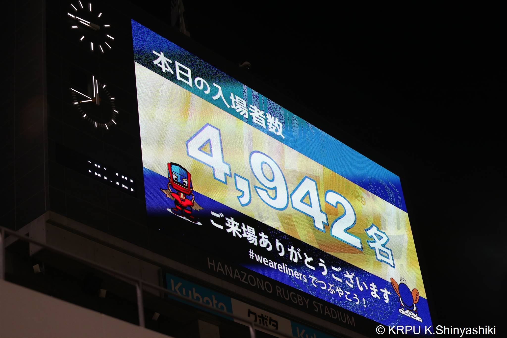 小雨の降る中会場には4942人が来場し、明かりの灯る「花園ハッピーパーク」をはじめ、ナイトゲームの雰囲気を楽しんでいただきました。