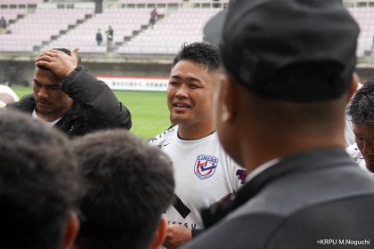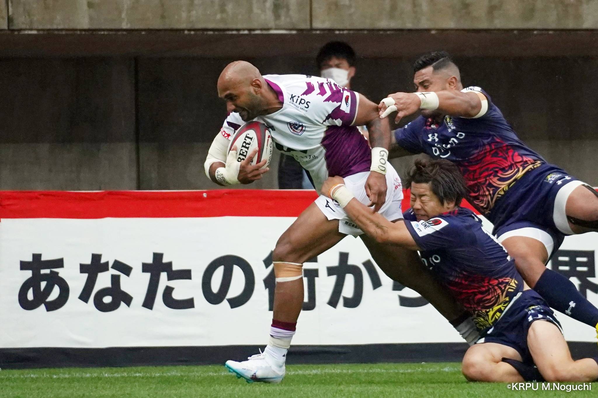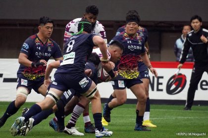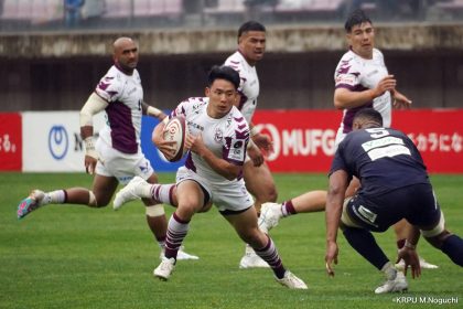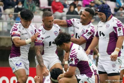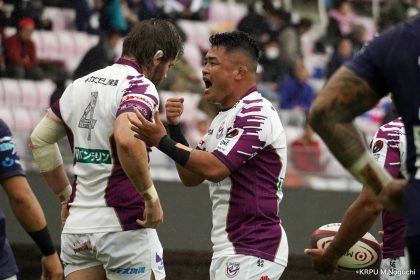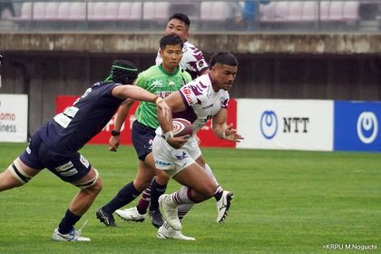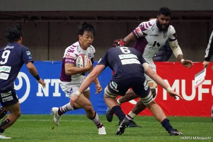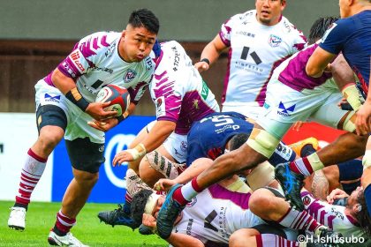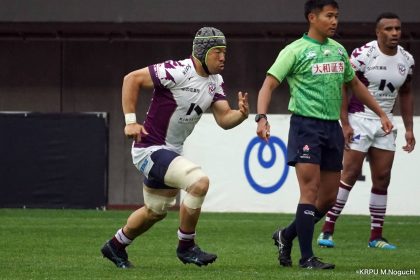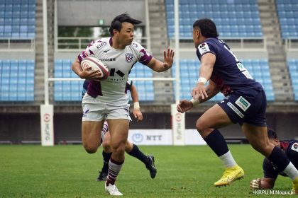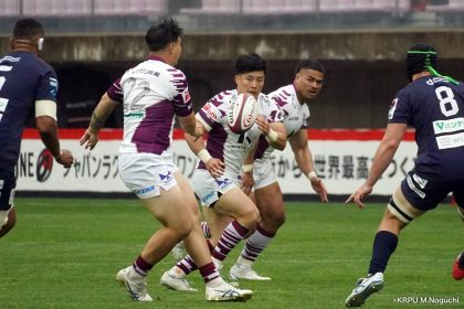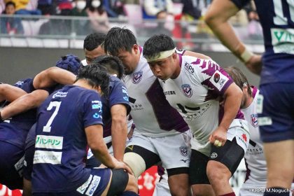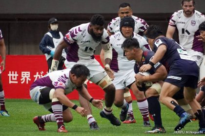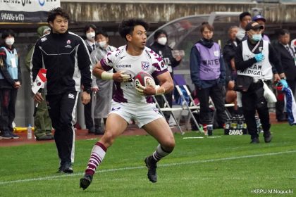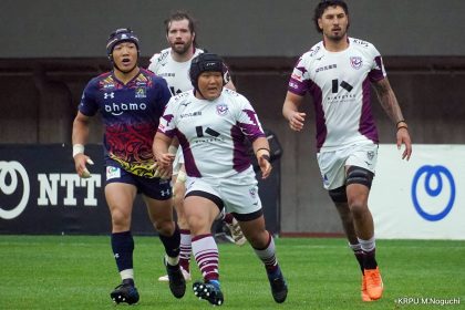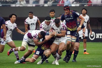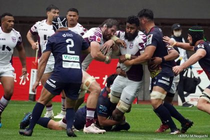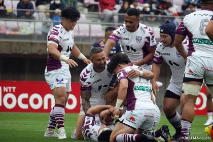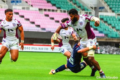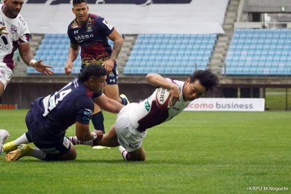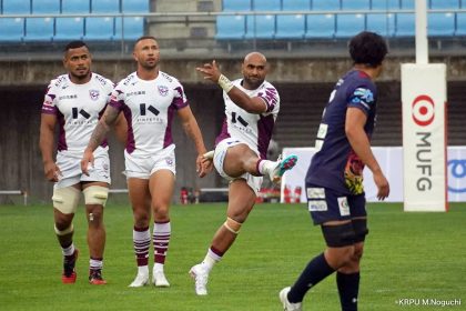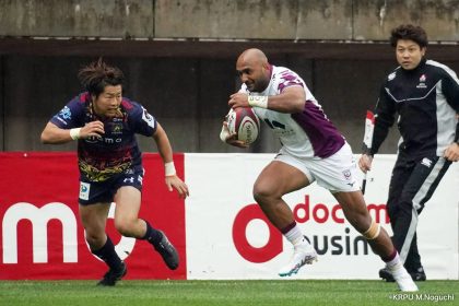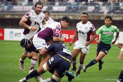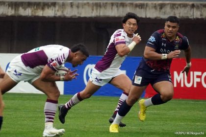 その後キックをチャージされ1トライを献上するものの、焦ることなく自分たちのプレーに集中。相手の反則を誘い、D-Rocksに3枚目のシンビンが適用されさらに優位に。