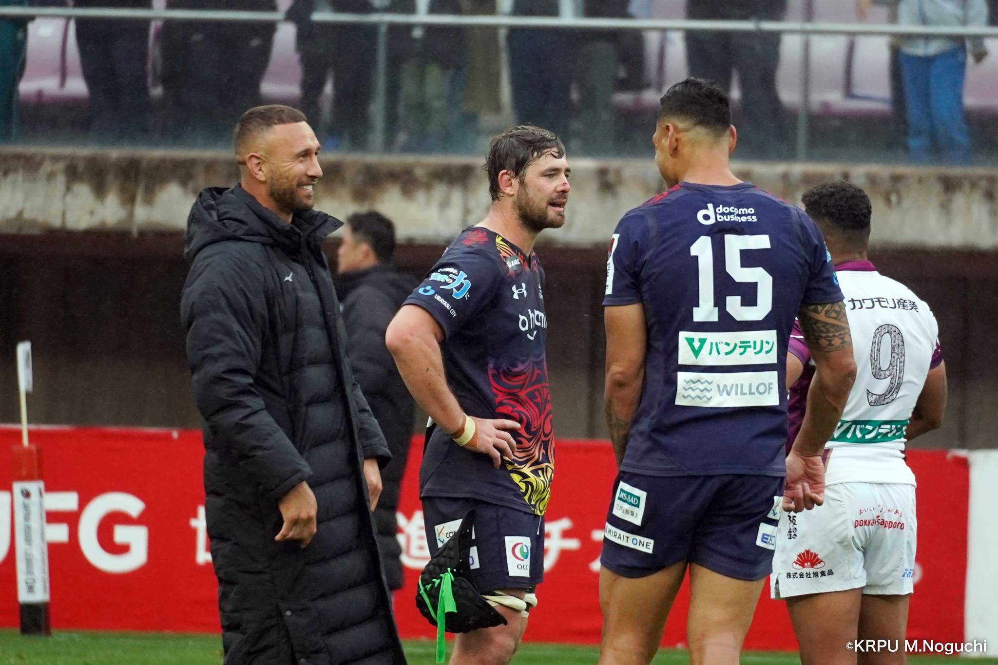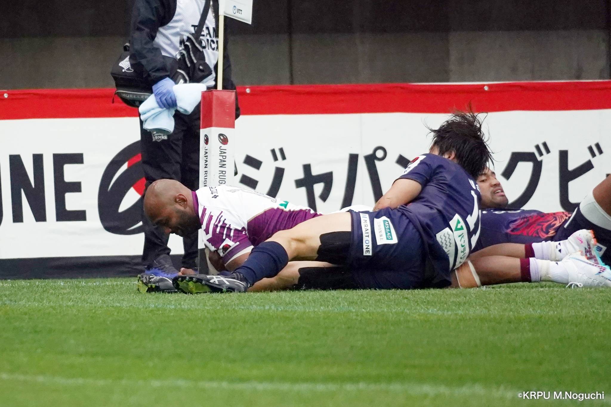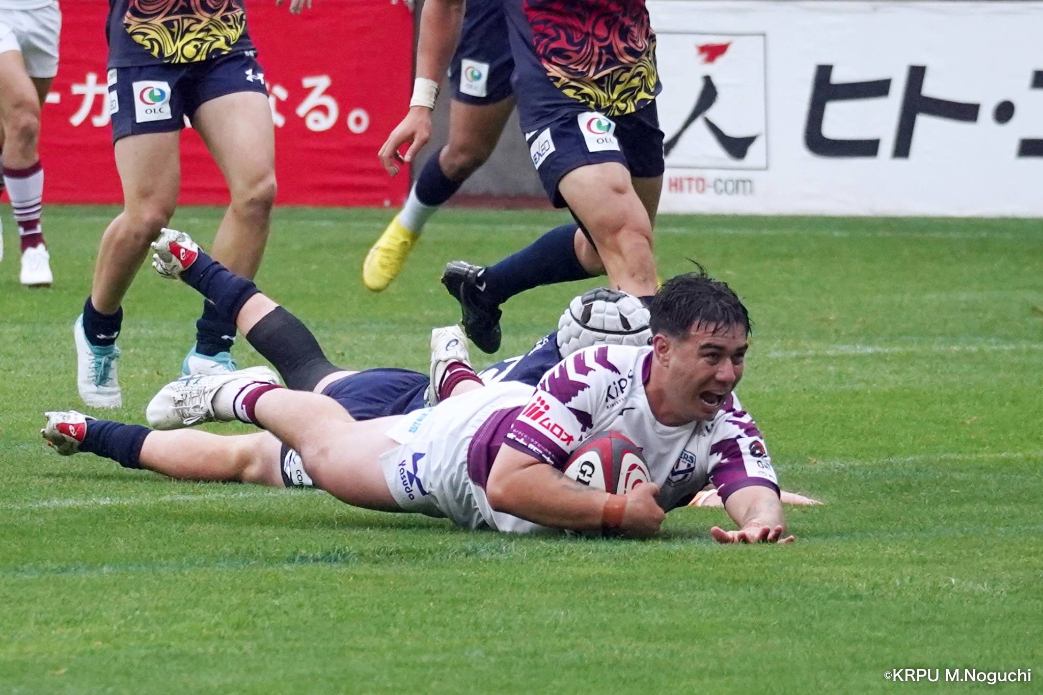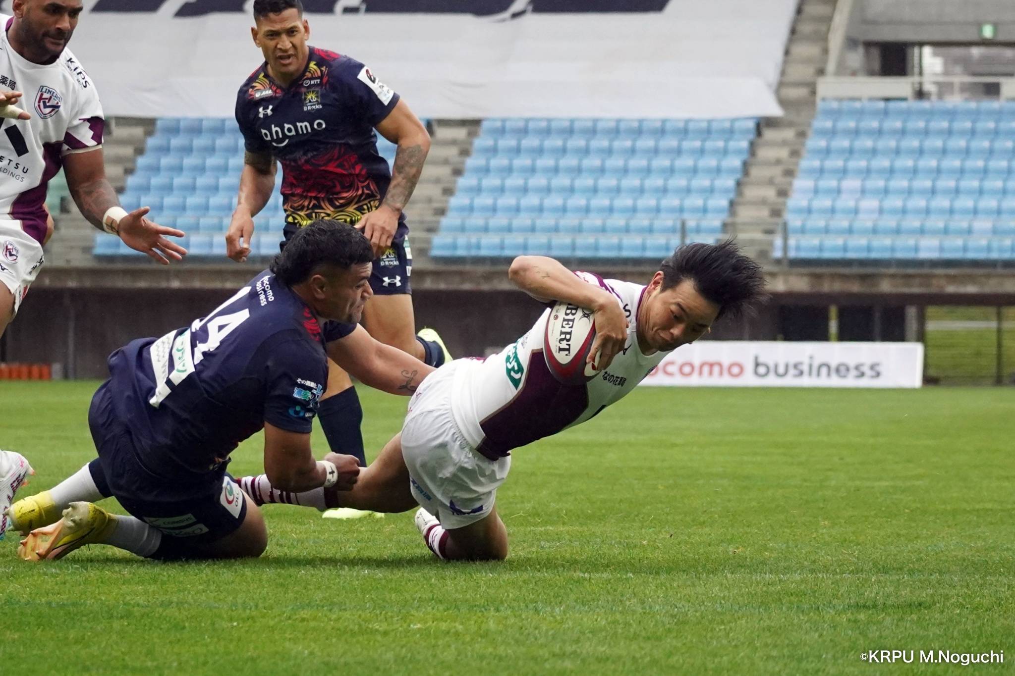 その後キックをチャージされ1トライを献上するものの、焦ることなく自分たちのプレーに集中。相手の反則を誘い、D-Rocksに3枚目のシンビンが適用されさらに優位に。