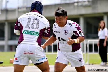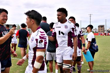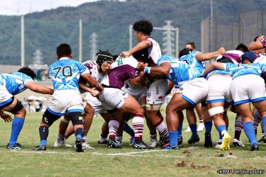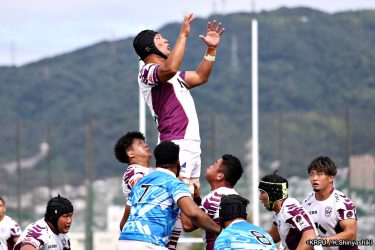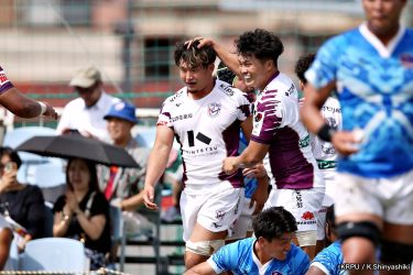 さらに勢いをつけるライナーズ。後半23分にはターンオーバーし32ジョシュアがトライ。後半36分にはラインアウトモールから19福井がトライ。