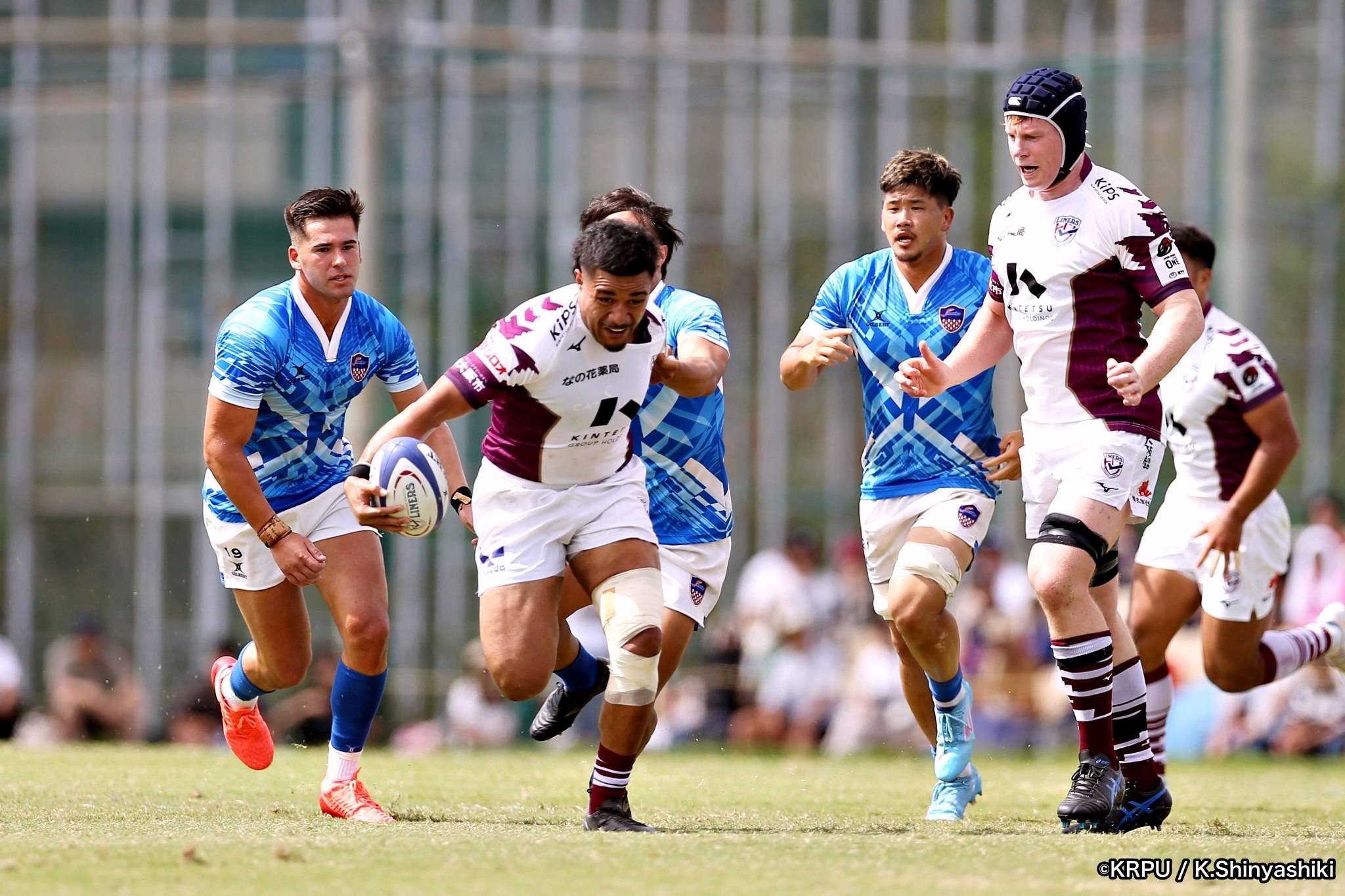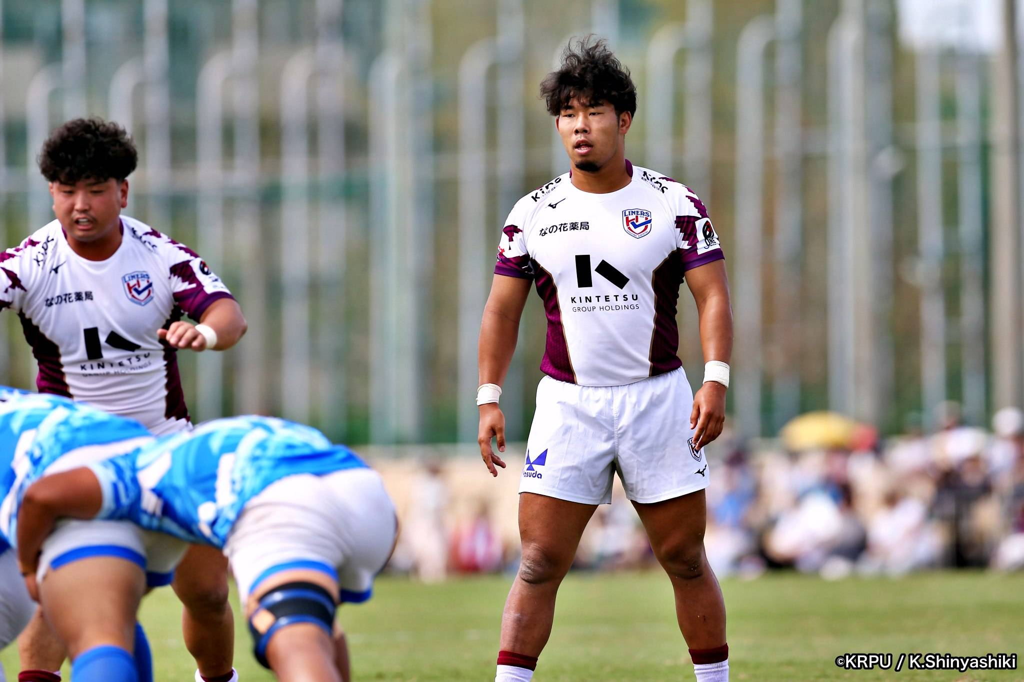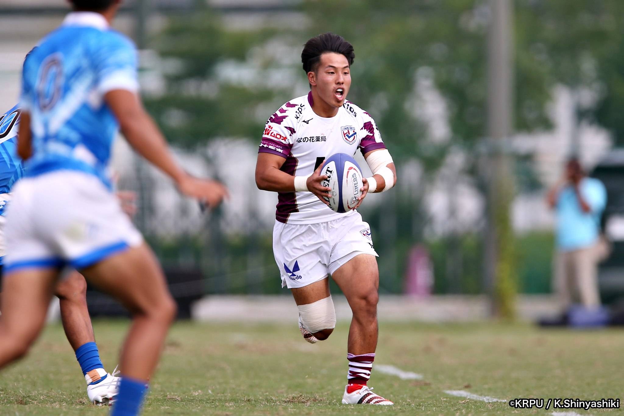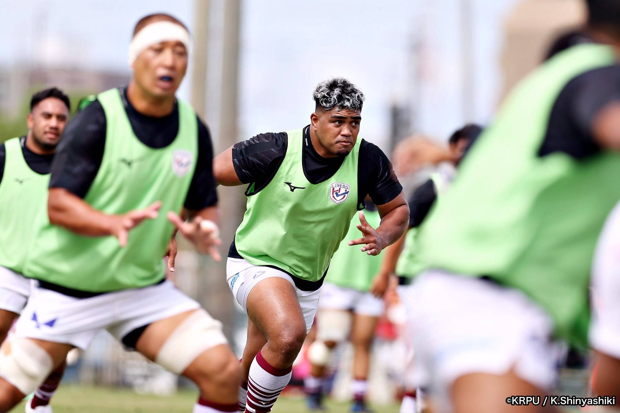 気を取り直しアタックに回るライナーズは、前半4分にカウンターから連続攻撃。22mライン付近へ迫り、ラックから出たボールを14セフォがキャッチし抜けると、左にテンポよく回し7宮下が左端にトライします。