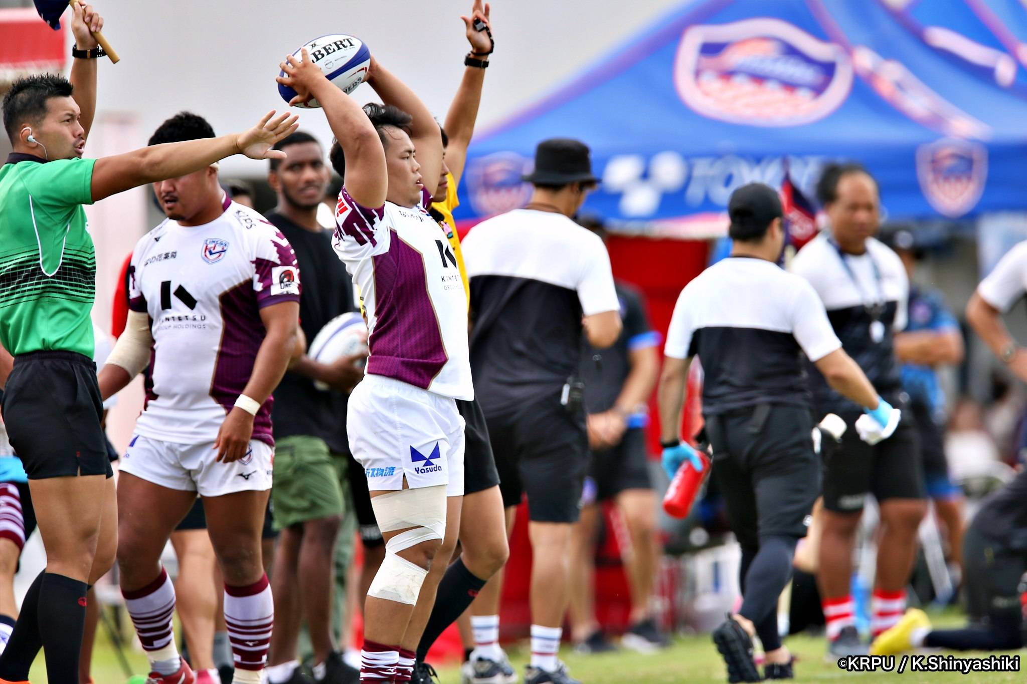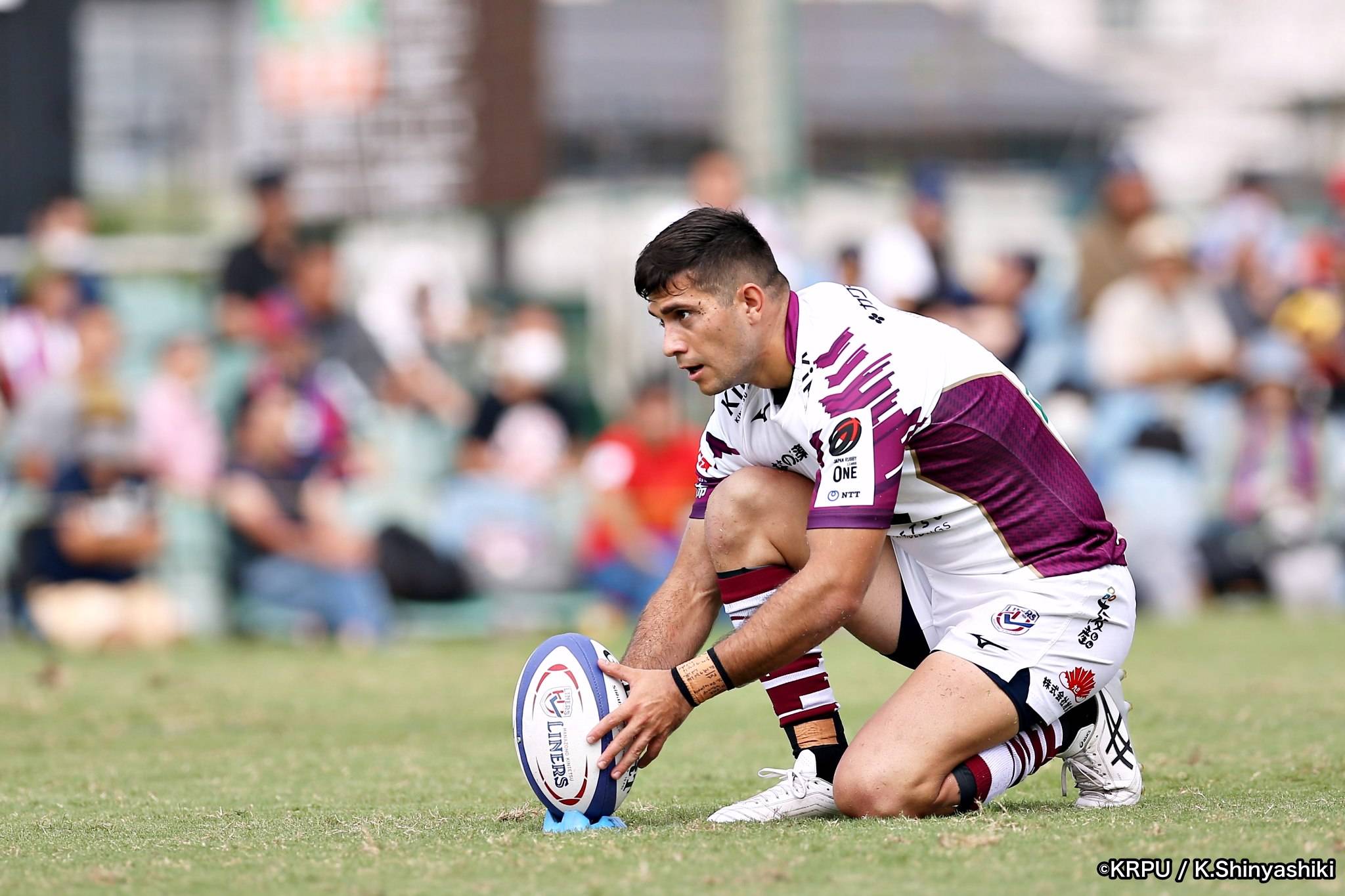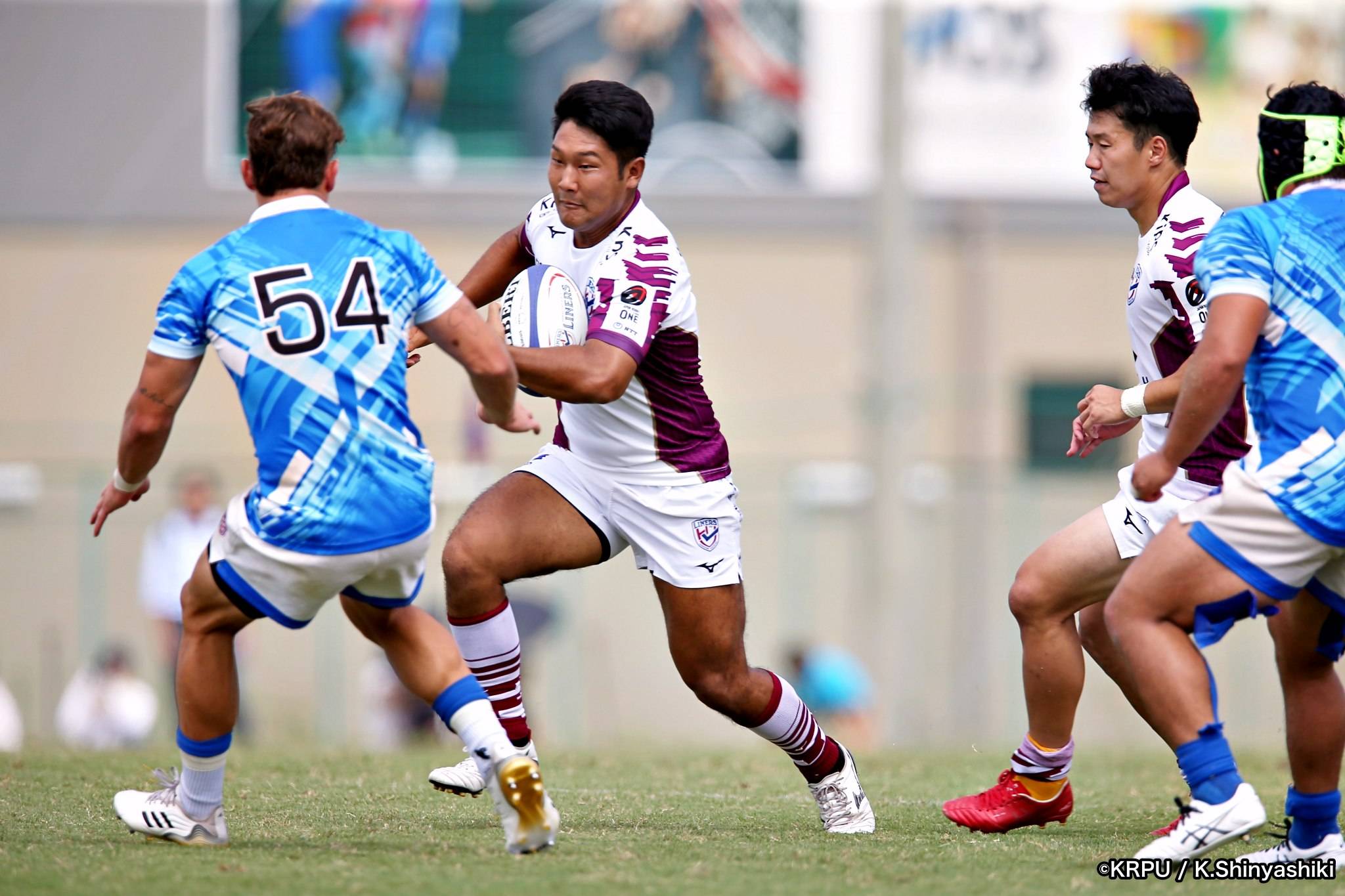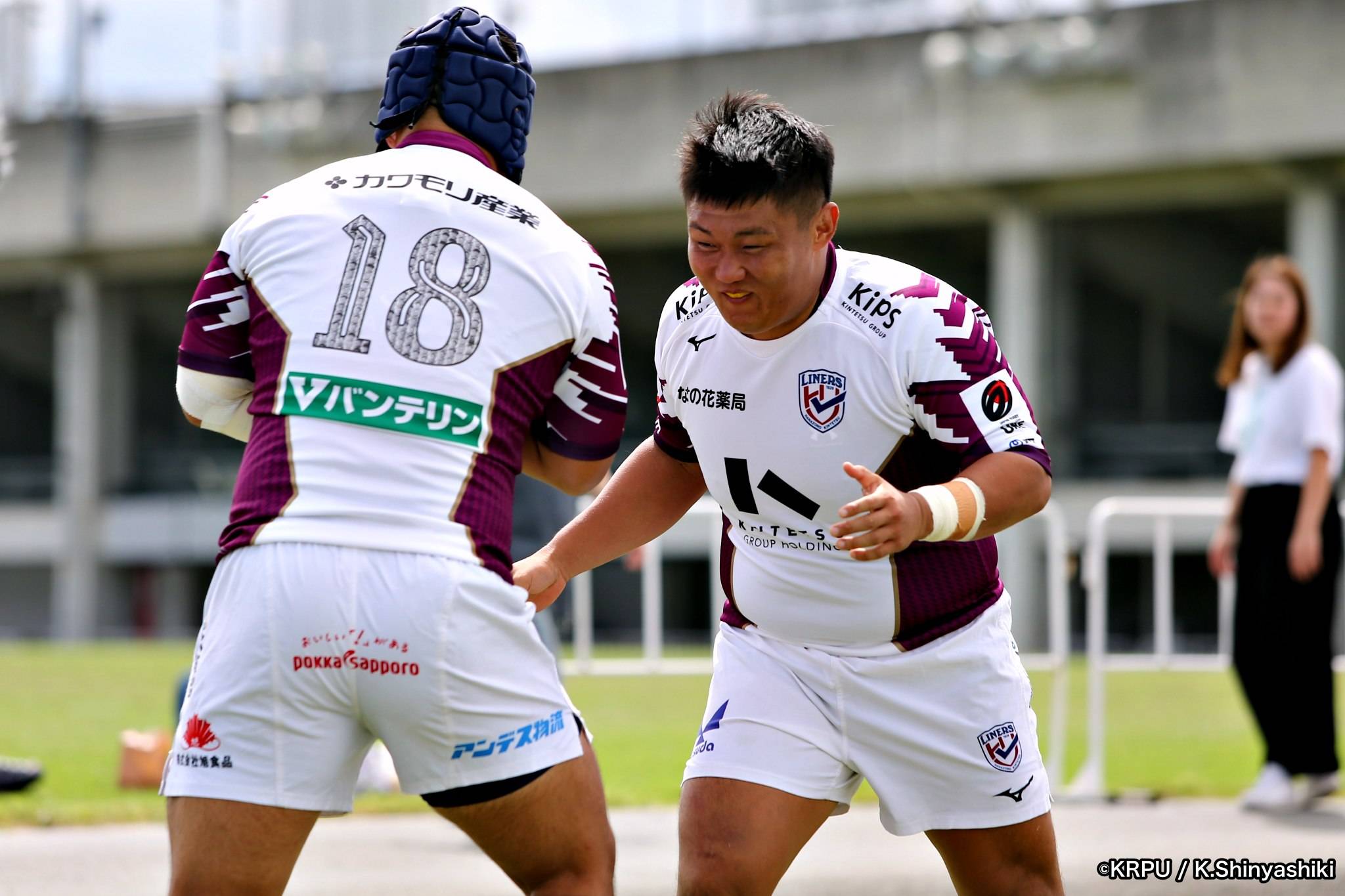気を取り直しアタックに回るライナーズは、前半4分にカウンターから連続攻撃。22mライン付近へ迫り、ラックから出たボールを14セフォがキャッチし抜けると、左にテンポよく回し7宮下が左端にトライします。
