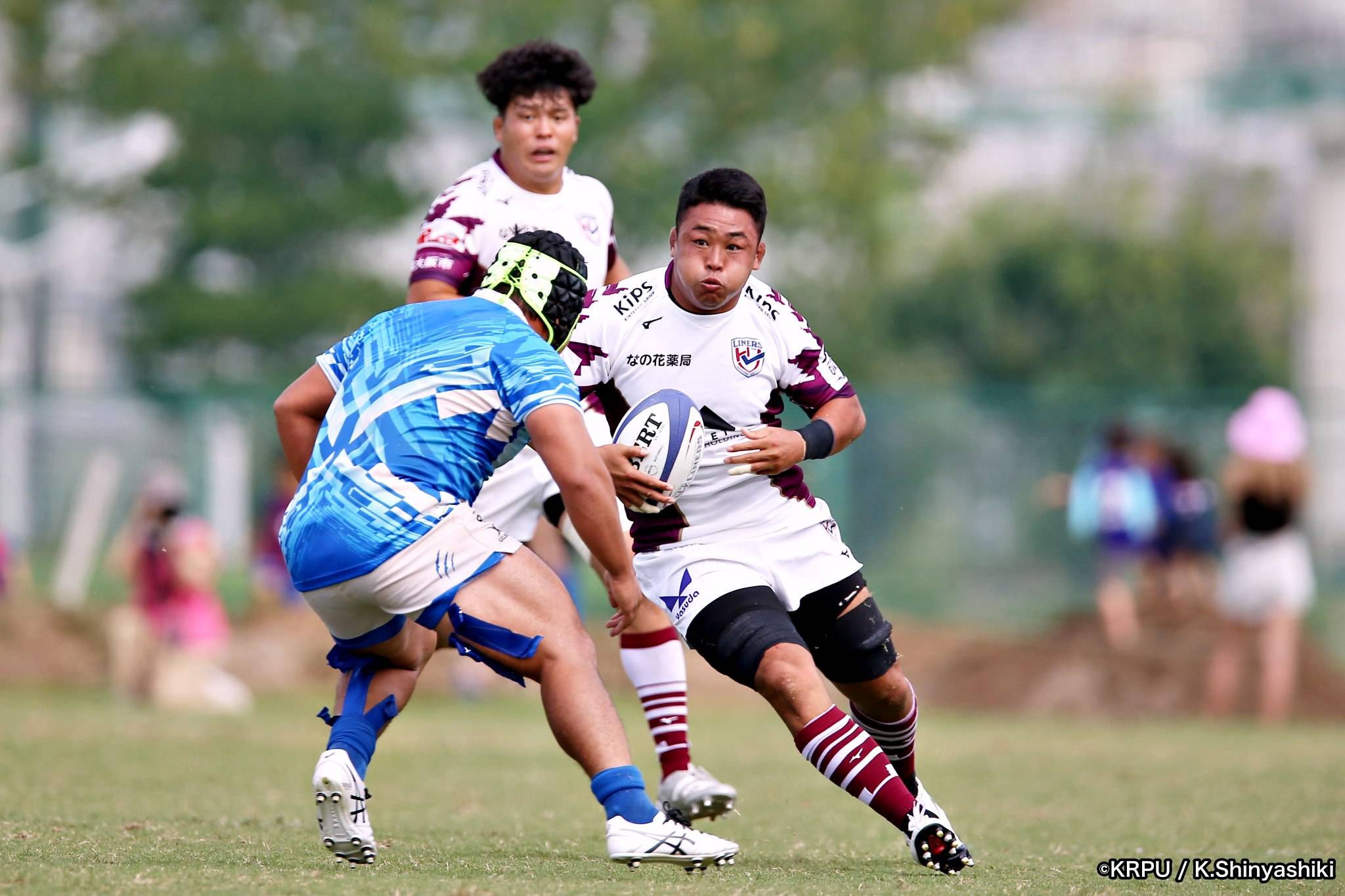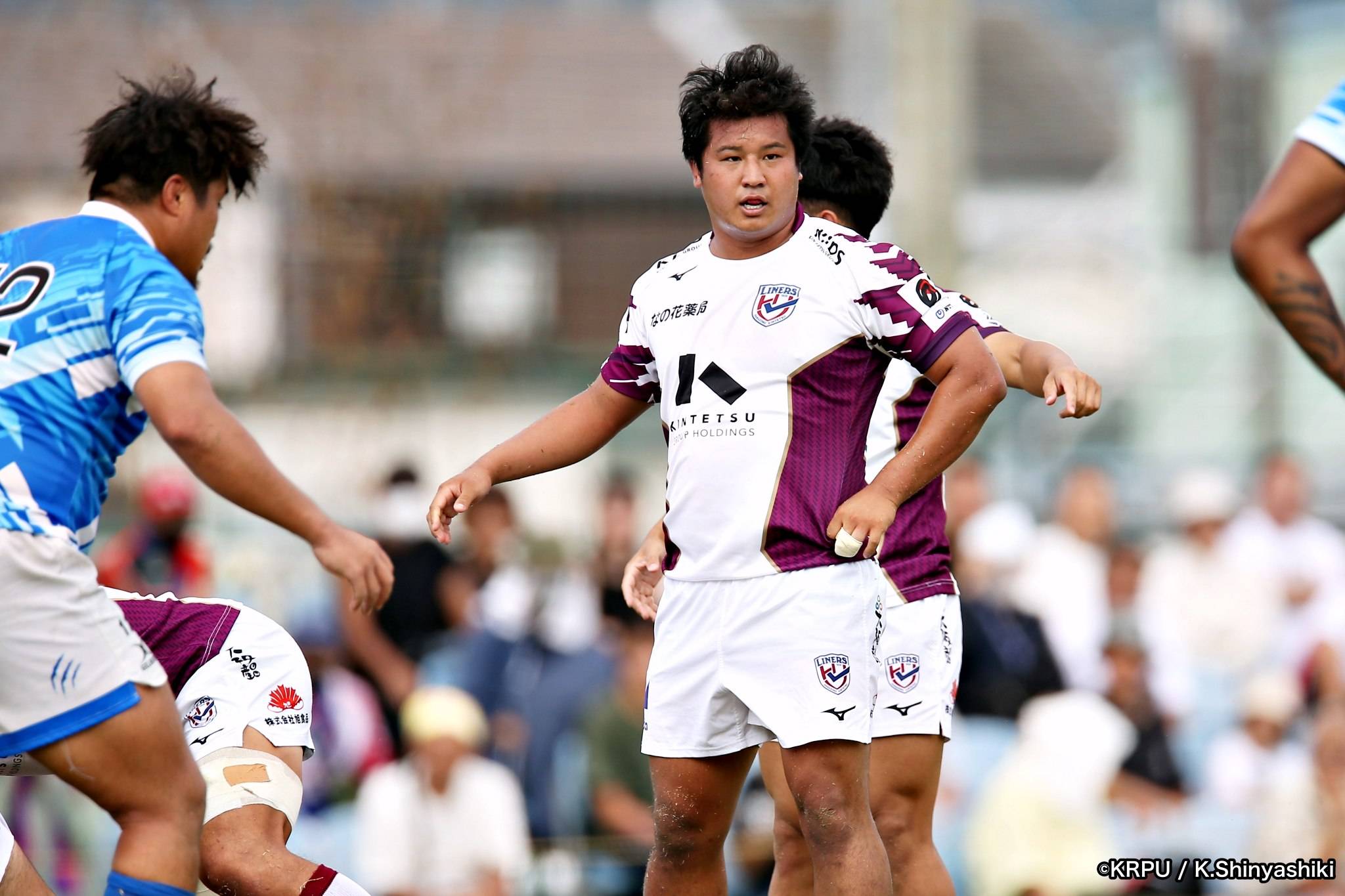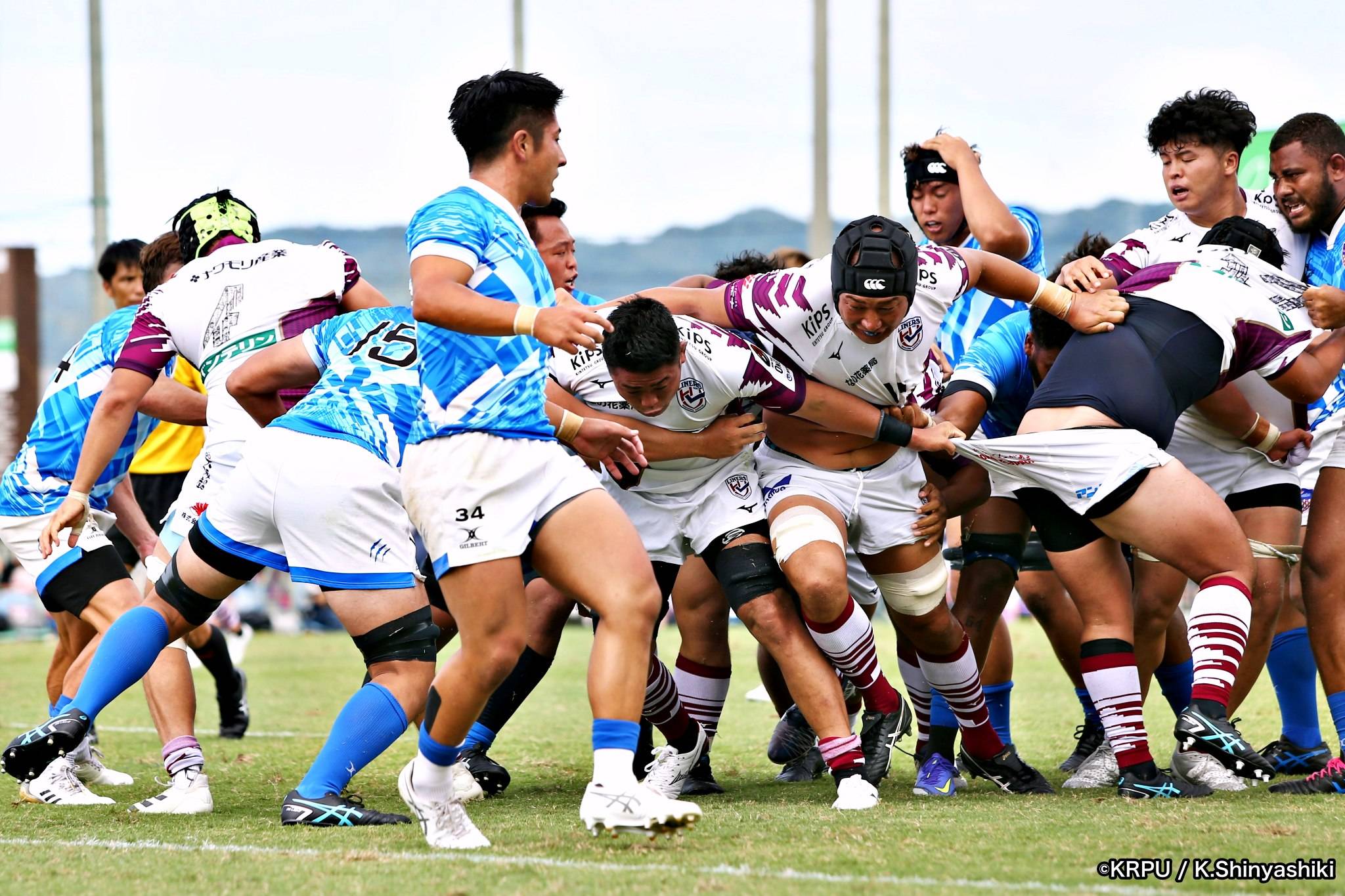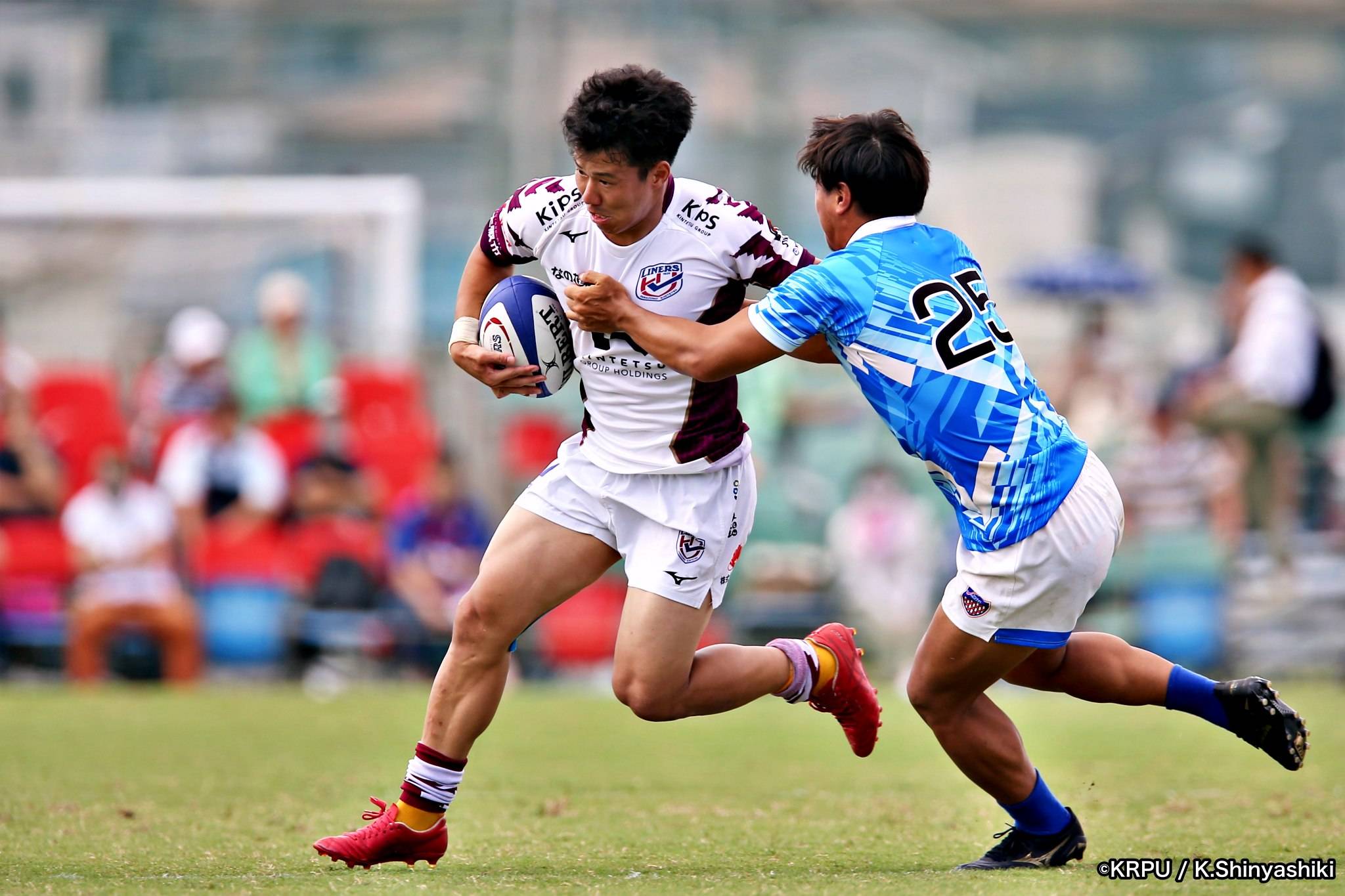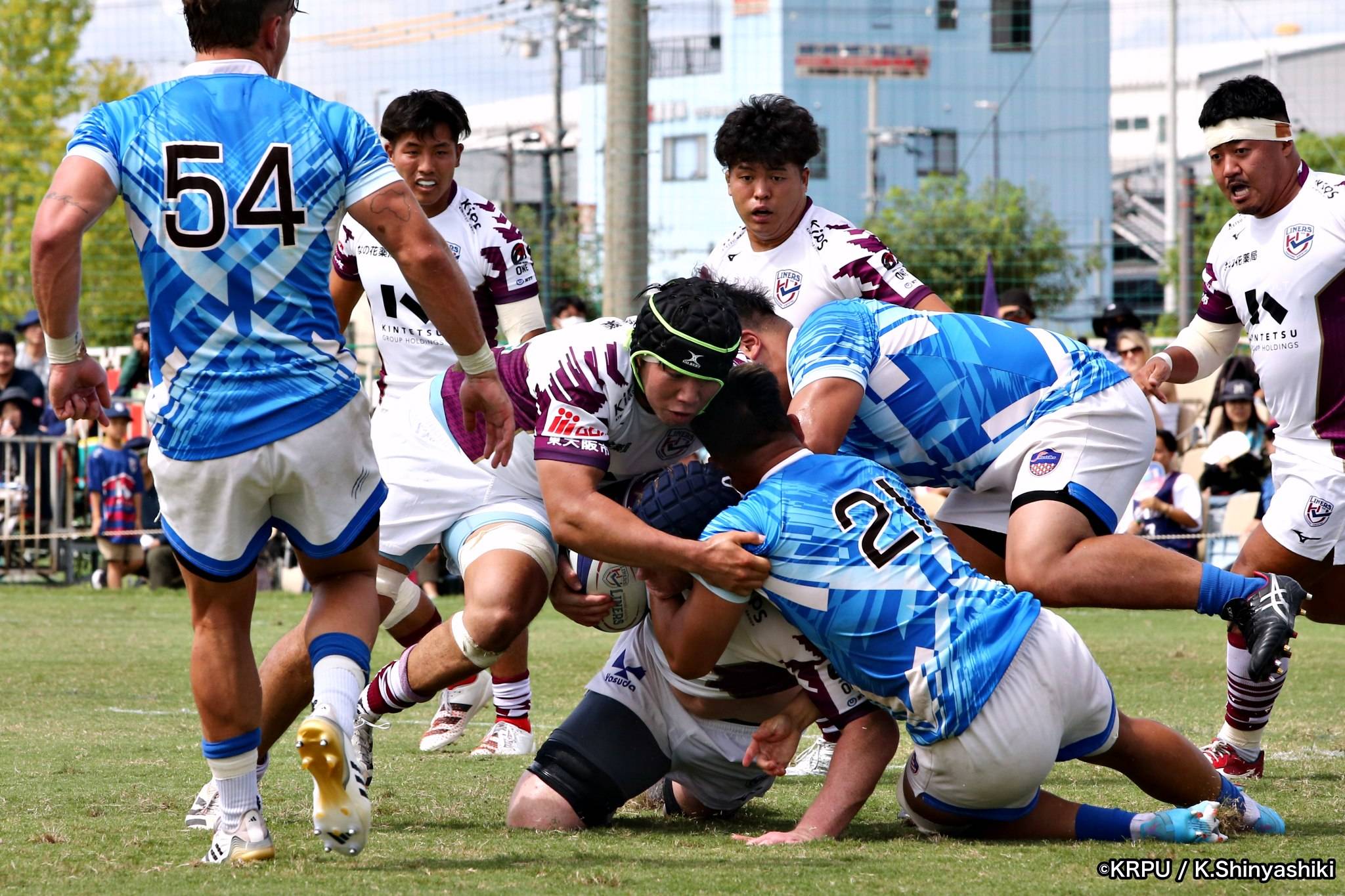 さらに勢いをつけるライナーズ。後半23分にはターンオーバーし32ジョシュアがトライ。後半36分にはラインアウトモールから19福井がトライ。