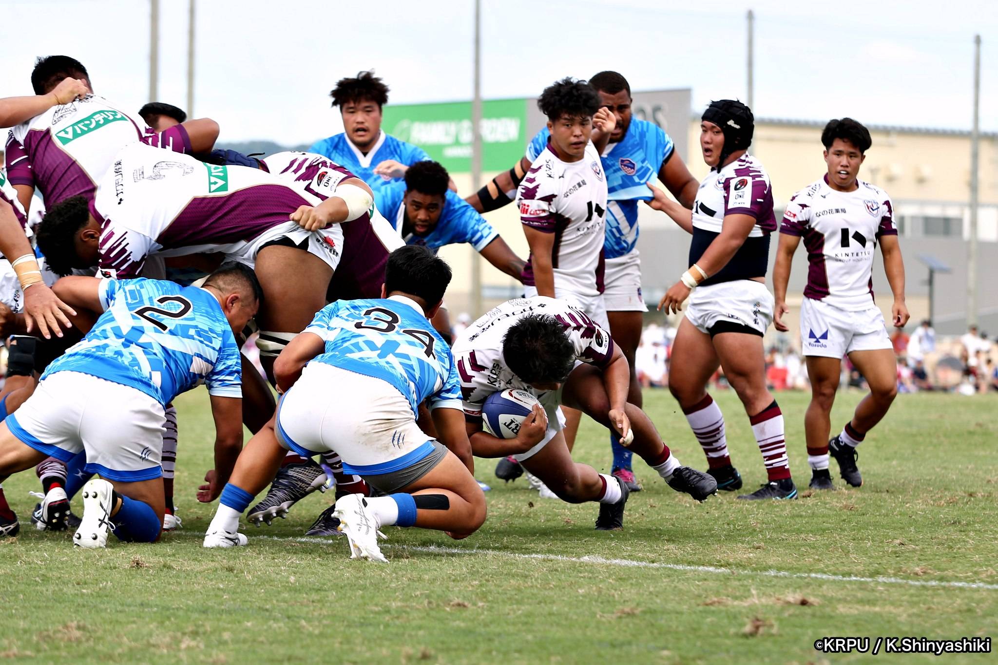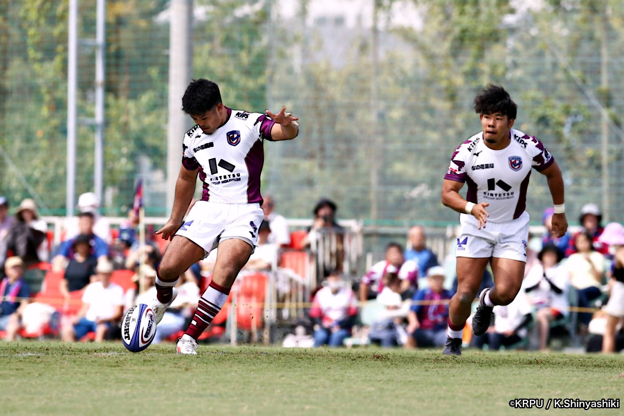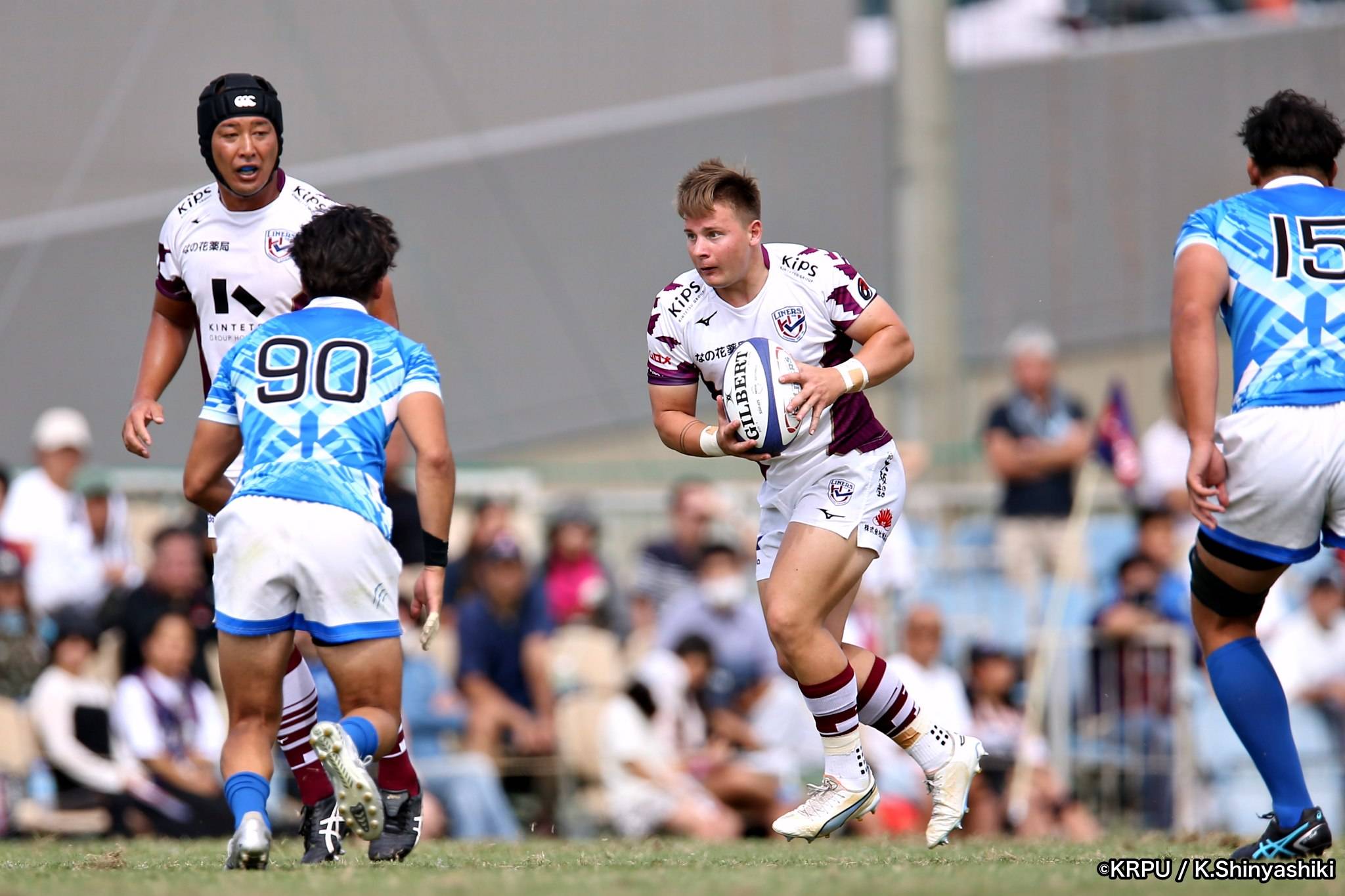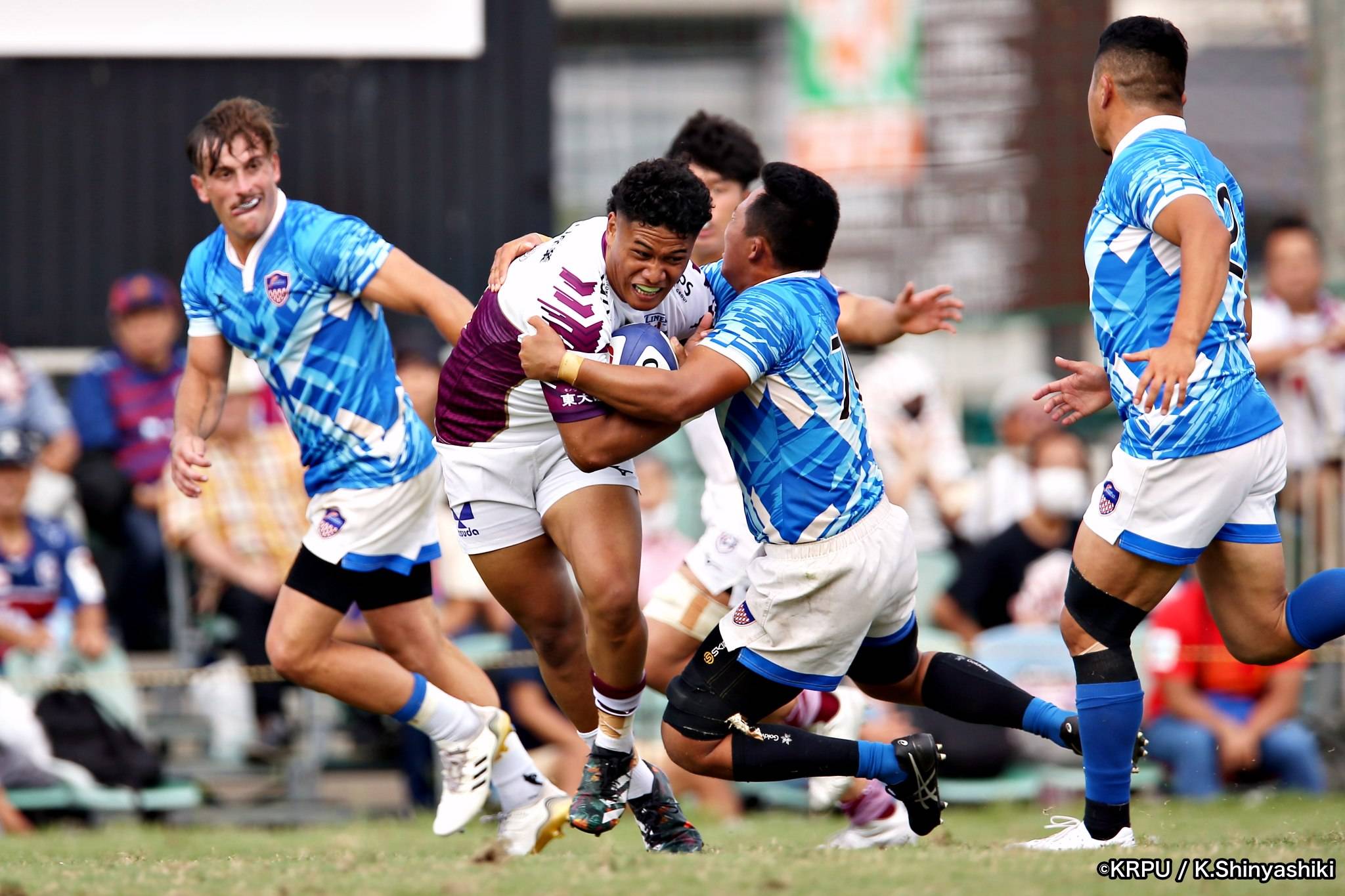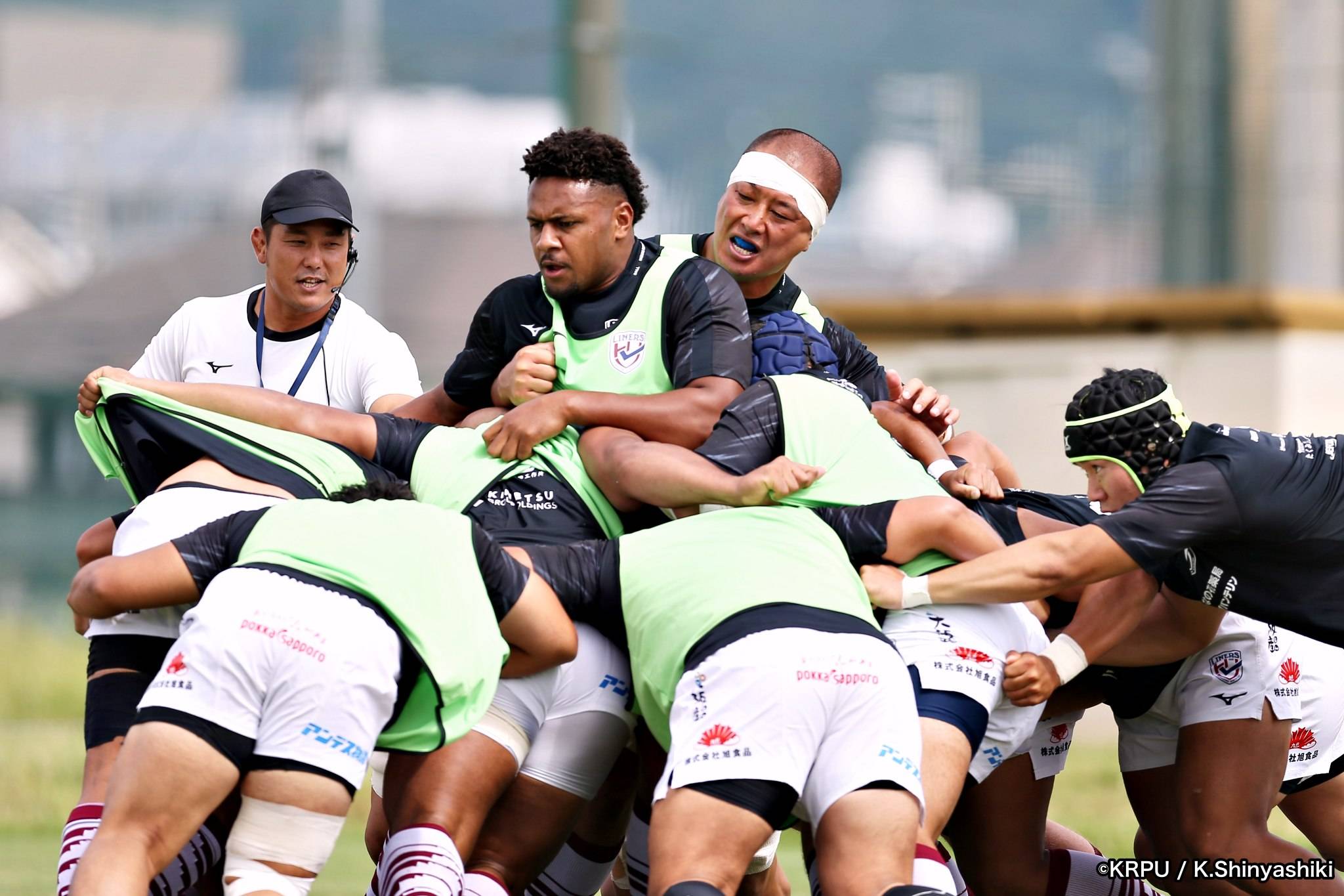 さらに勢いをつけるライナーズ。後半23分にはターンオーバーし32ジョシュアがトライ。後半36分にはラインアウトモールから19福井がトライ。