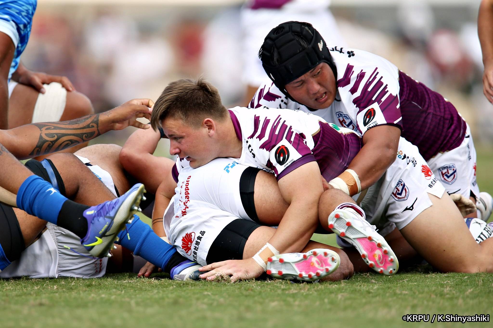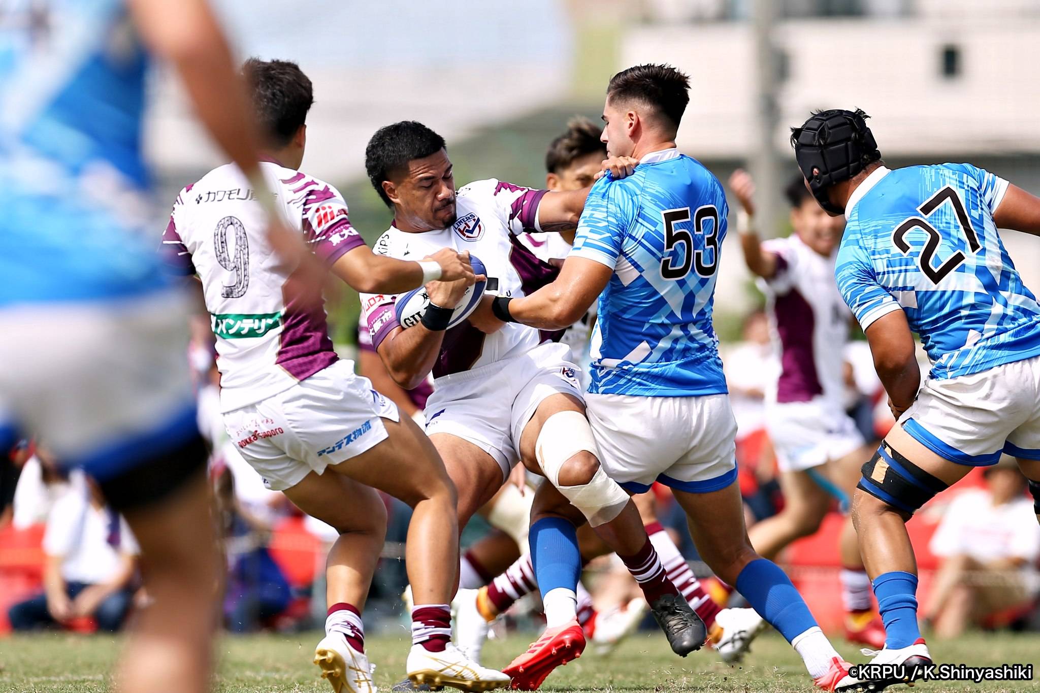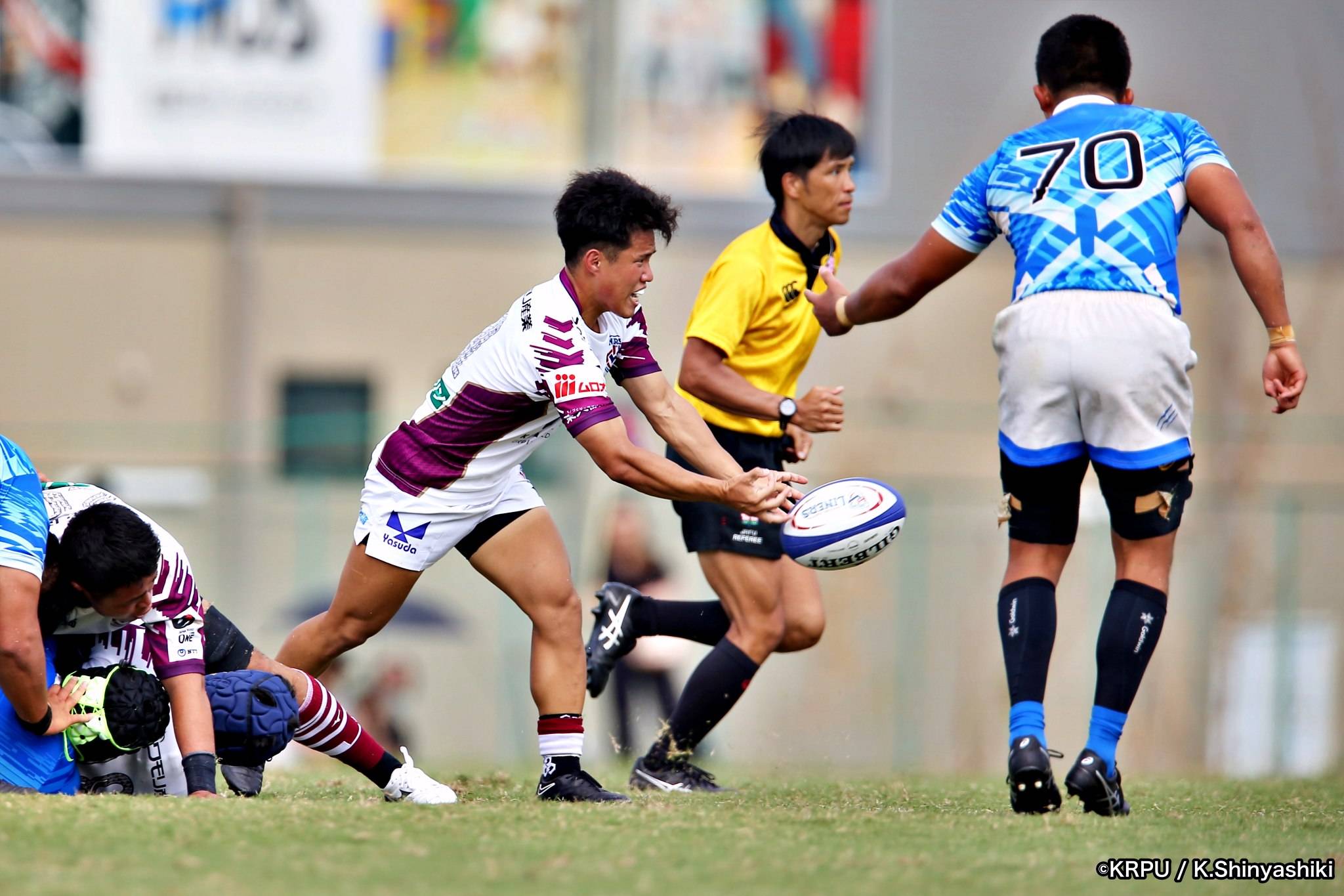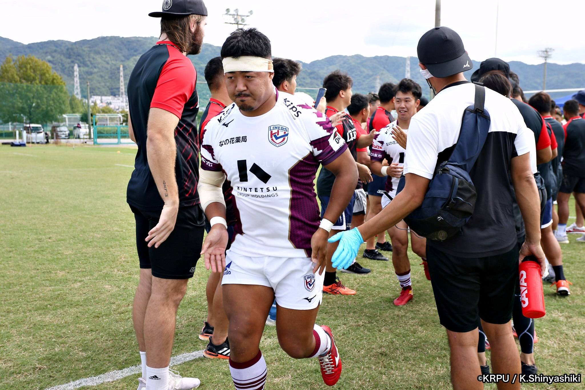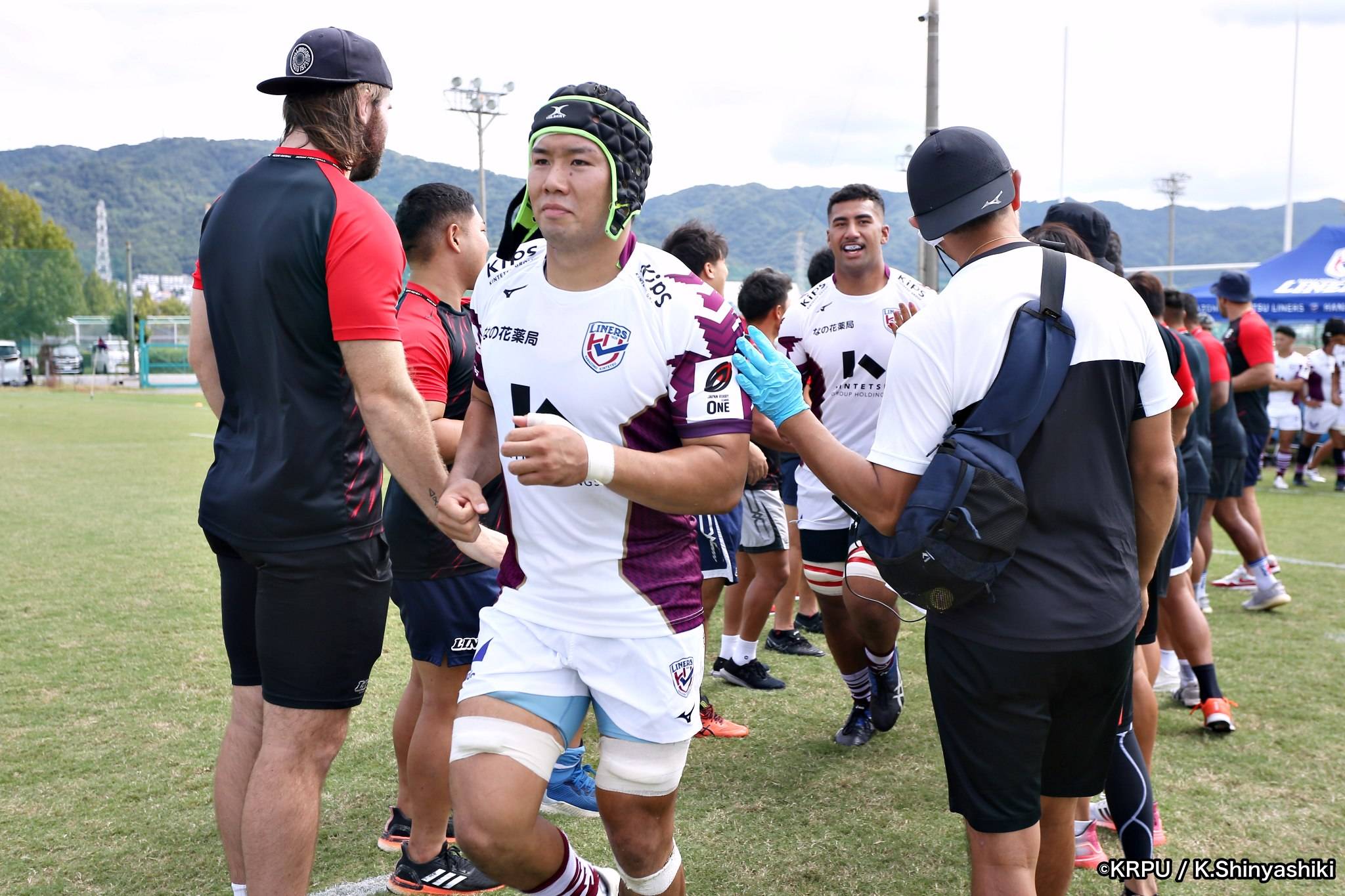 さらに勢いをつけるライナーズ。後半23分にはターンオーバーし32ジョシュアがトライ。後半36分にはラインアウトモールから19福井がトライ。