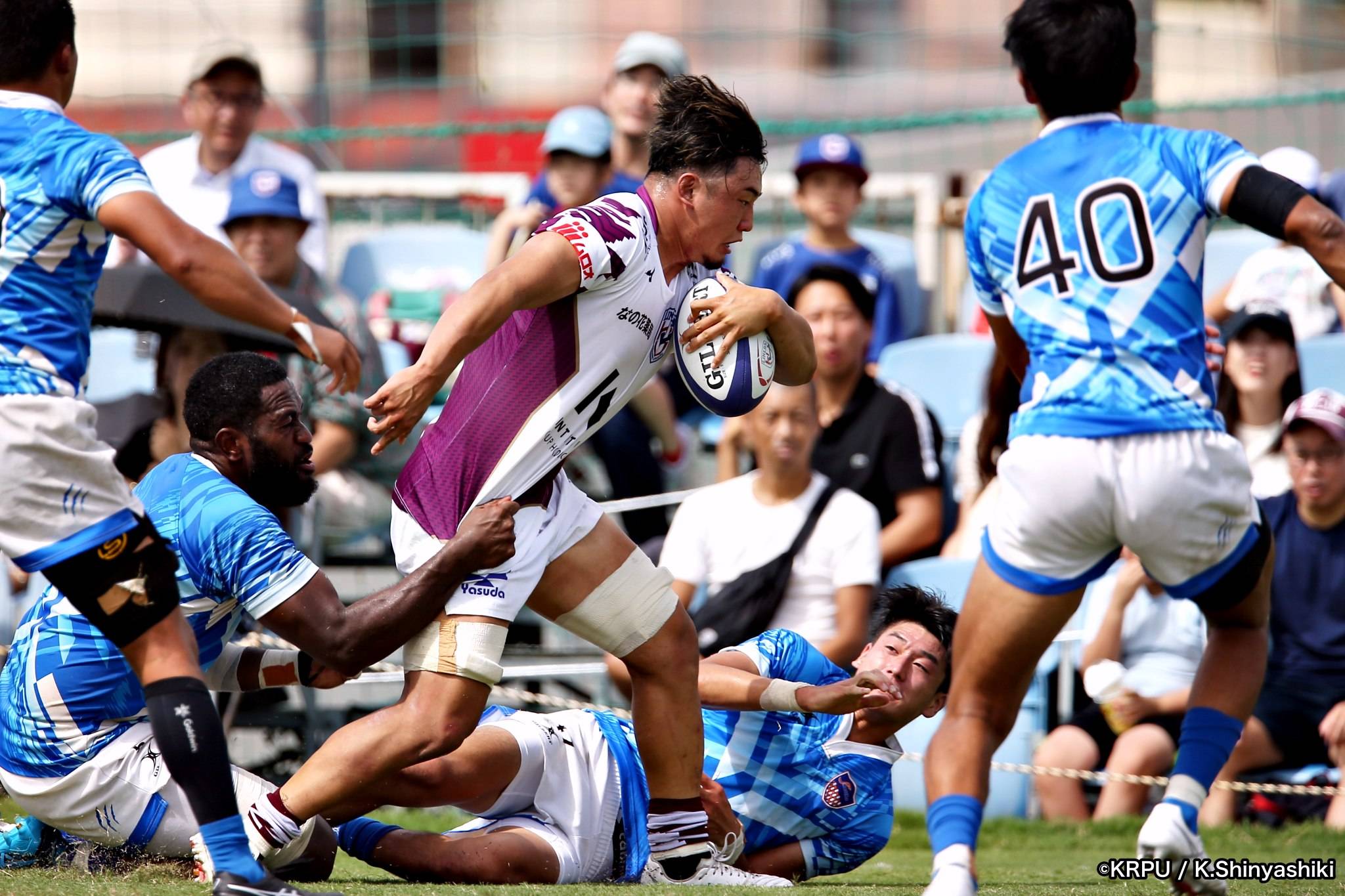後半が始まると、直後シャトルズがあっという間にボールを回し先制トライを決めます。