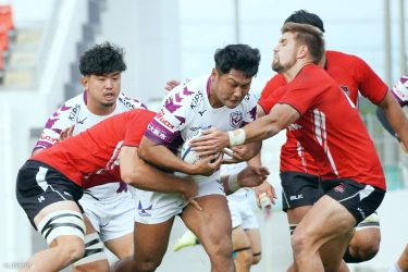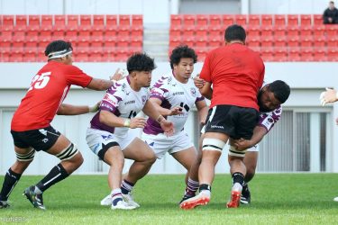 また相手のスピーディーなアタックにディフェンスラインが崩れ、18分、23分にもトライを献上。14-21と逆転されます。