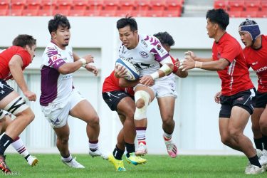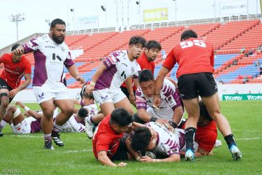 スクラムをうまく組めずなかなか前へ出られないライナーズでしたが、アグレッシブにボールを動かすアタックで相手を翻弄すると、ようやくチャンスが巡ってきます。