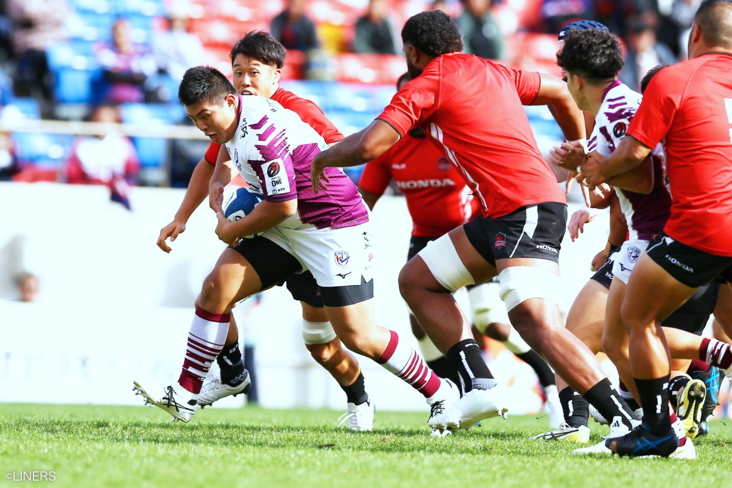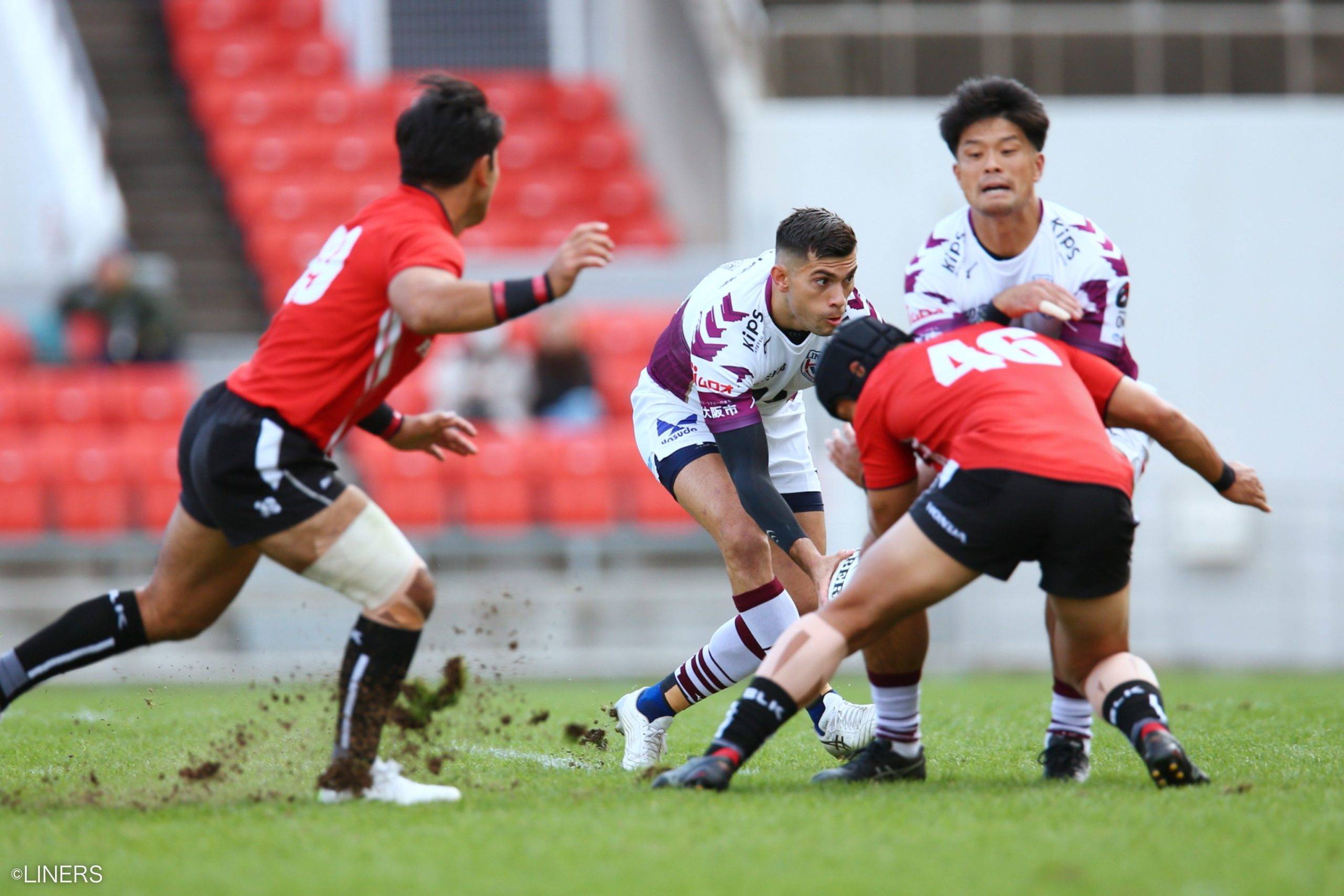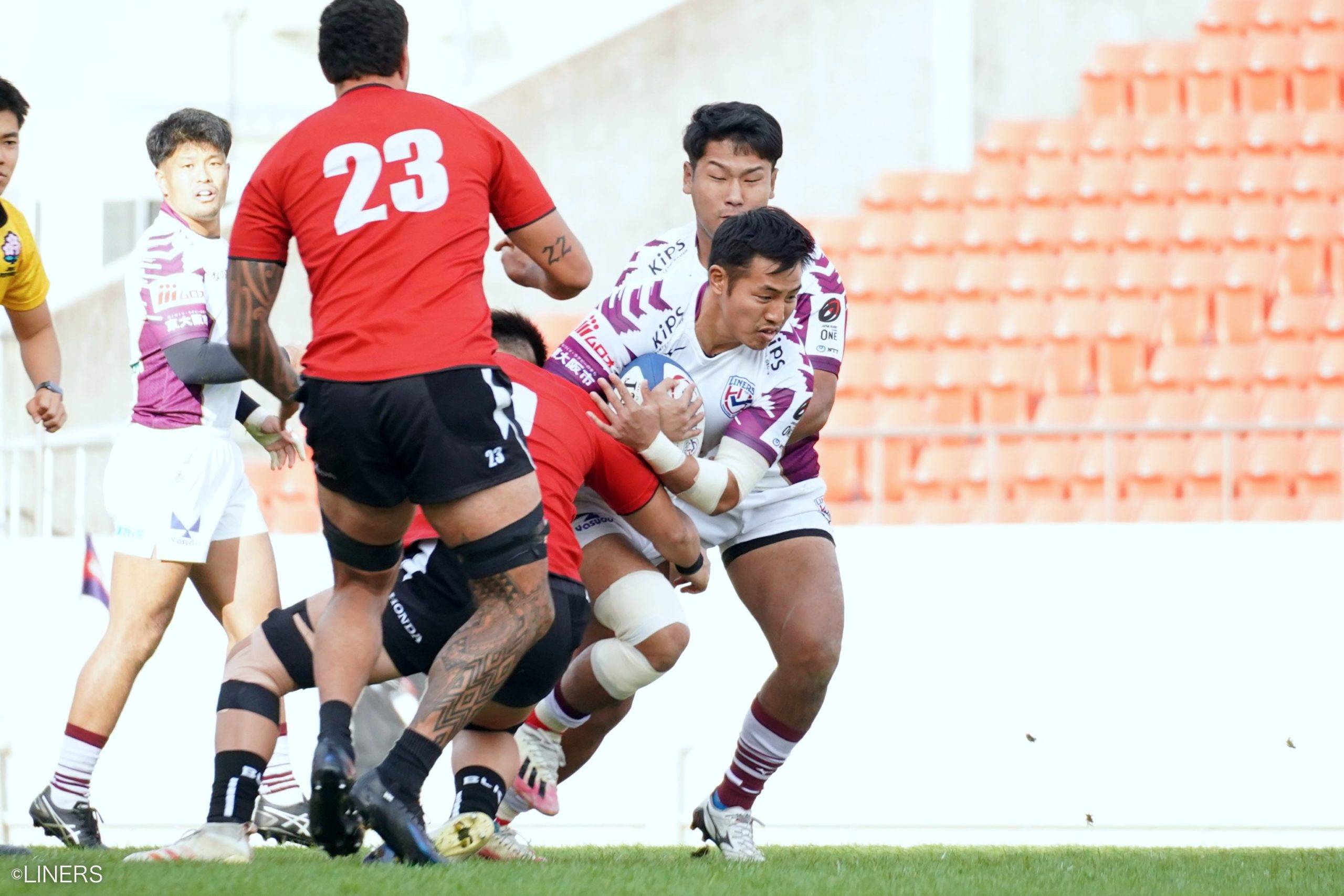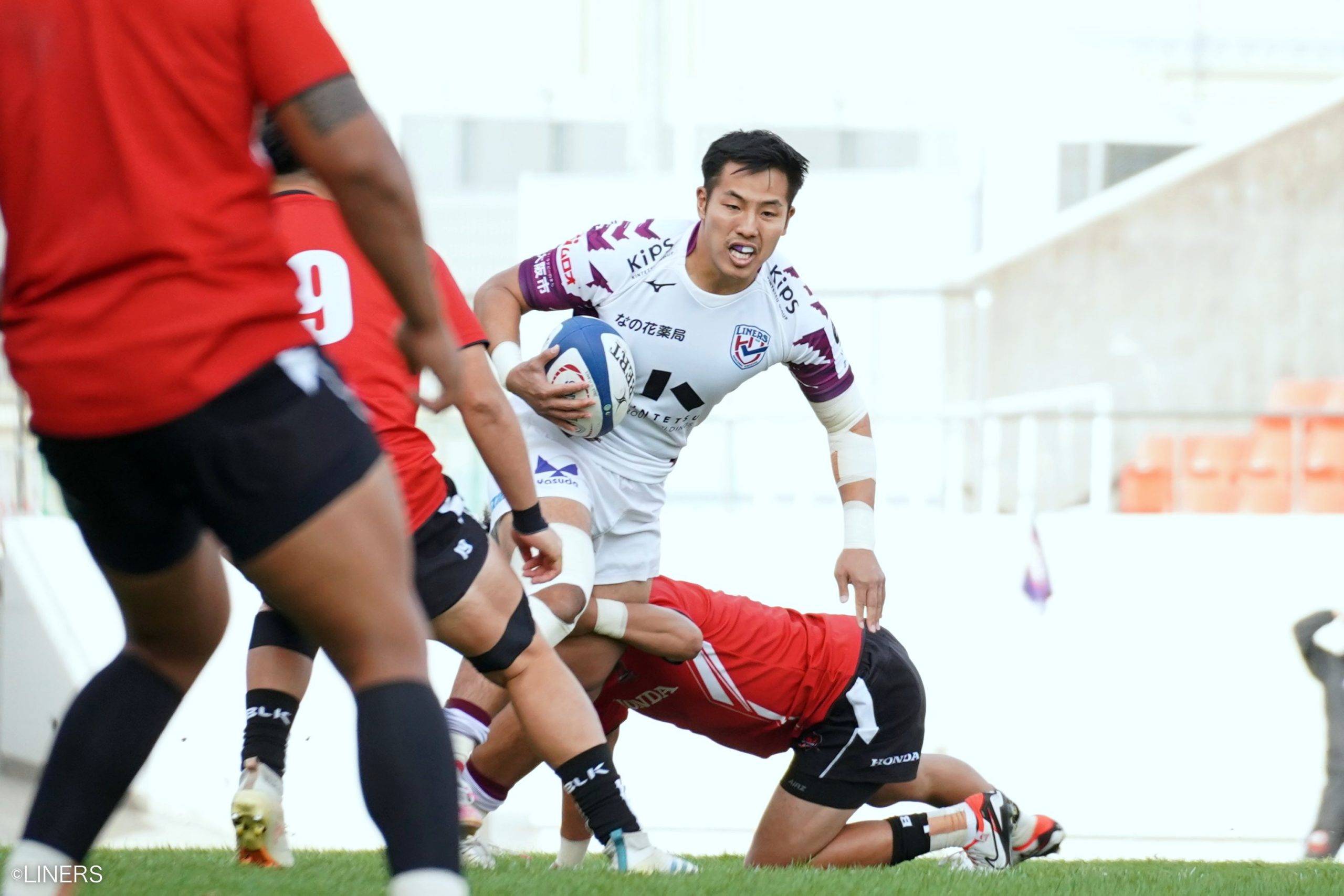 スクラムをうまく組めずなかなか前へ出られないライナーズでしたが、アグレッシブにボールを動かすアタックで相手を翻弄すると、ようやくチャンスが巡ってきます。