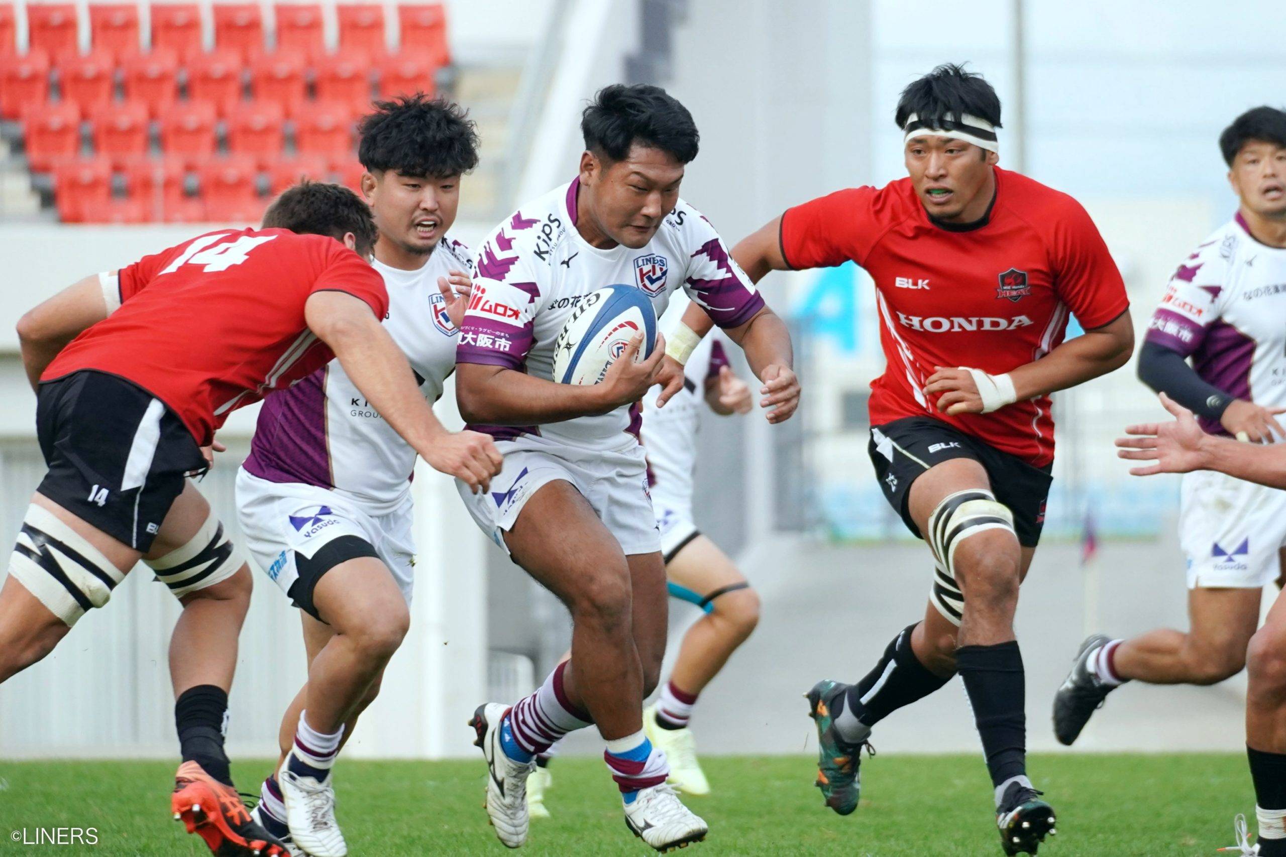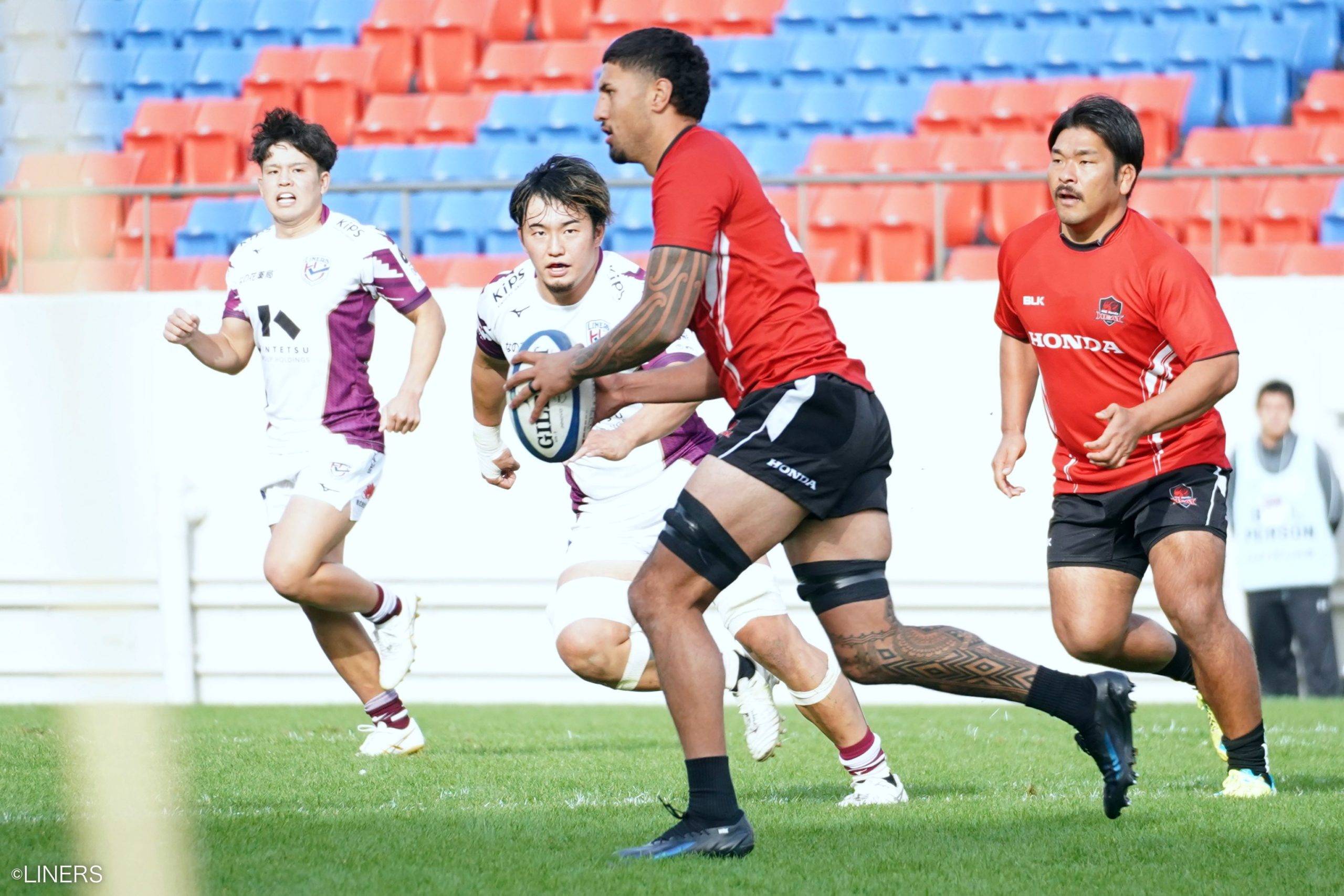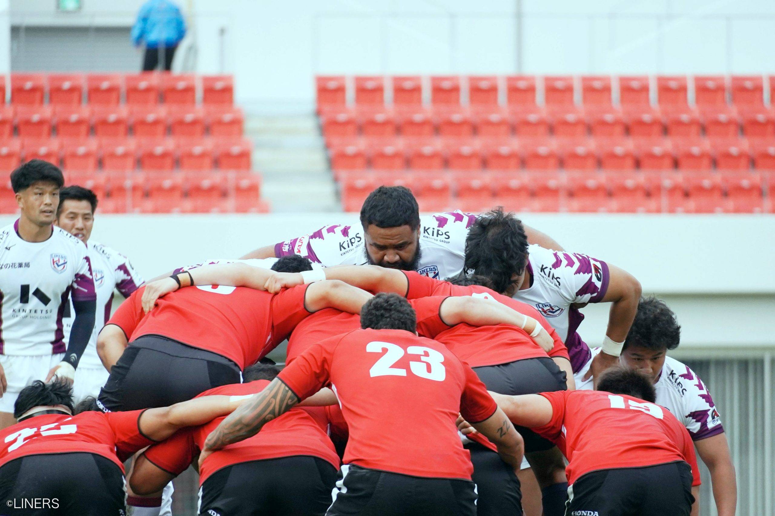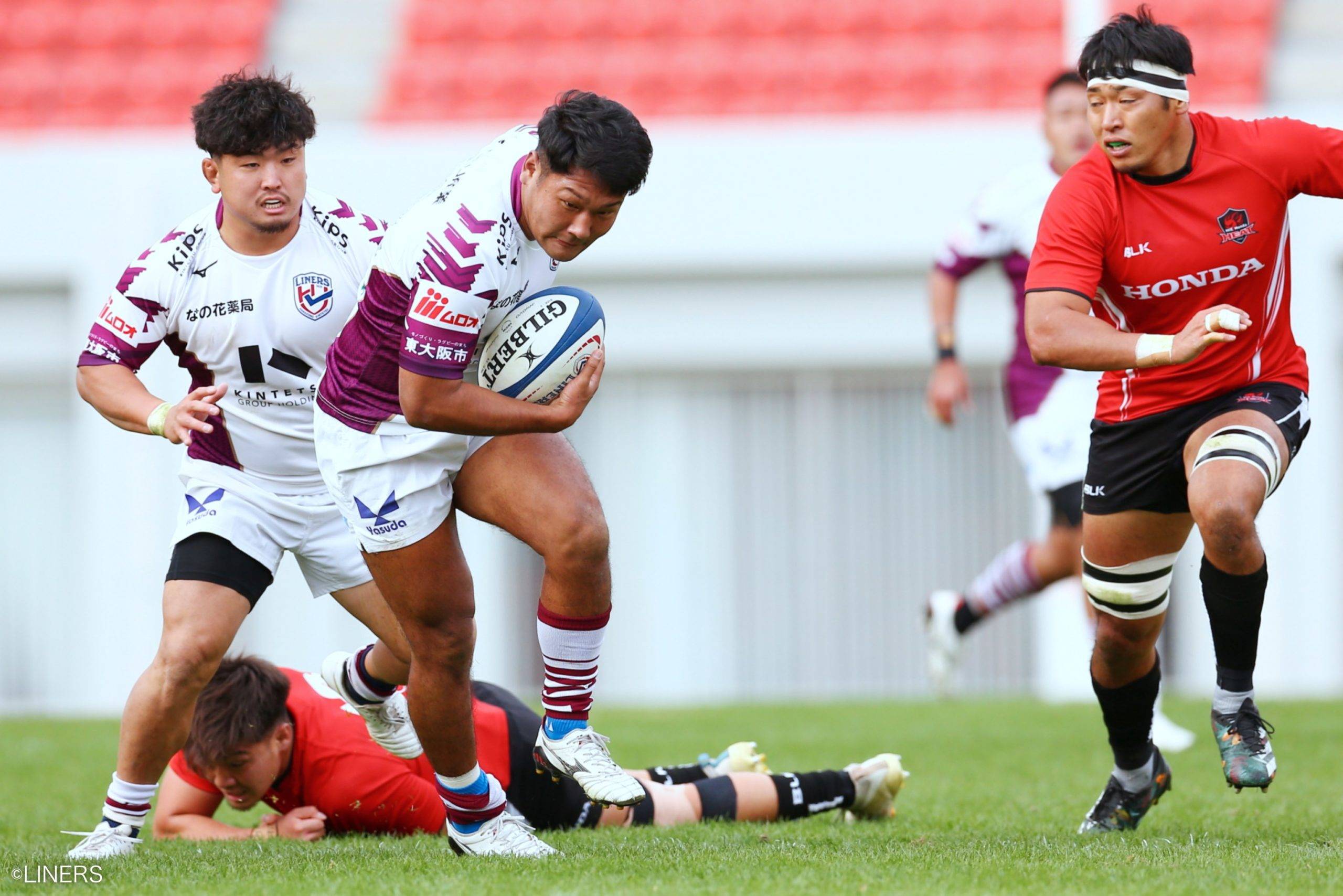スクラムをうまく組めずなかなか前へ出られないライナーズでしたが、アグレッシブにボールを動かすアタックで相手を翻弄すると、ようやくチャンスが巡ってきます。